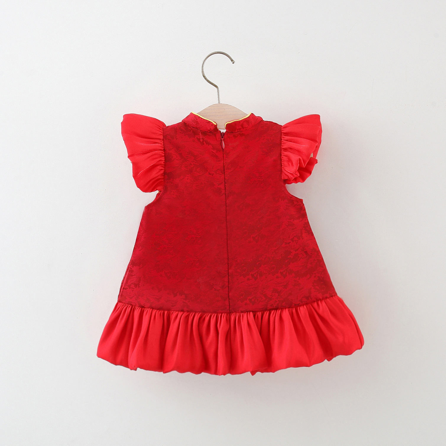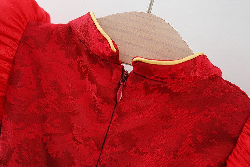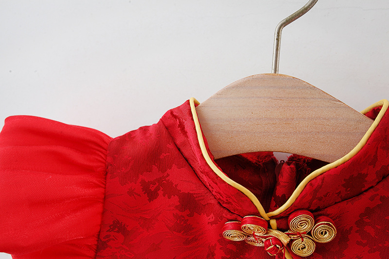 2024 여름 새로운 중국 스탠드 칼라 국가 스타일 cheongsam 소녀 짧은 소매 붉은 국가 스타일 작은 치마 원피스스토어 가기