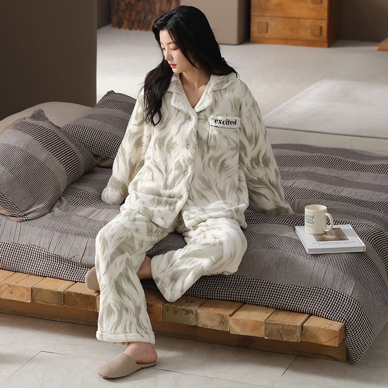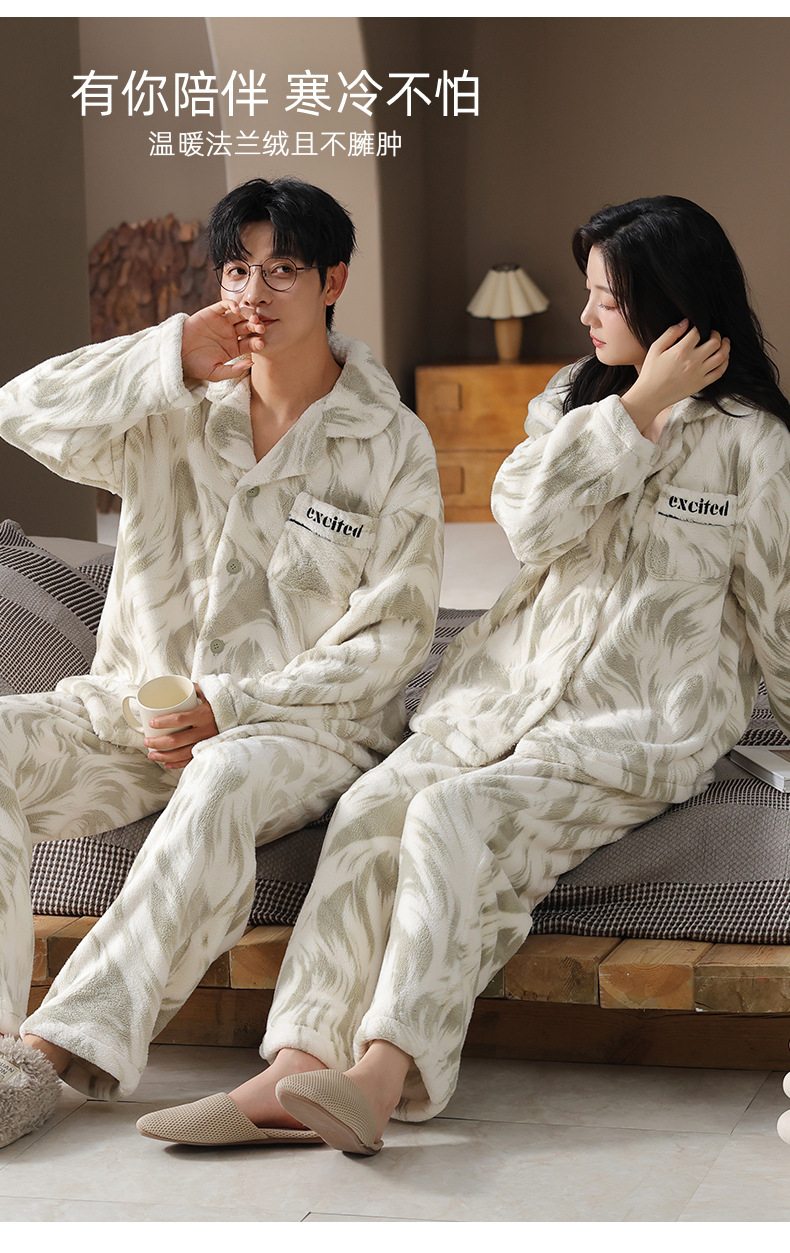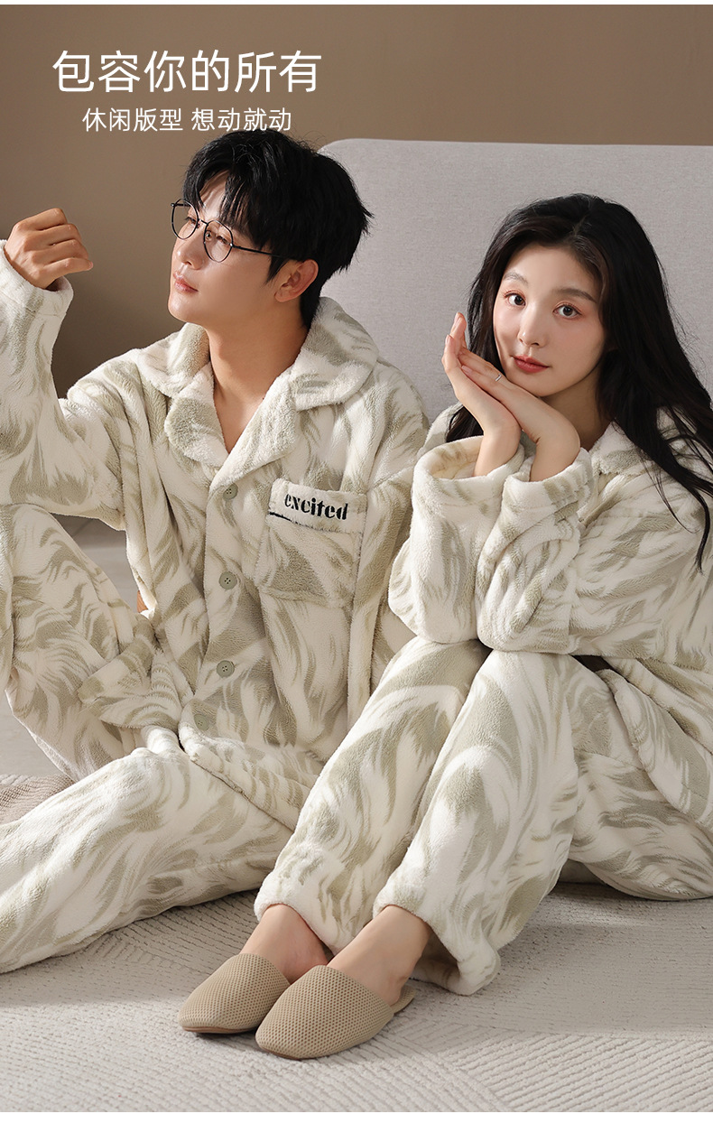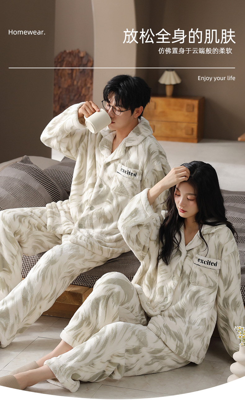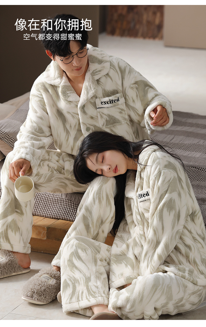 겨울 커플 잠옷 여성의 겨울 산호 벨벳 따뜻한 두꺼운 여성 플란넬 남성 긴 소매 홈 의류 여성 세트