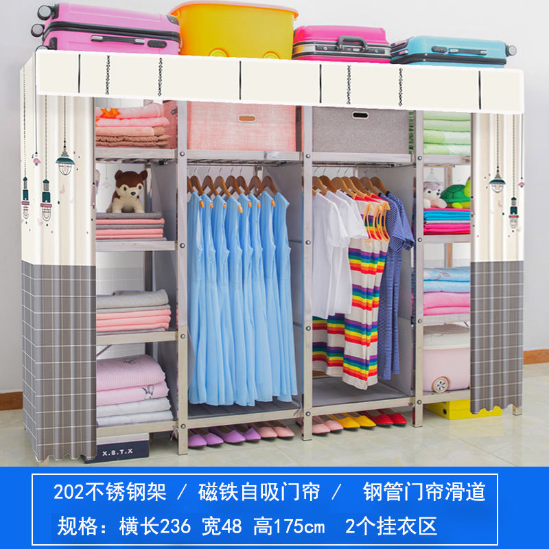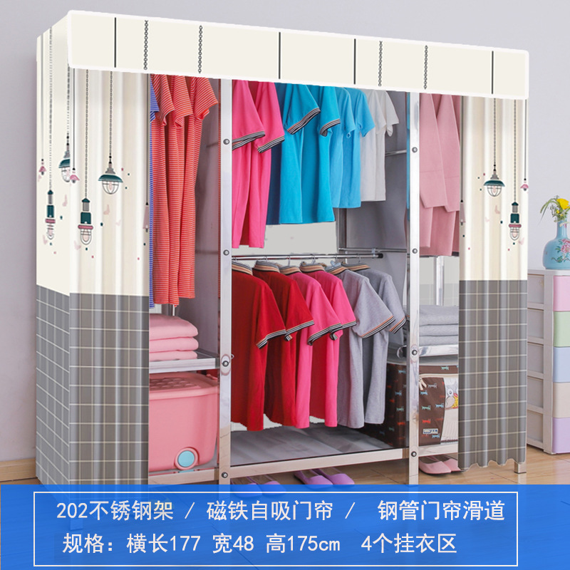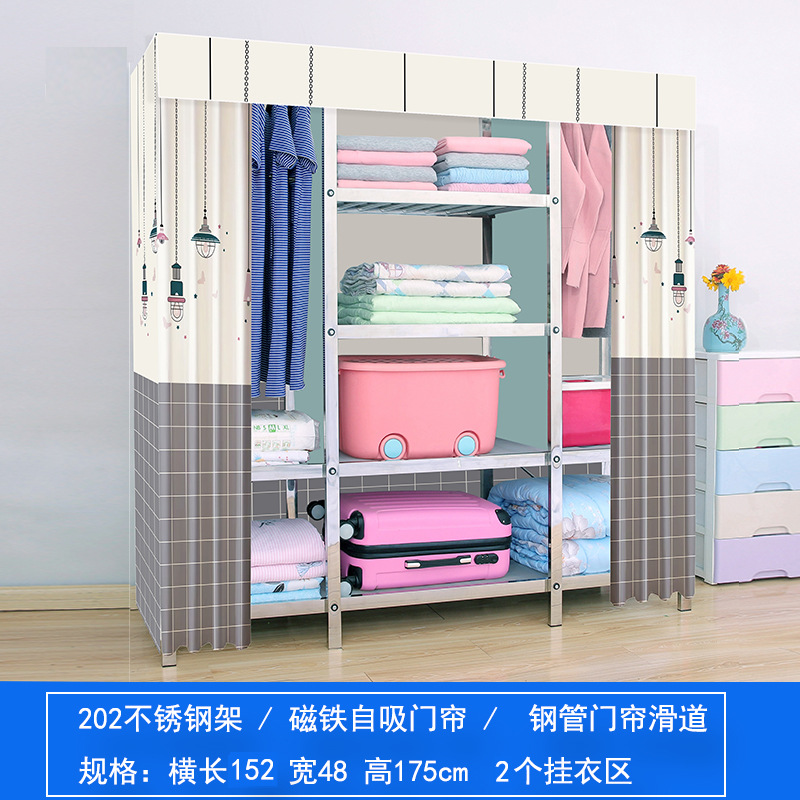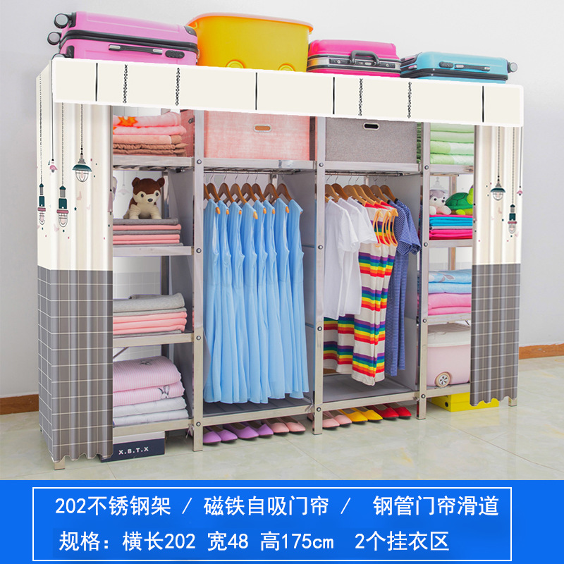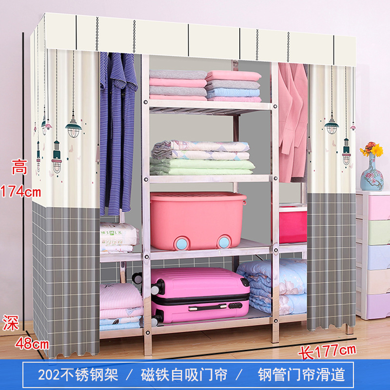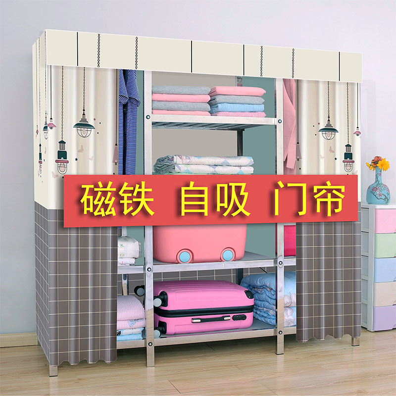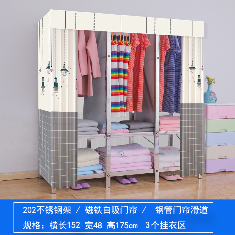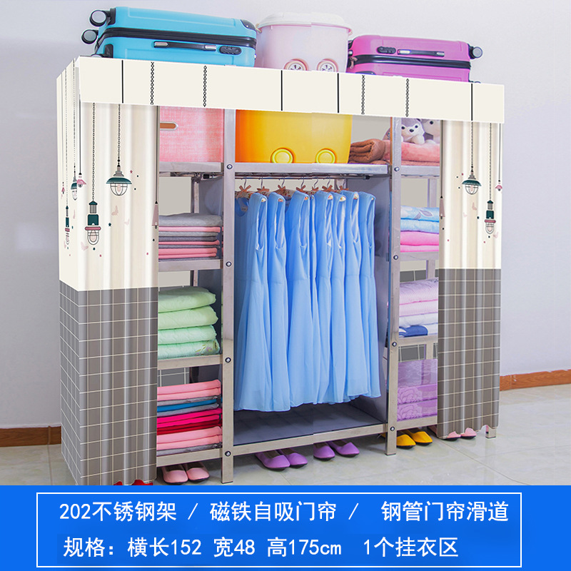 스테인리스 저장 랙 철 흡입 돌 문 커튼 간단한 천 옷장 임대 방 침실 강화 강관 조립 접이식스토어 가기