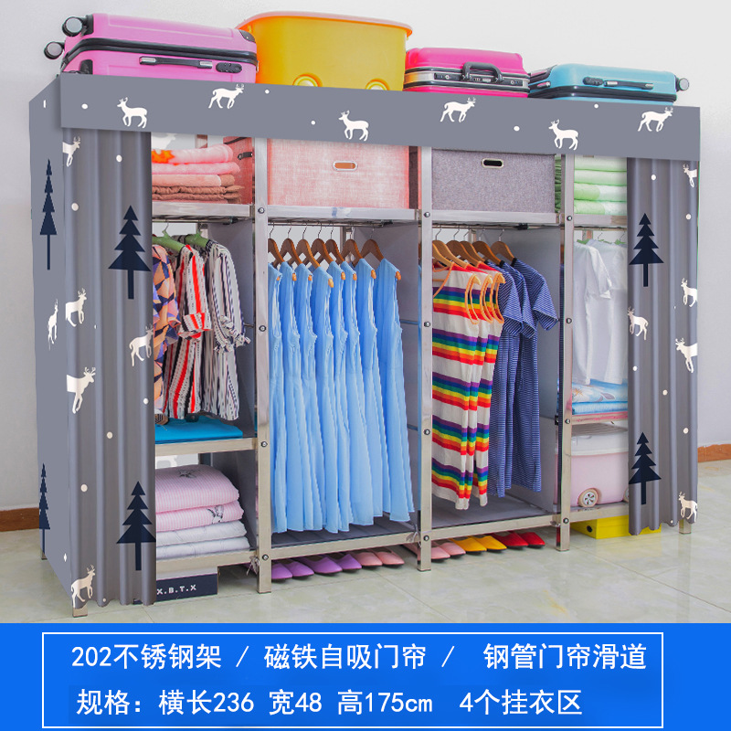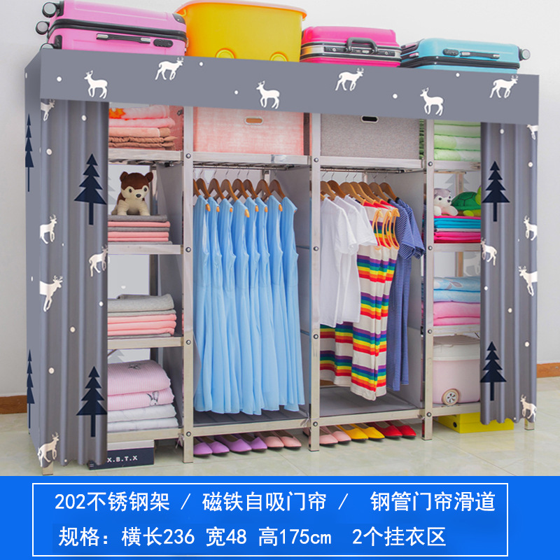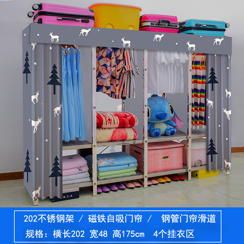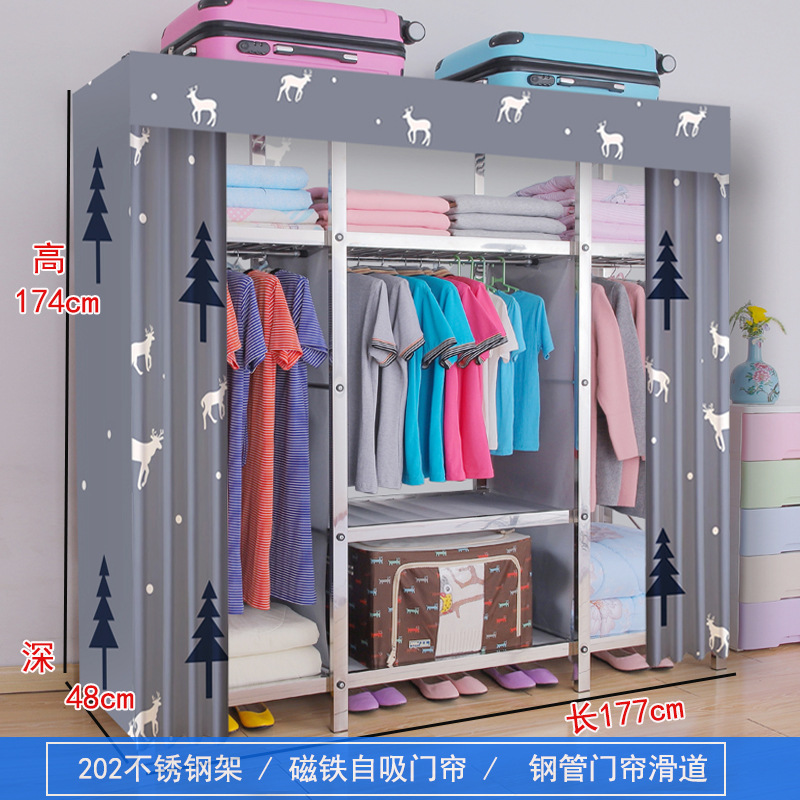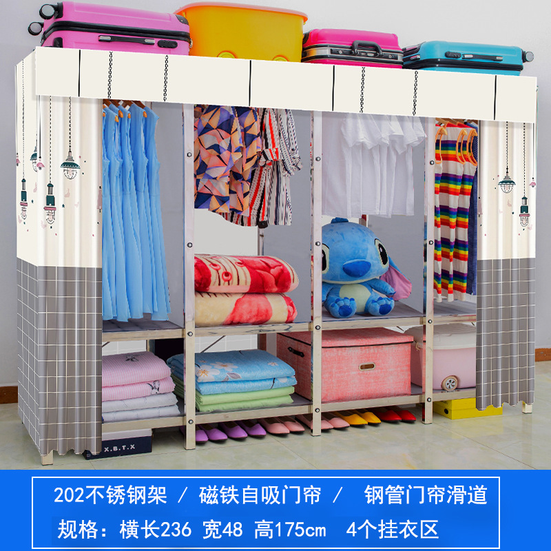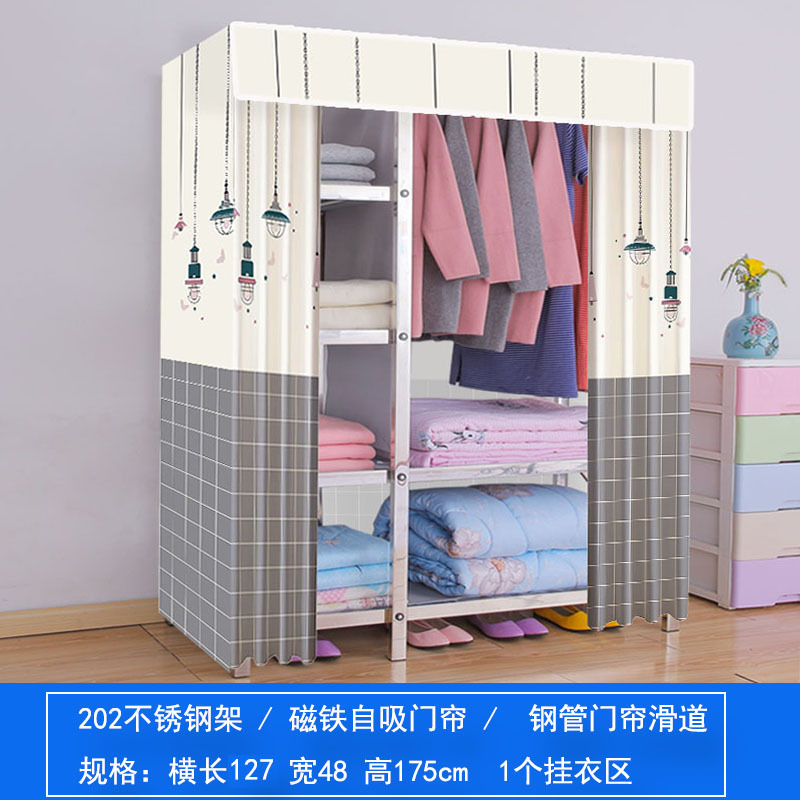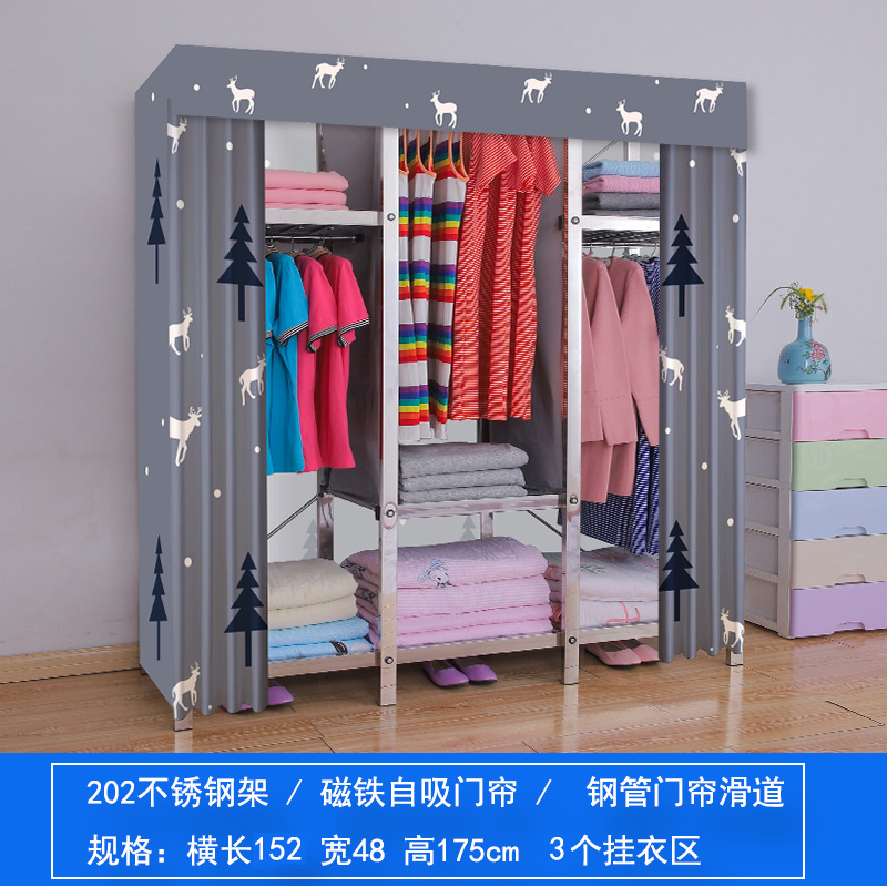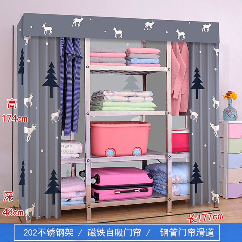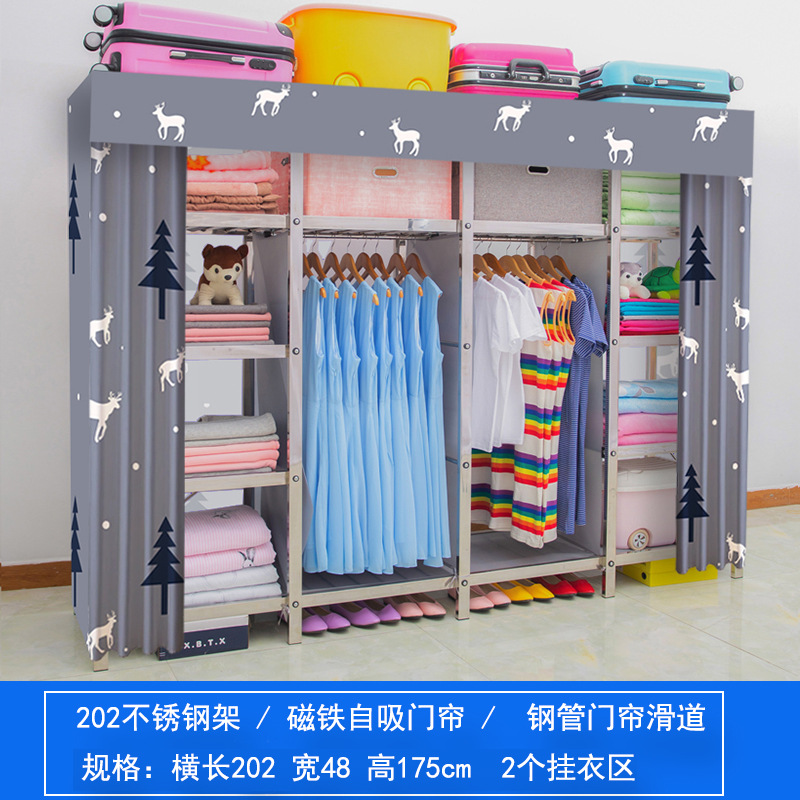 스테인리스 저장 랙 철 흡입 돌 문 커튼 간단한 천 옷장 임대 방 침실 강화 강관 조립 접이식스토어 가기