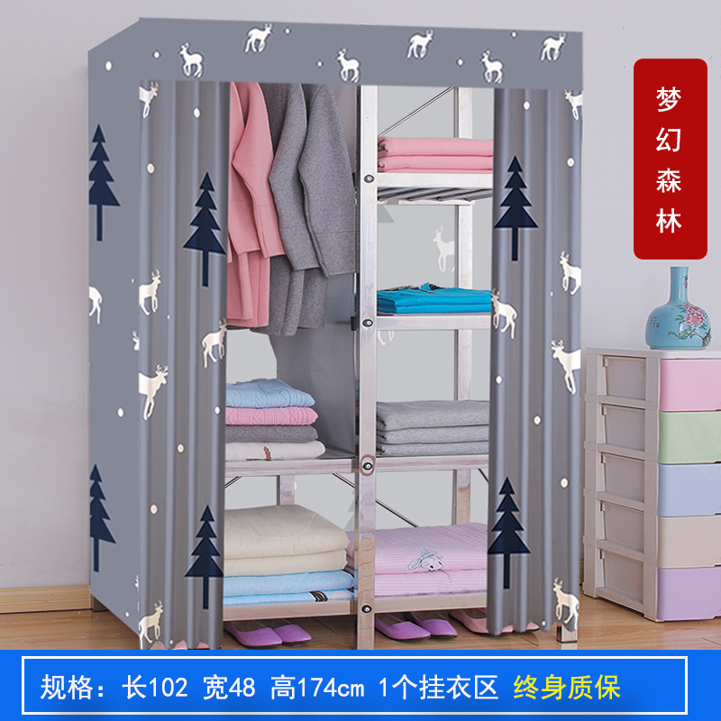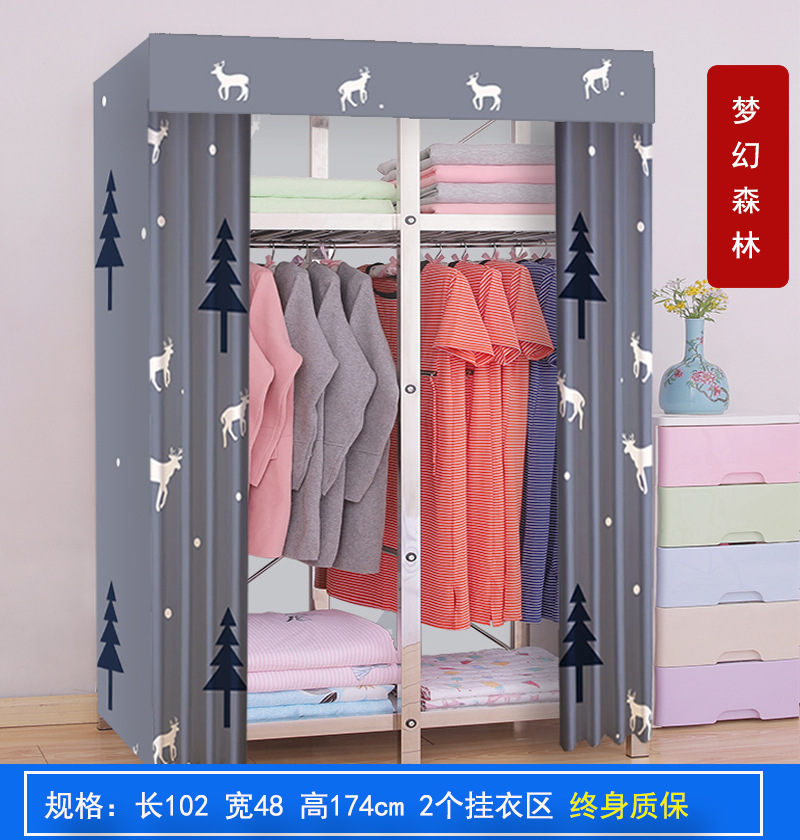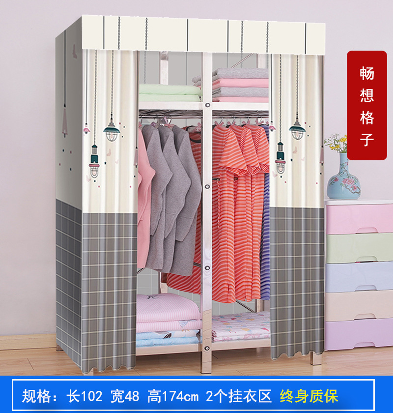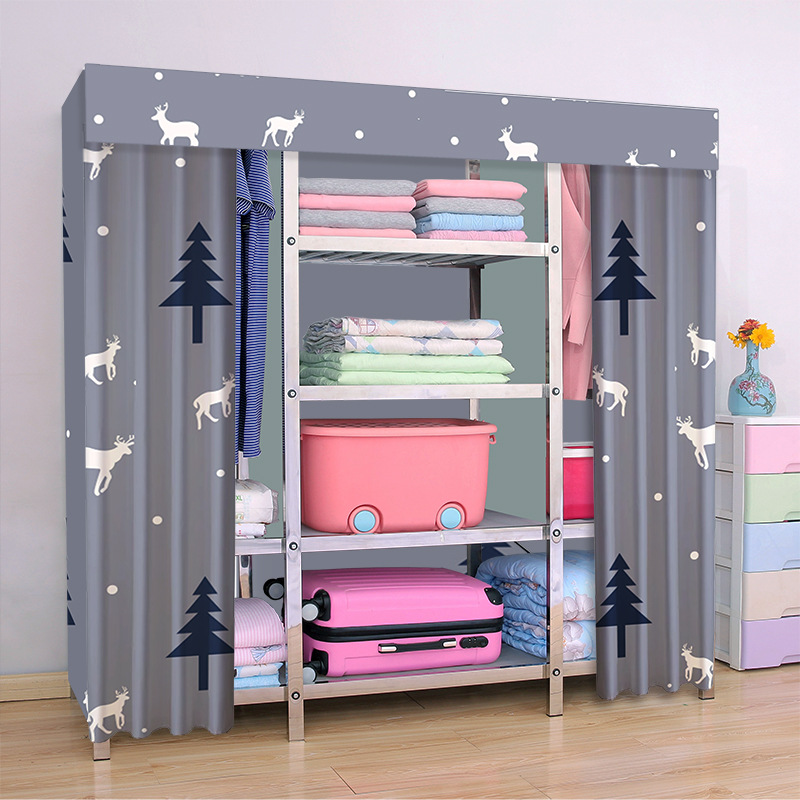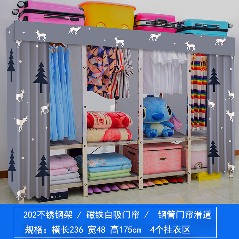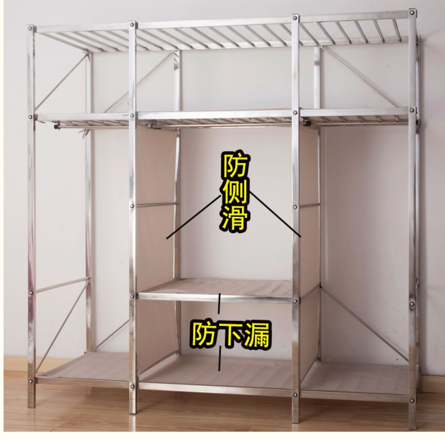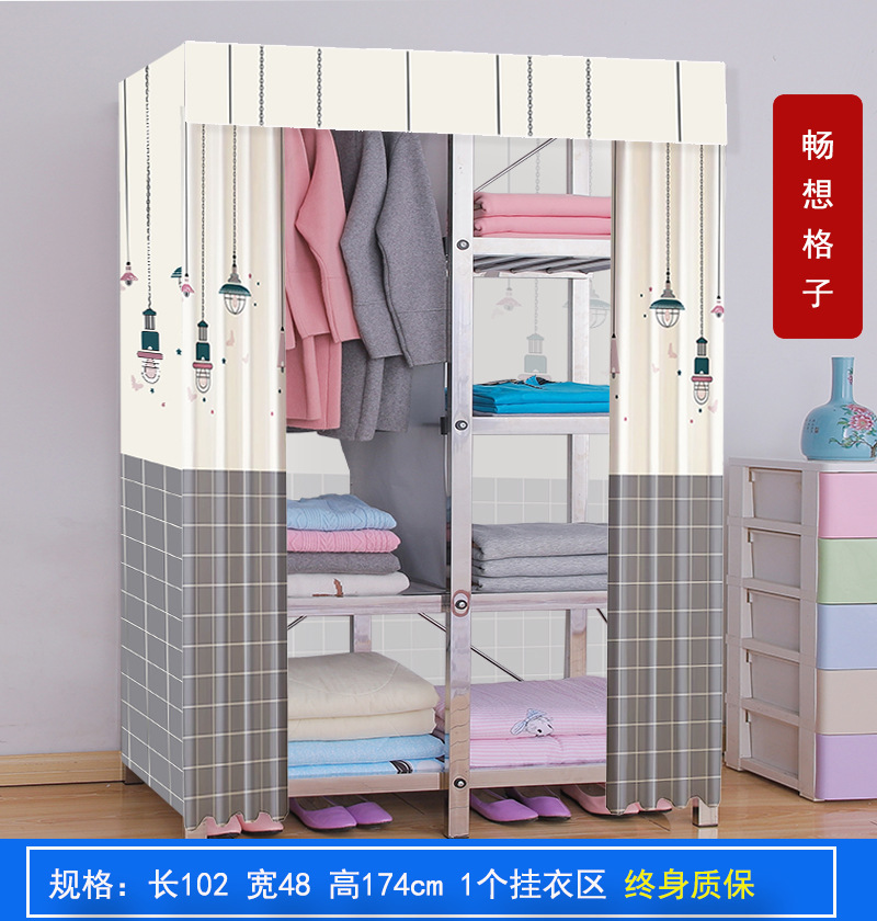 스테인리스 저장 랙 철 흡입 돌 문 커튼 간단한 천 옷장 임대 방 침실 강화 강관 조립 접이식스토어 가기