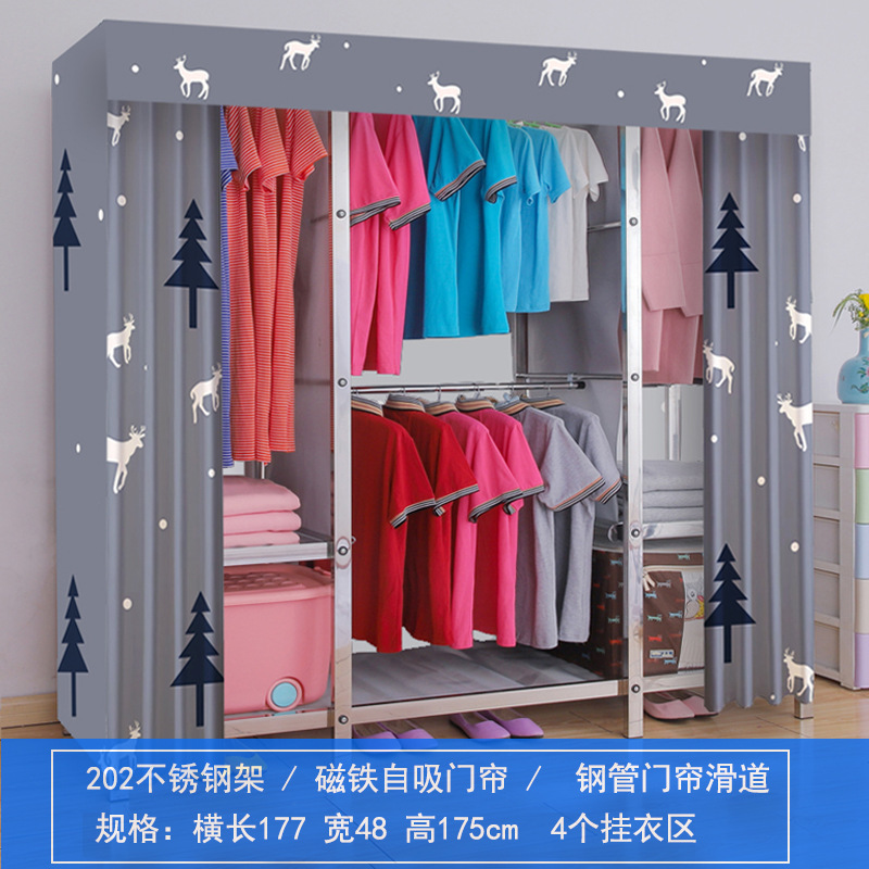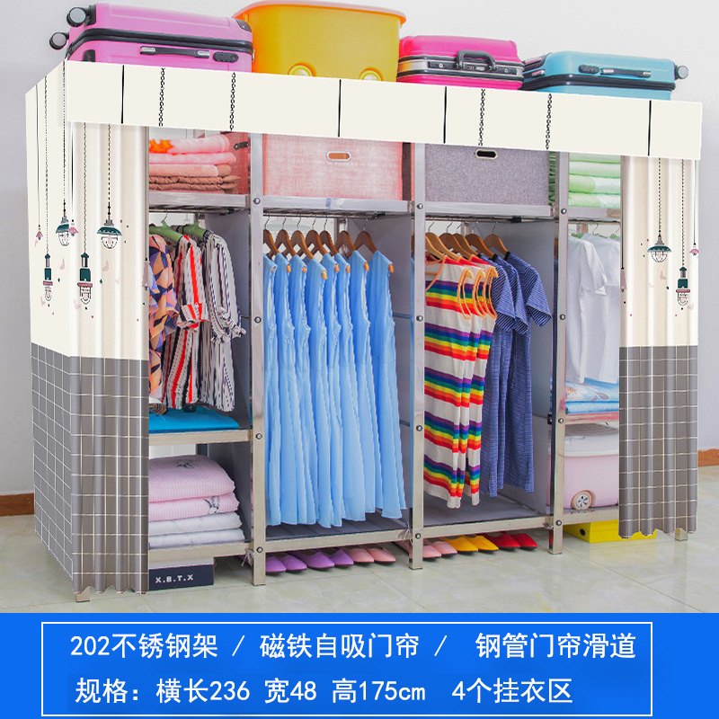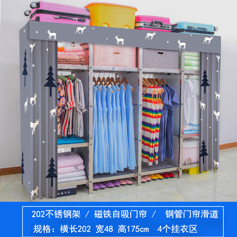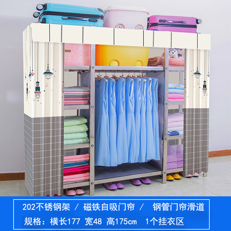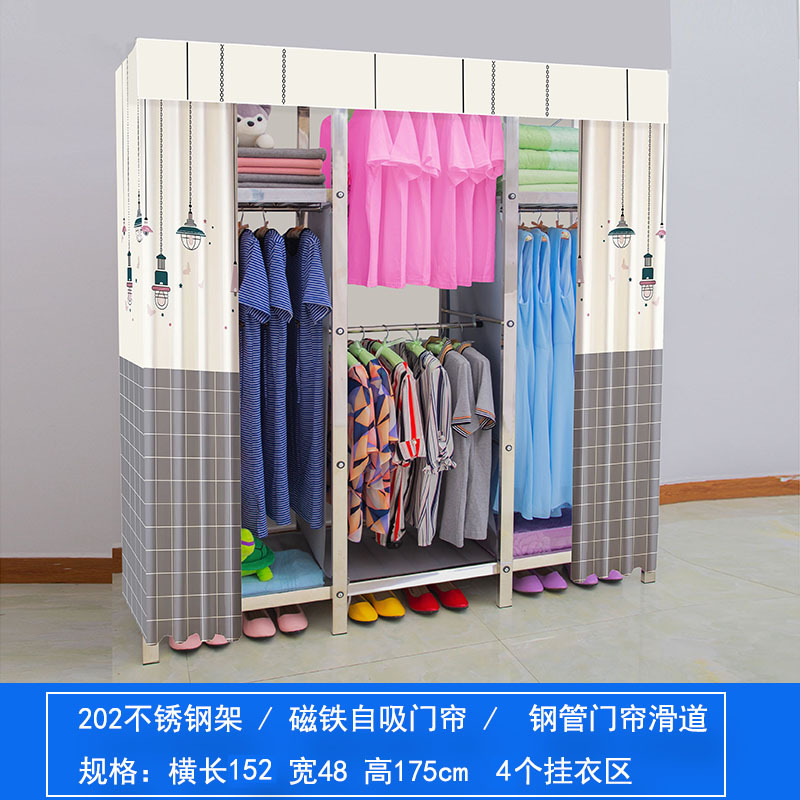 스테인리스 저장 랙 철 흡입 돌 문 커튼 간단한 천 옷장 임대 방 침실 강화 강관 조립 접이식