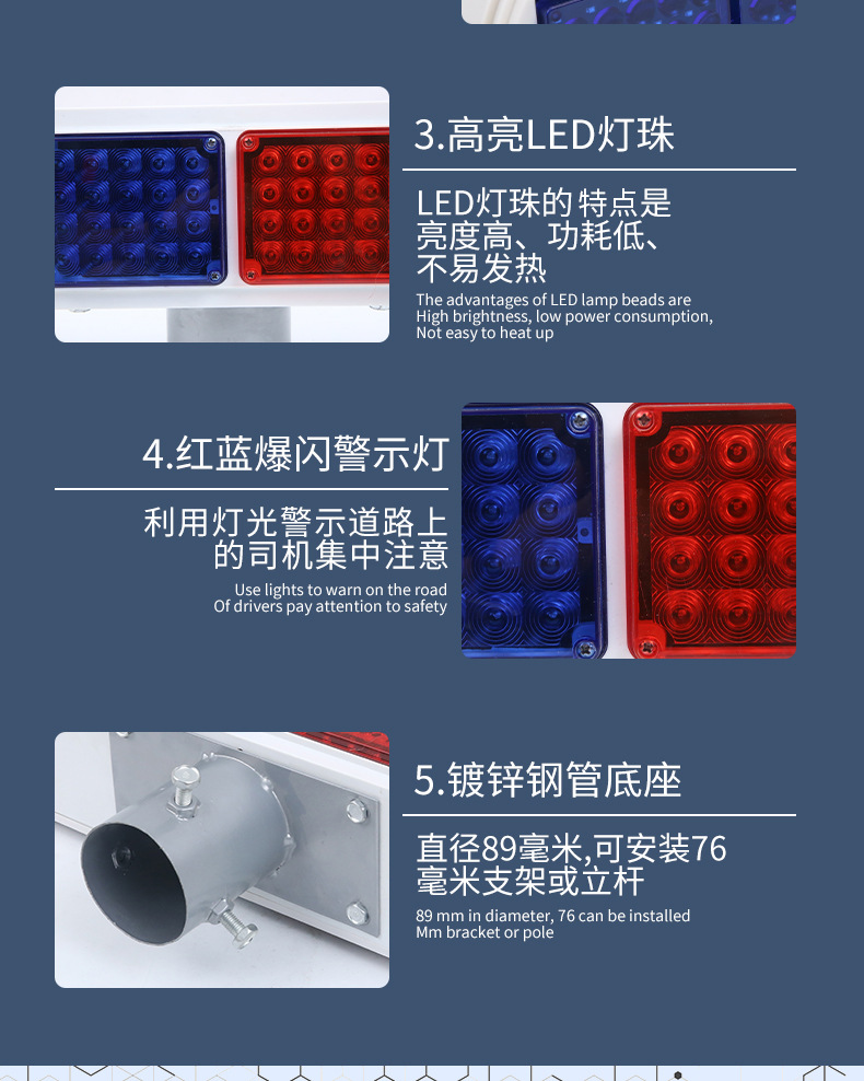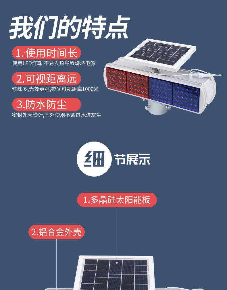 태양광 점멸등 교통안전 경고등 적색 및 청색 점멸 도로공사 차단등 경고등