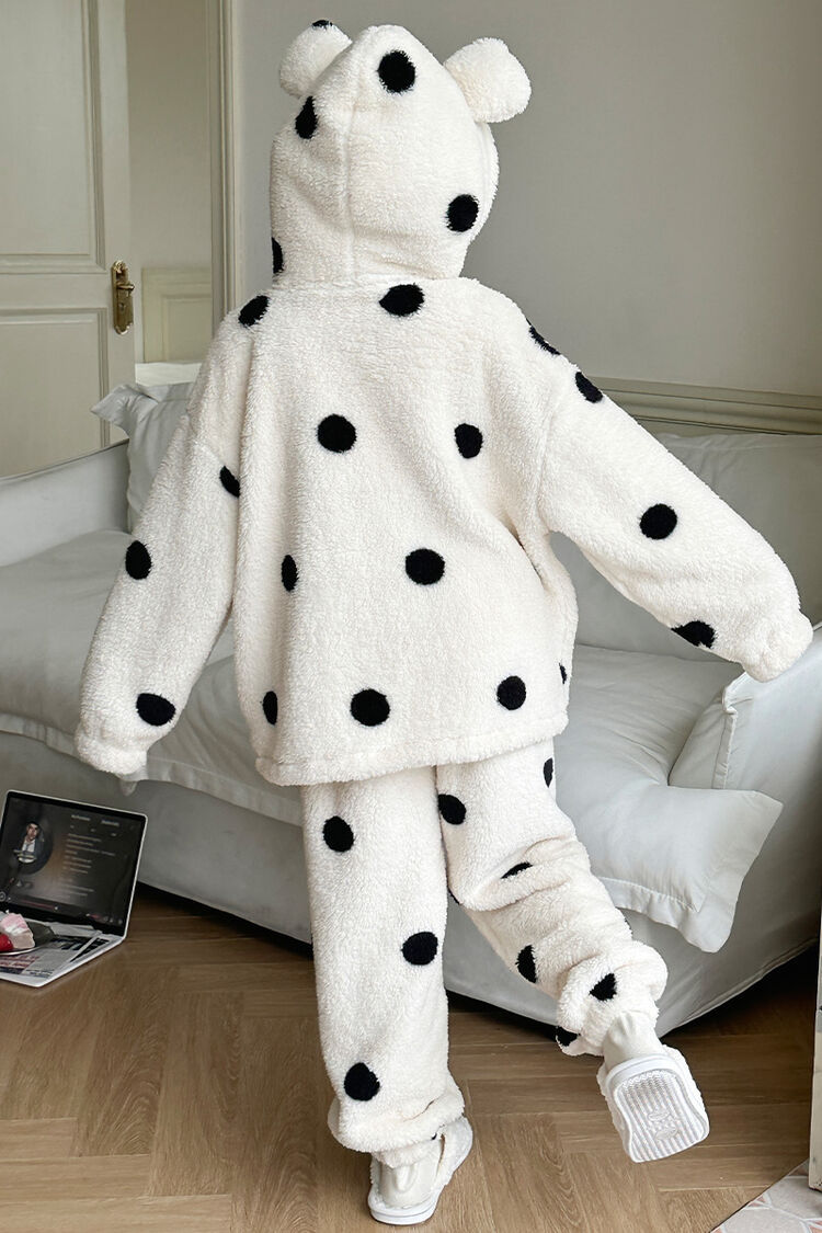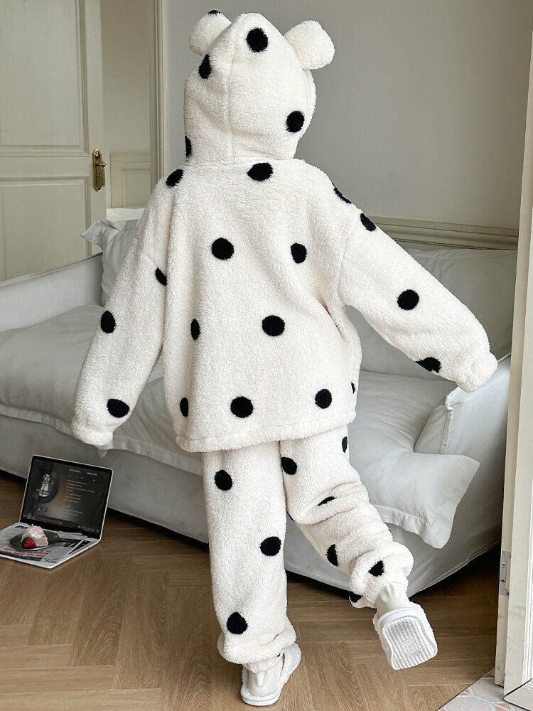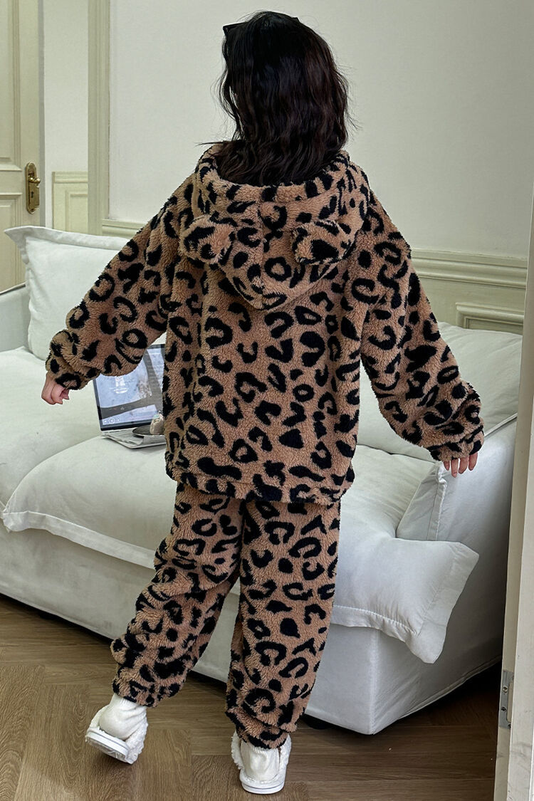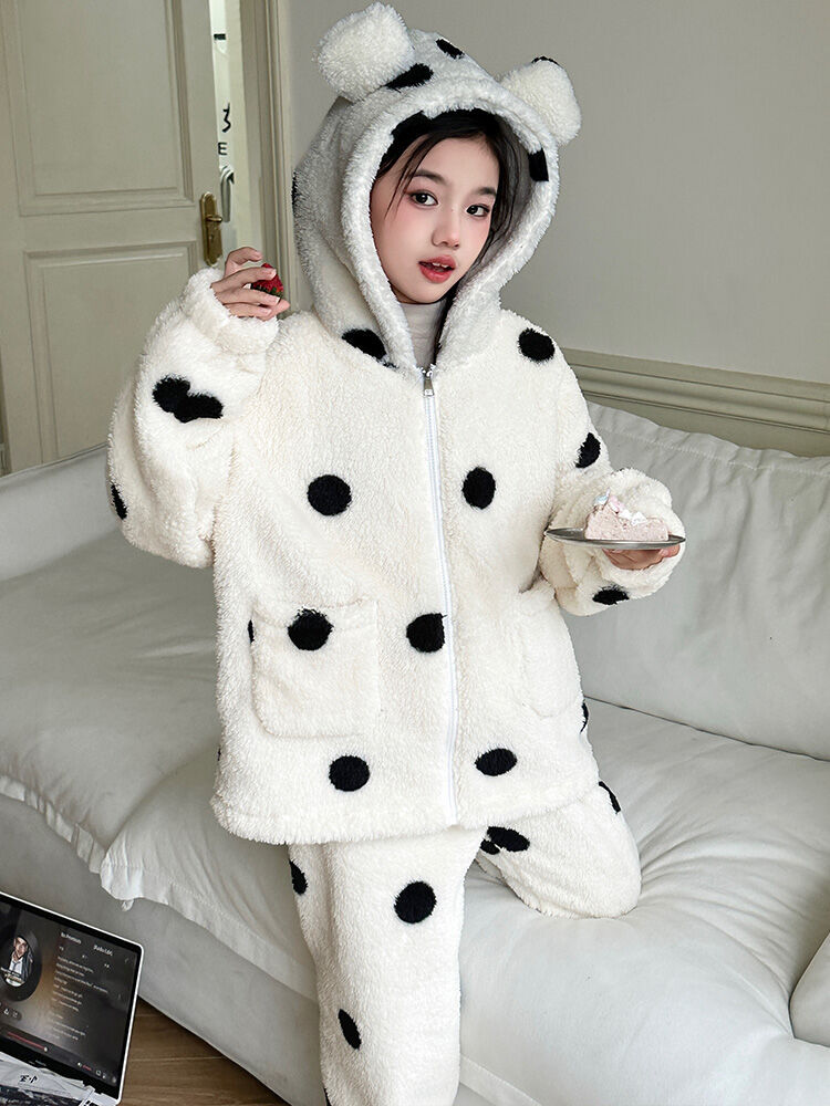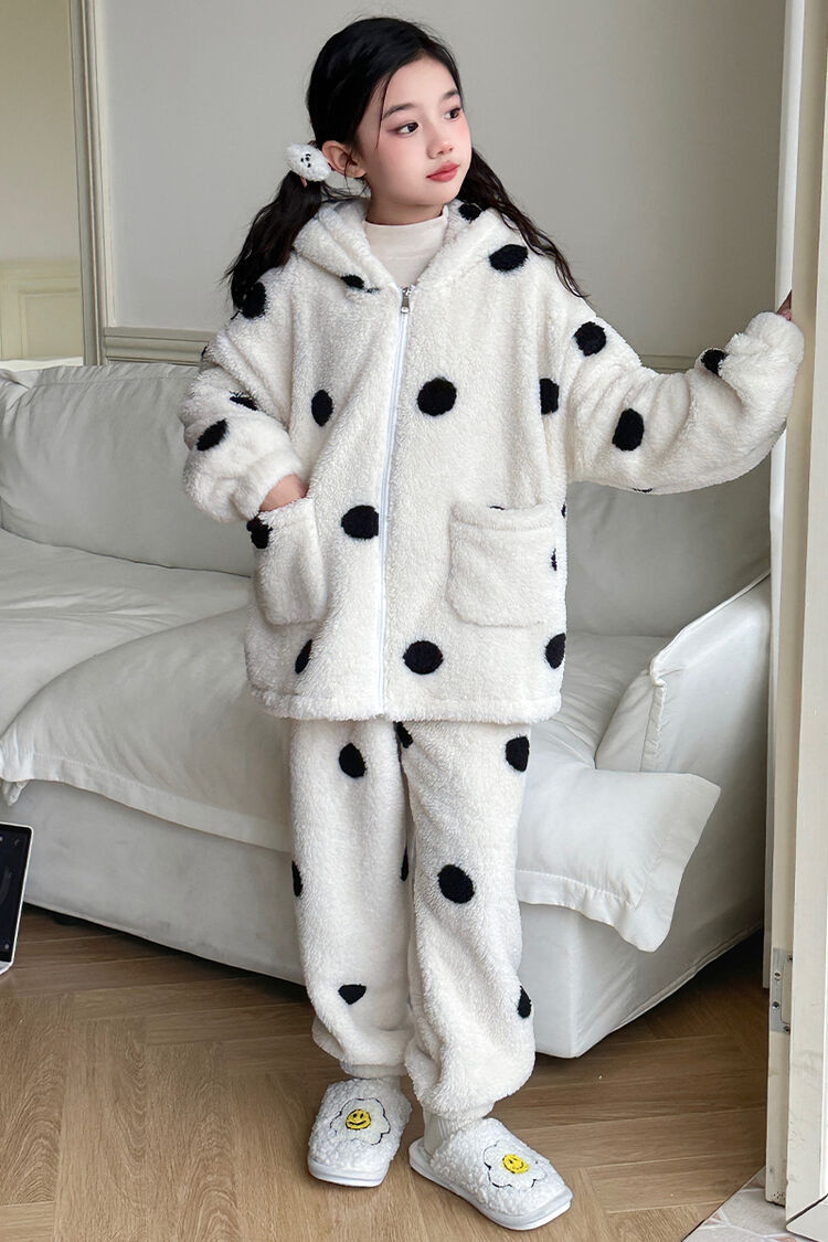 여자 후드 파자마 어린이 겨울 두꺼운 양면 양털 레오파드 무늬 홈 옷 유행 여자 따뜻한 세트 입고스토어 가기