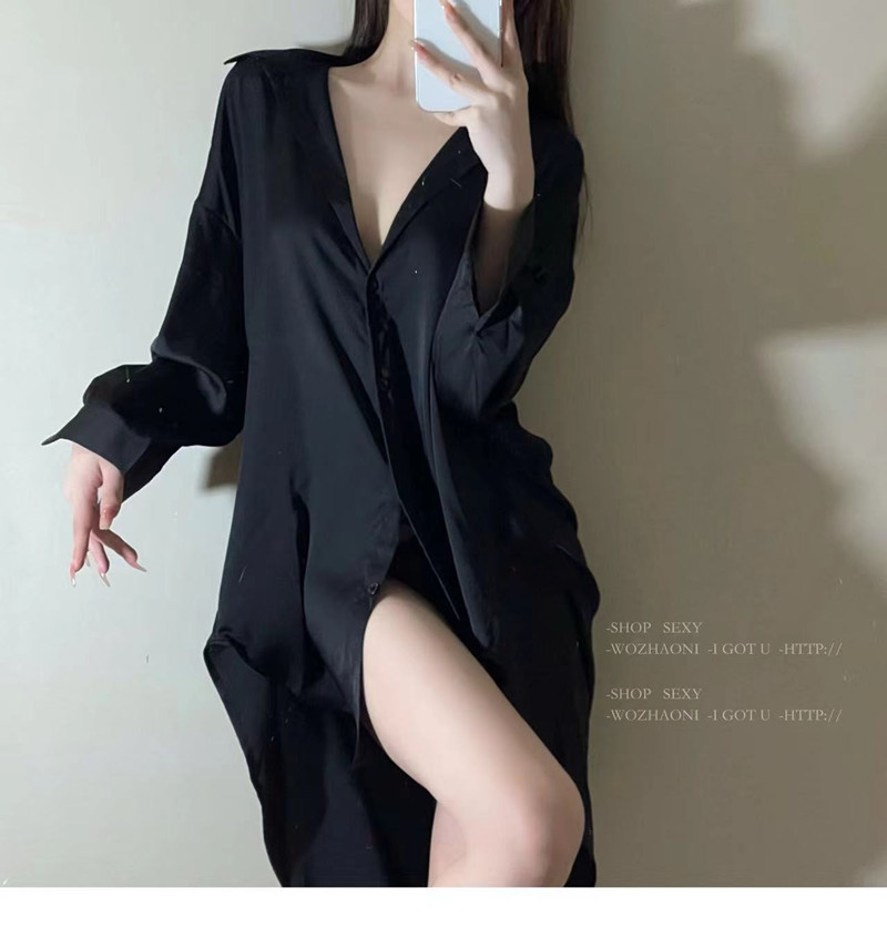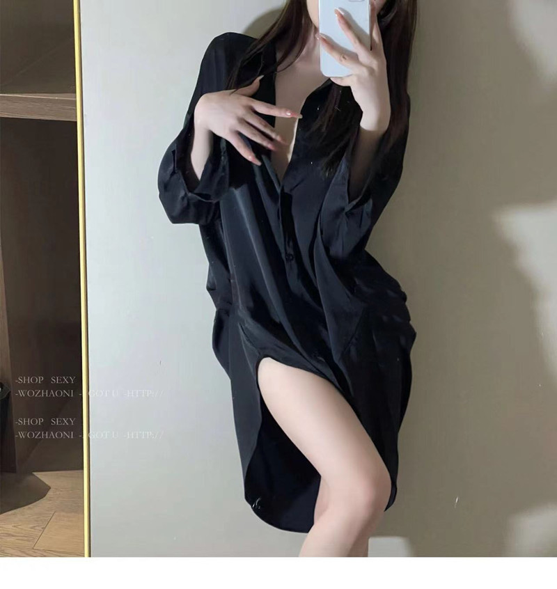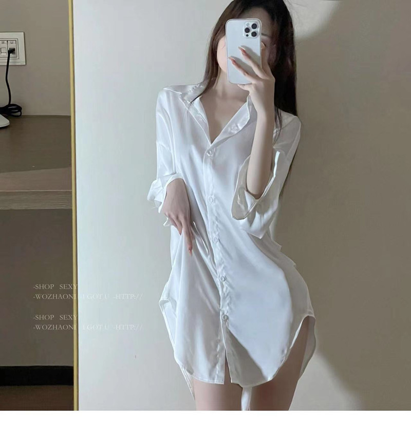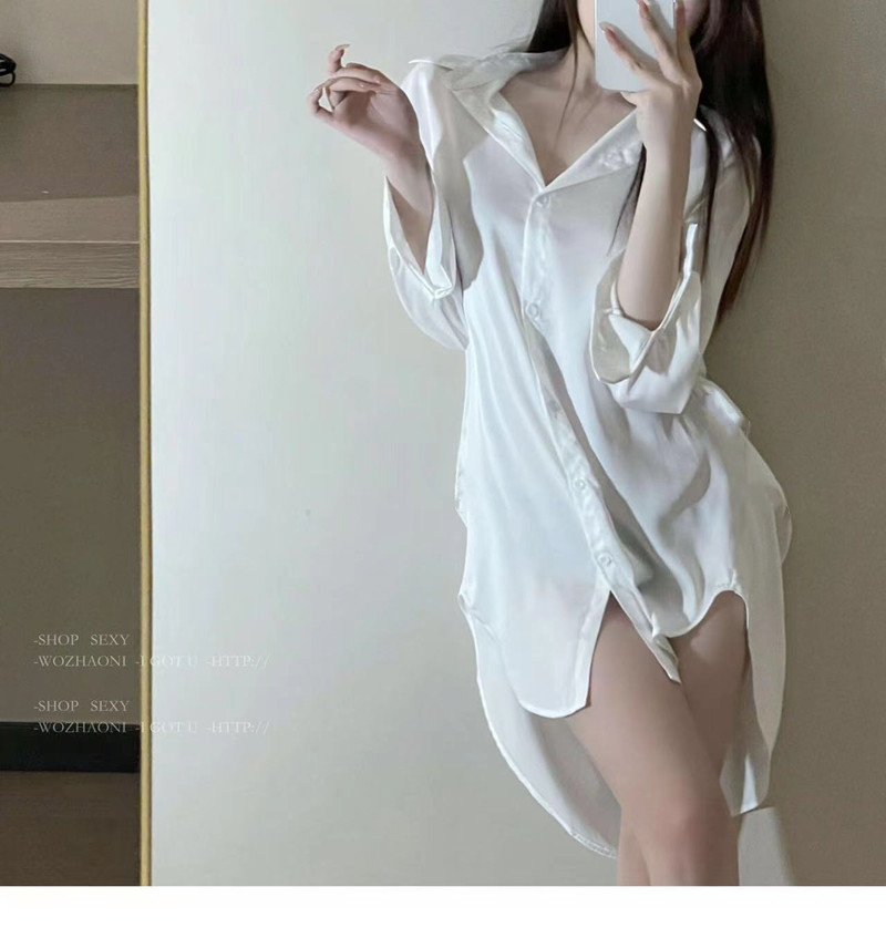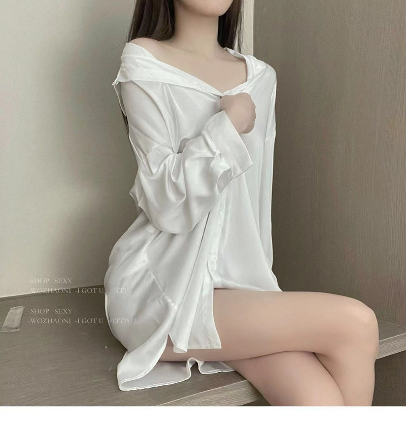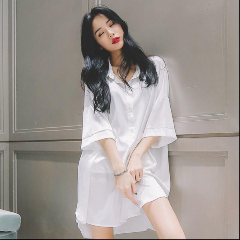 셔츠 파자마 여성의 여름 얇은 순수한 욕망 남자 친구 스타일 시폰 나이트 드레스 고급 흰색 긴팔 봄 및 가을 홈 의류스토어 가기