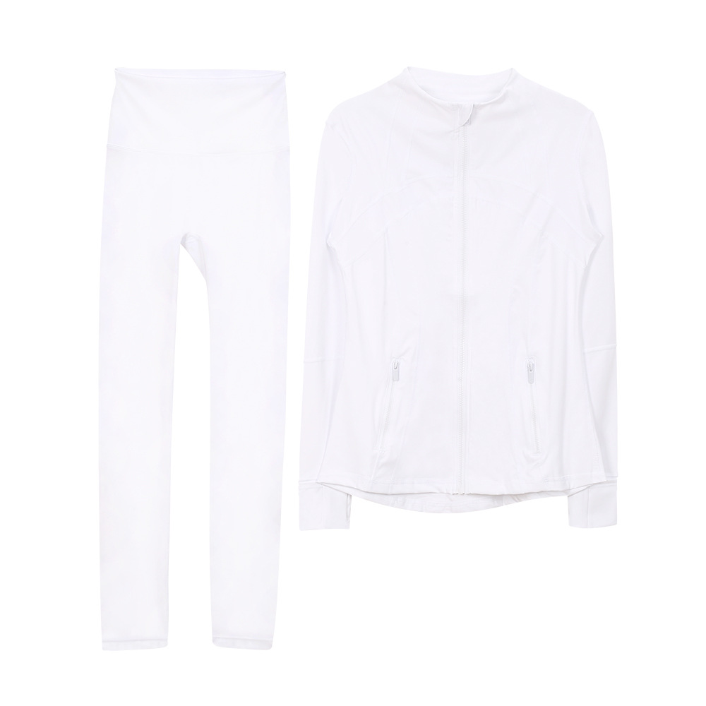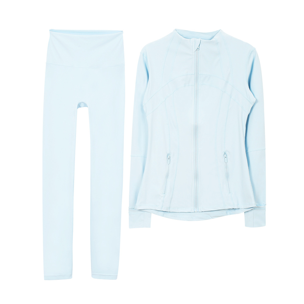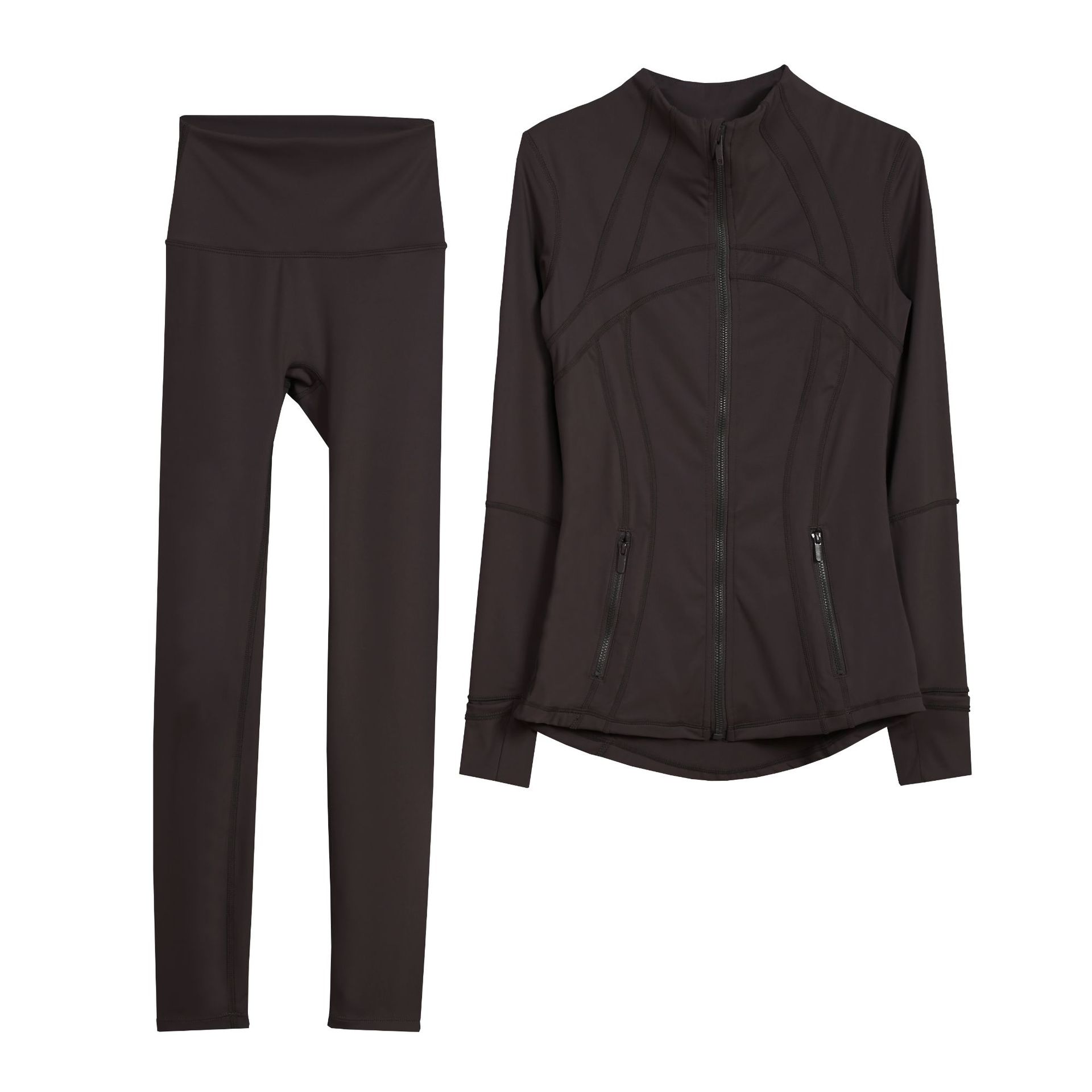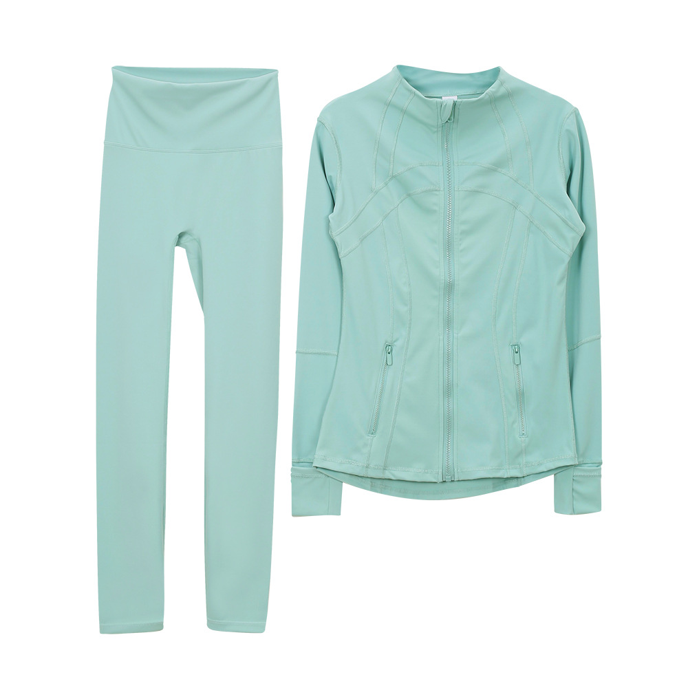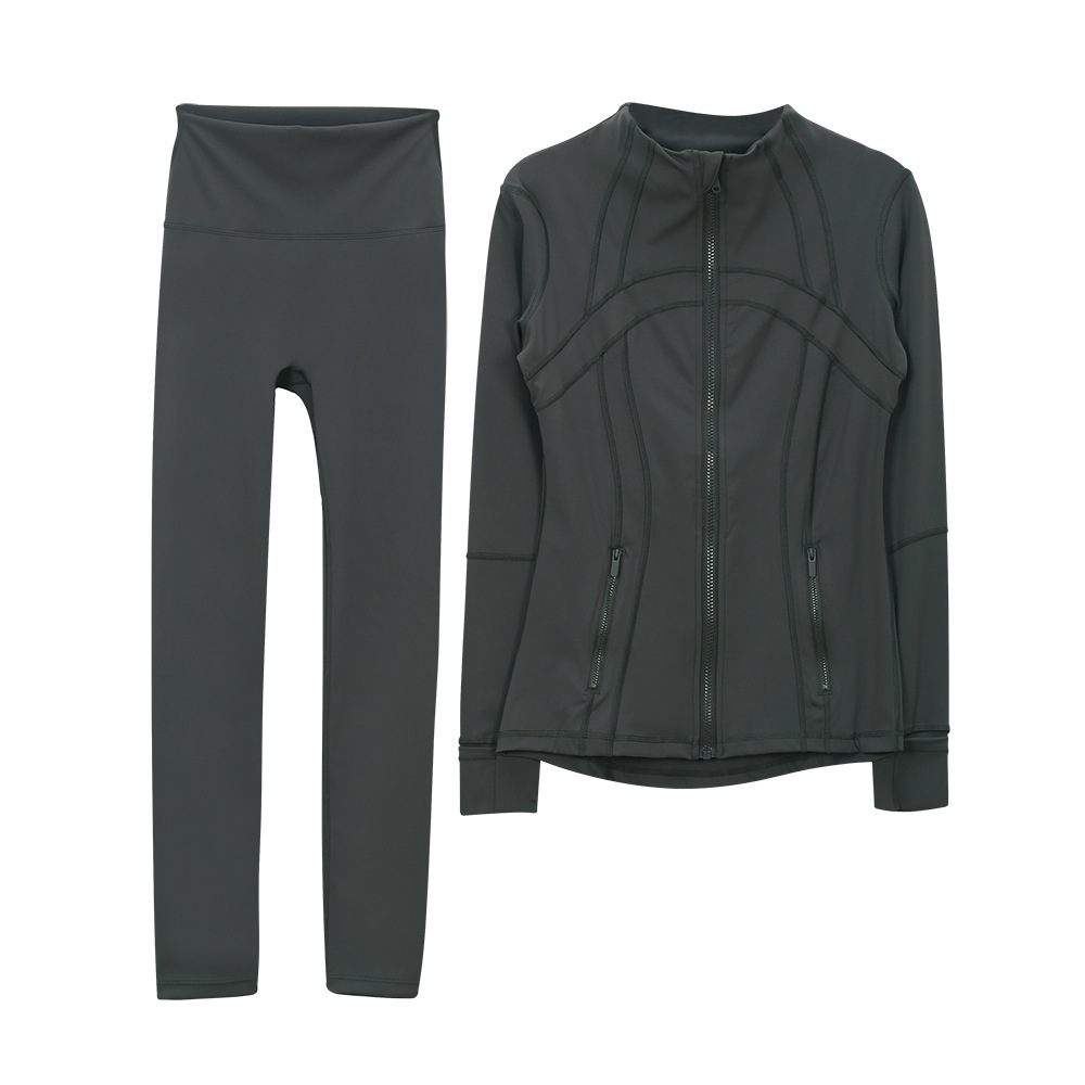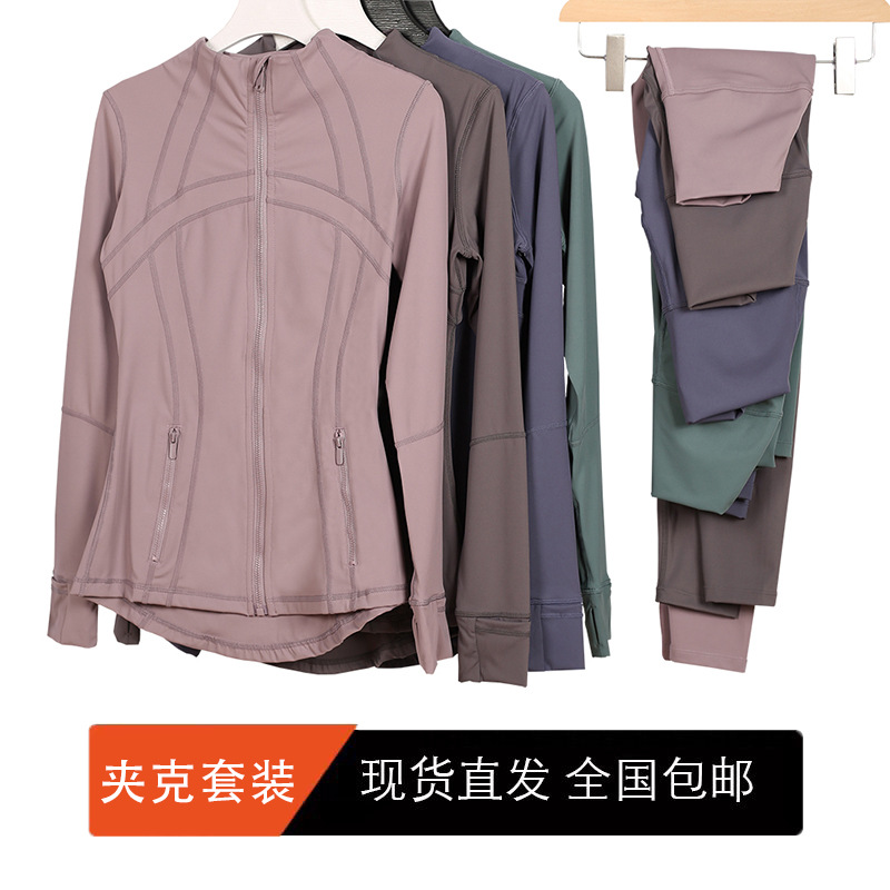 (재고) 재킷 DF 세트 탑 긴 소매 여성의 단단한 수직 칼라 스트레치 피트니스 스포츠 러닝 요가 옷