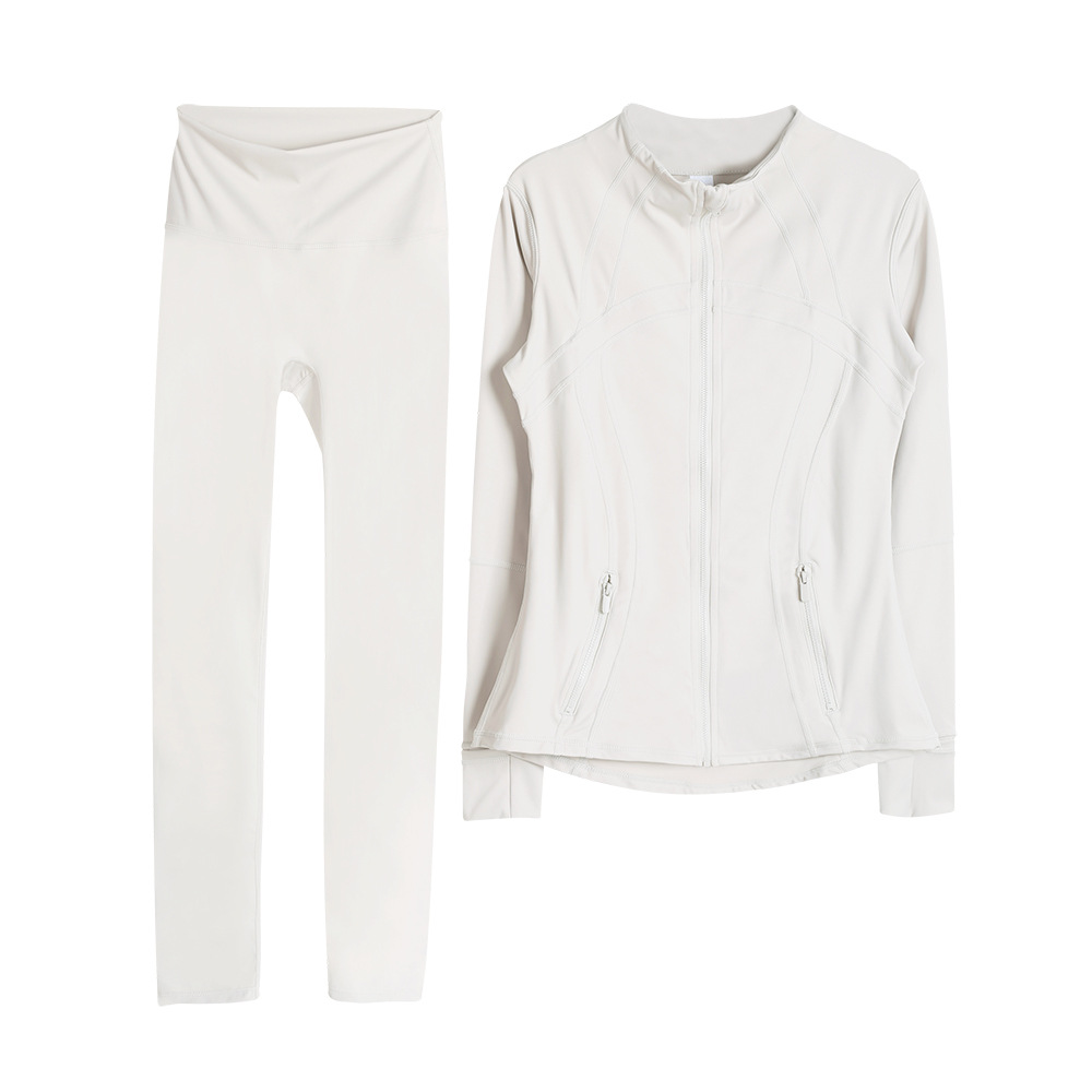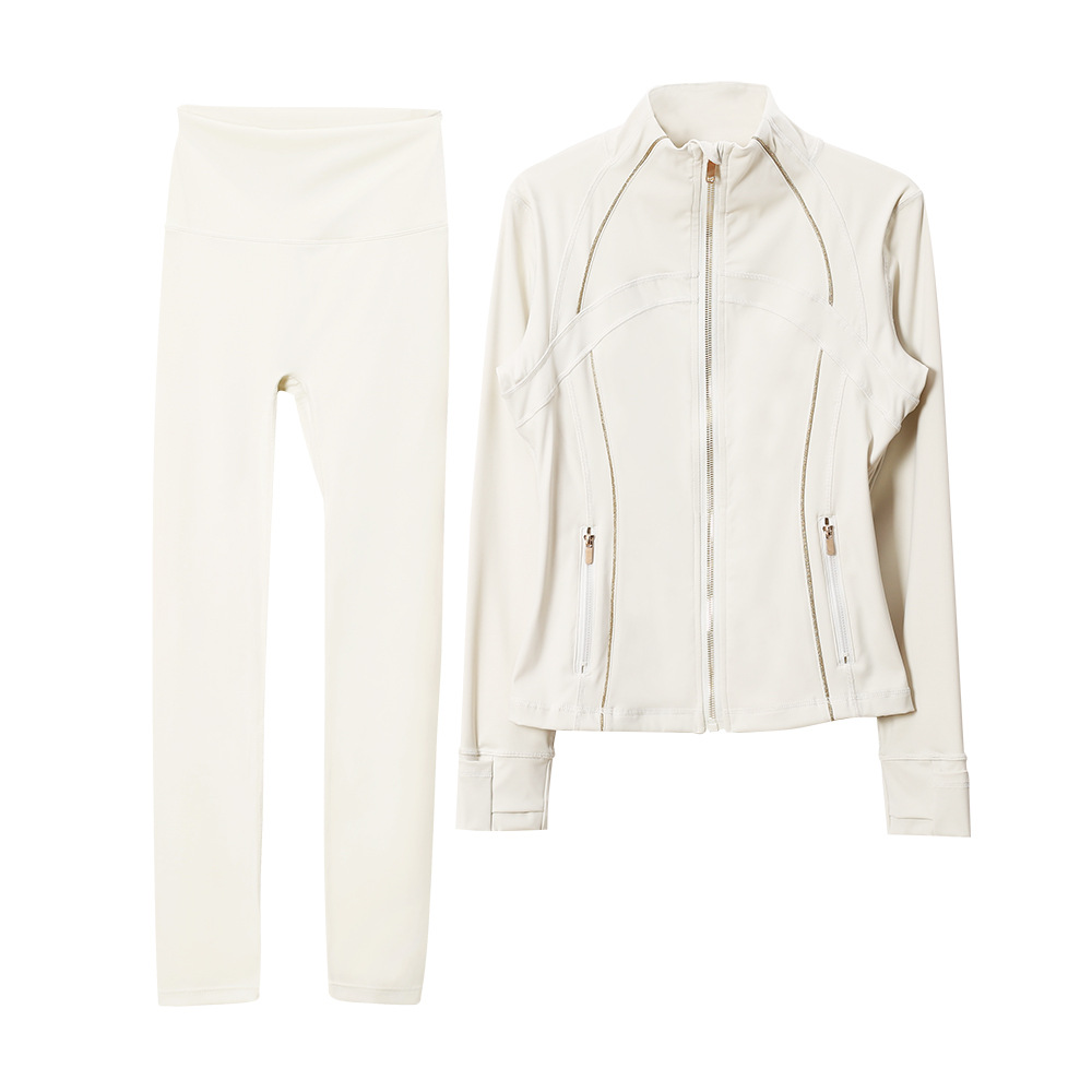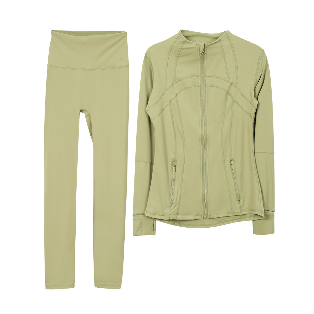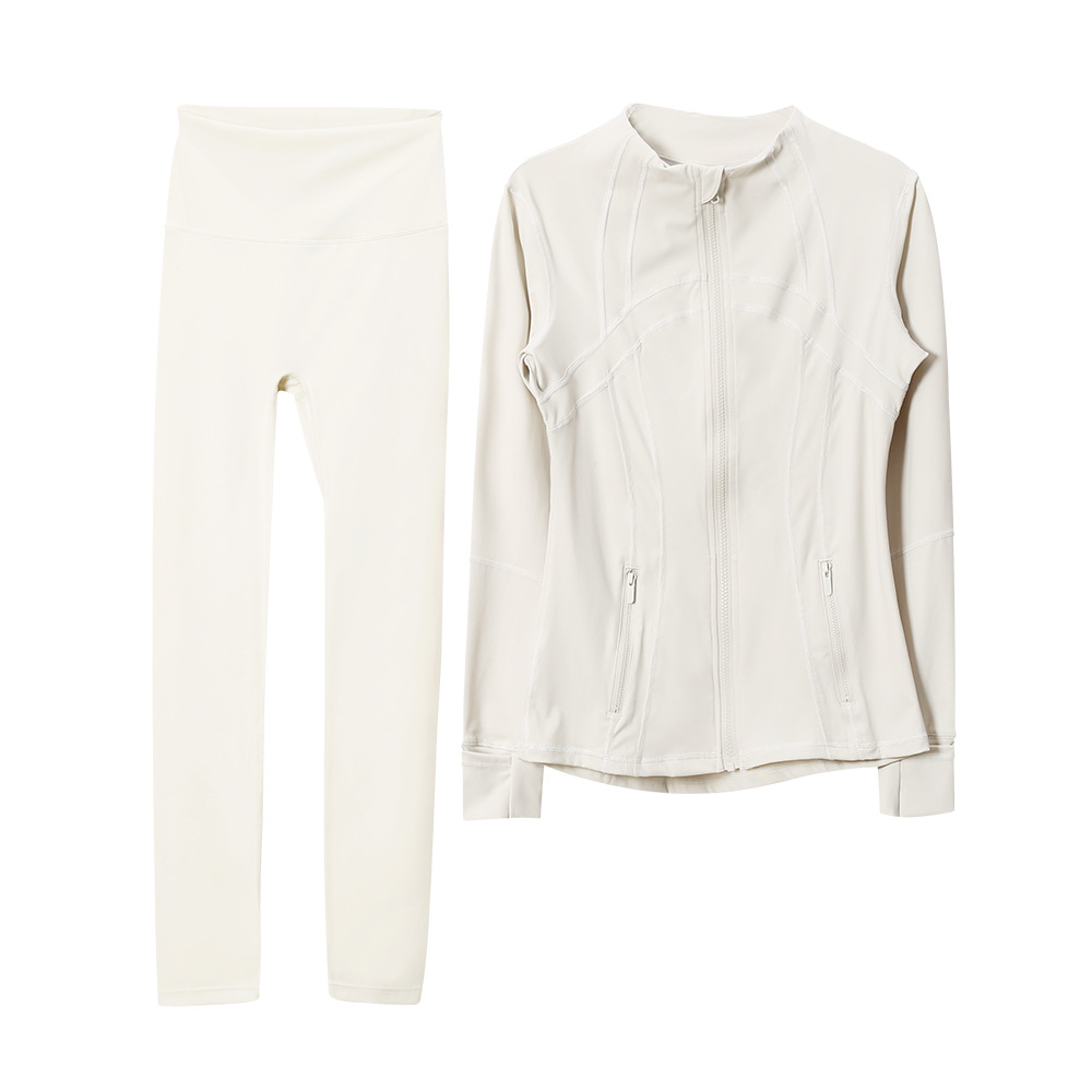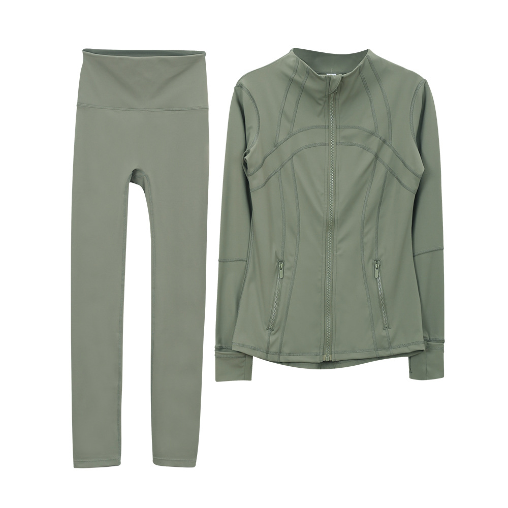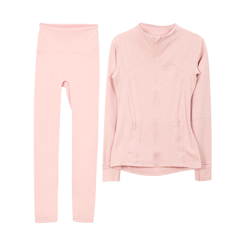 (재고) 재킷 DF 세트 탑 긴 소매 여성의 단단한 수직 칼라 스트레치 피트니스 스포츠 러닝 요가 옷