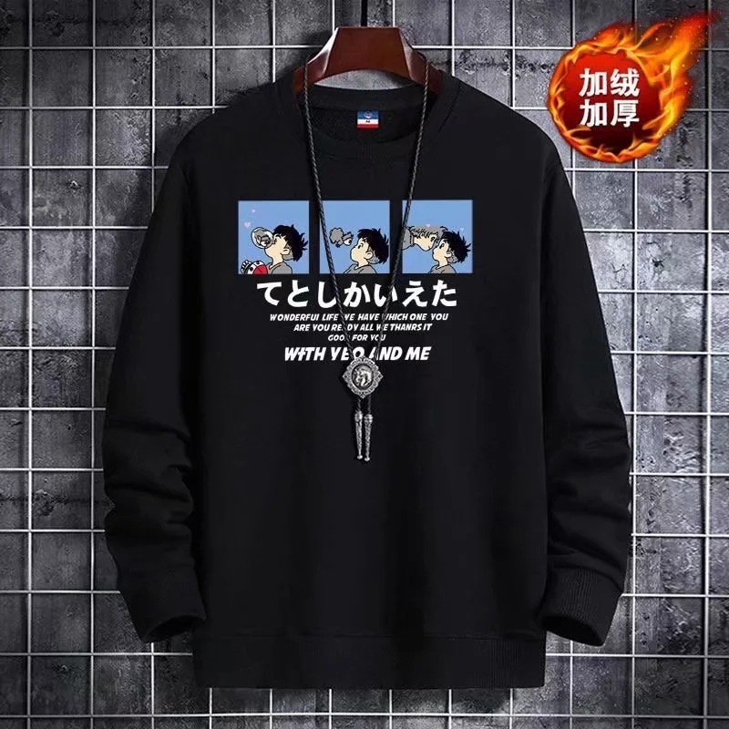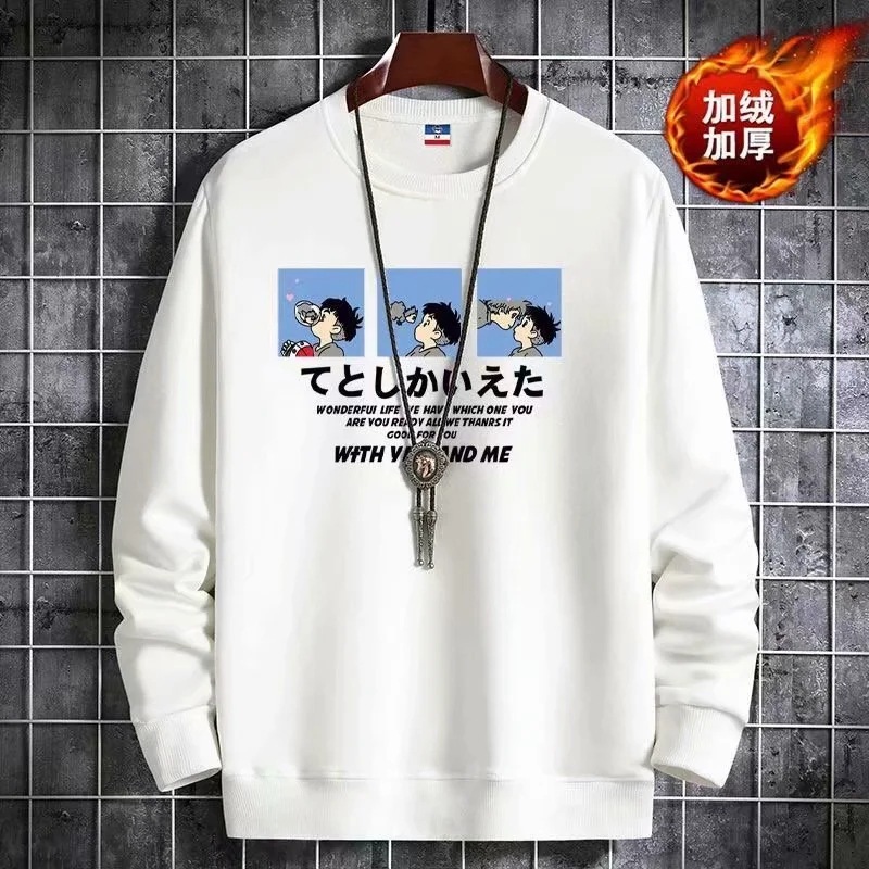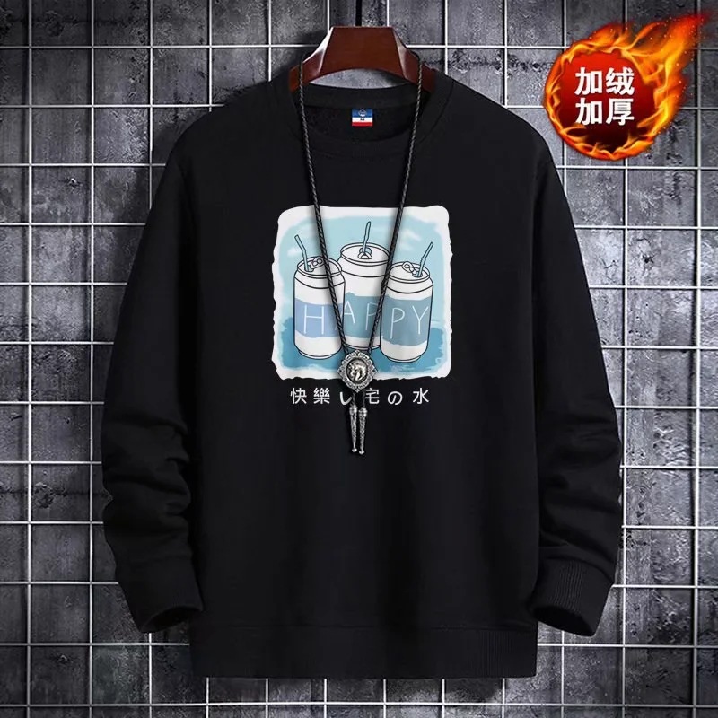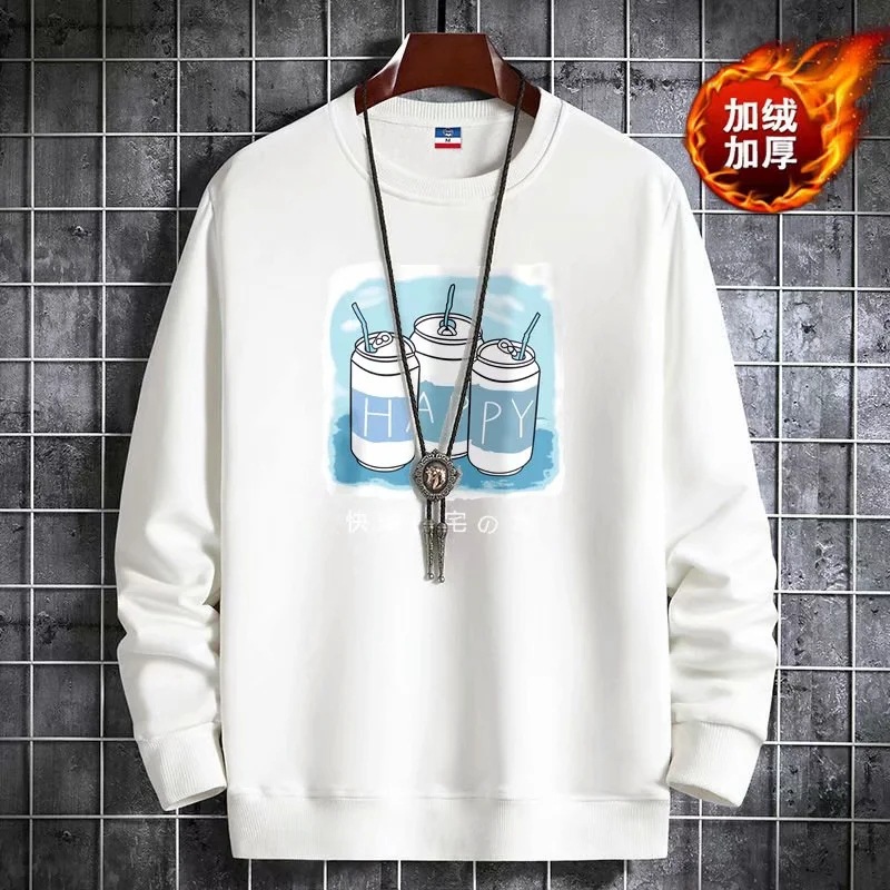 2025 신상 가을 겨울 남성용 보온 플리스 스웨트셔츠 루즈핏 라운드넥 한국 스타일 패션 스포츠 긴팔 상의 자켓