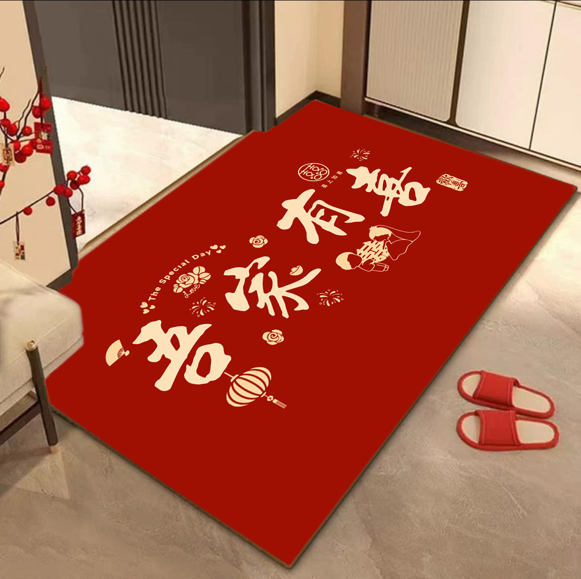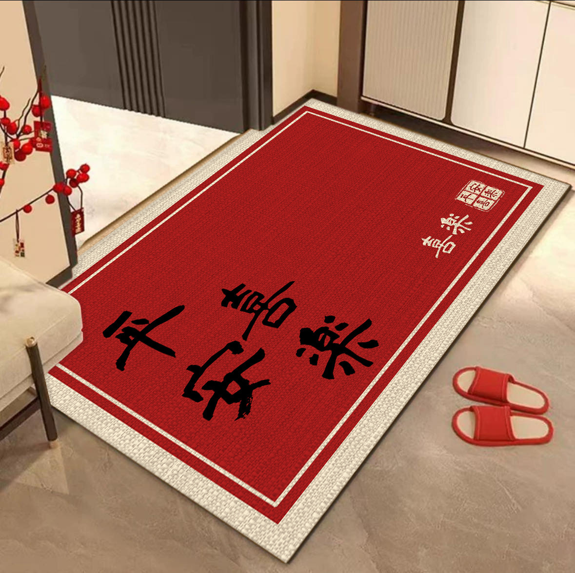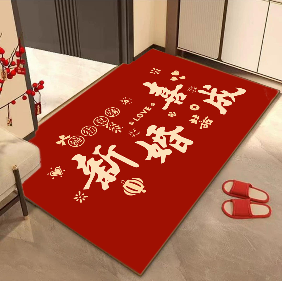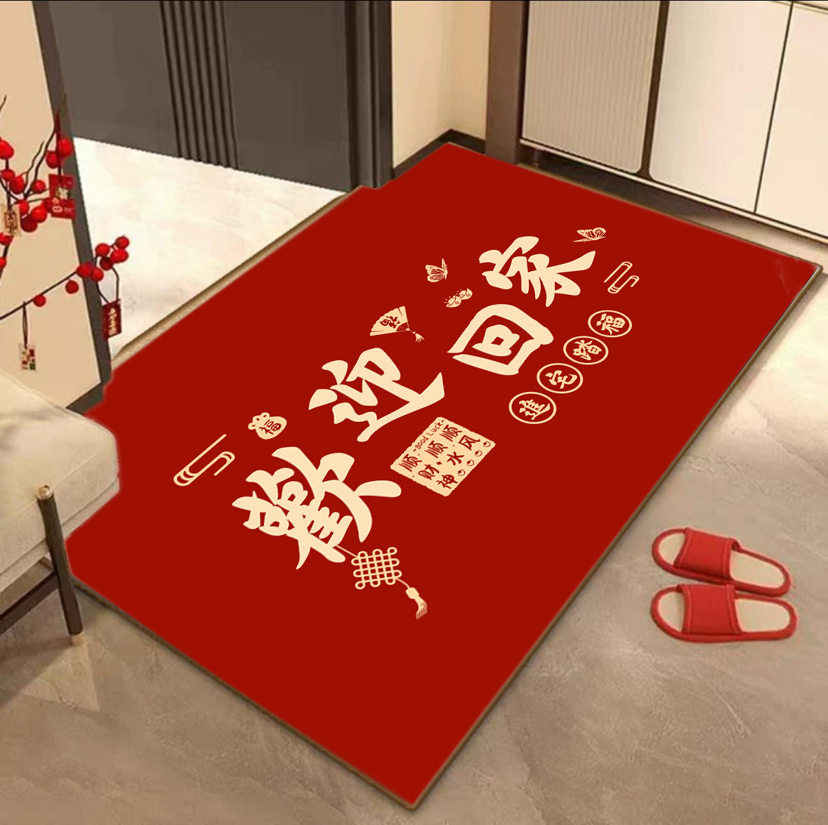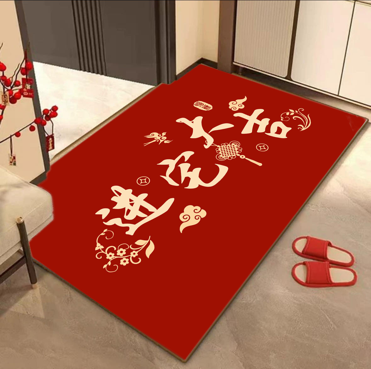 새로운 중국 스타일 입구 문 매트 높은 수준의 입구 발 매트 붉은 먼지 제거 먼지 방지 매트 쉽게 크리스탈 벨벳 매트 관리스토어 가기