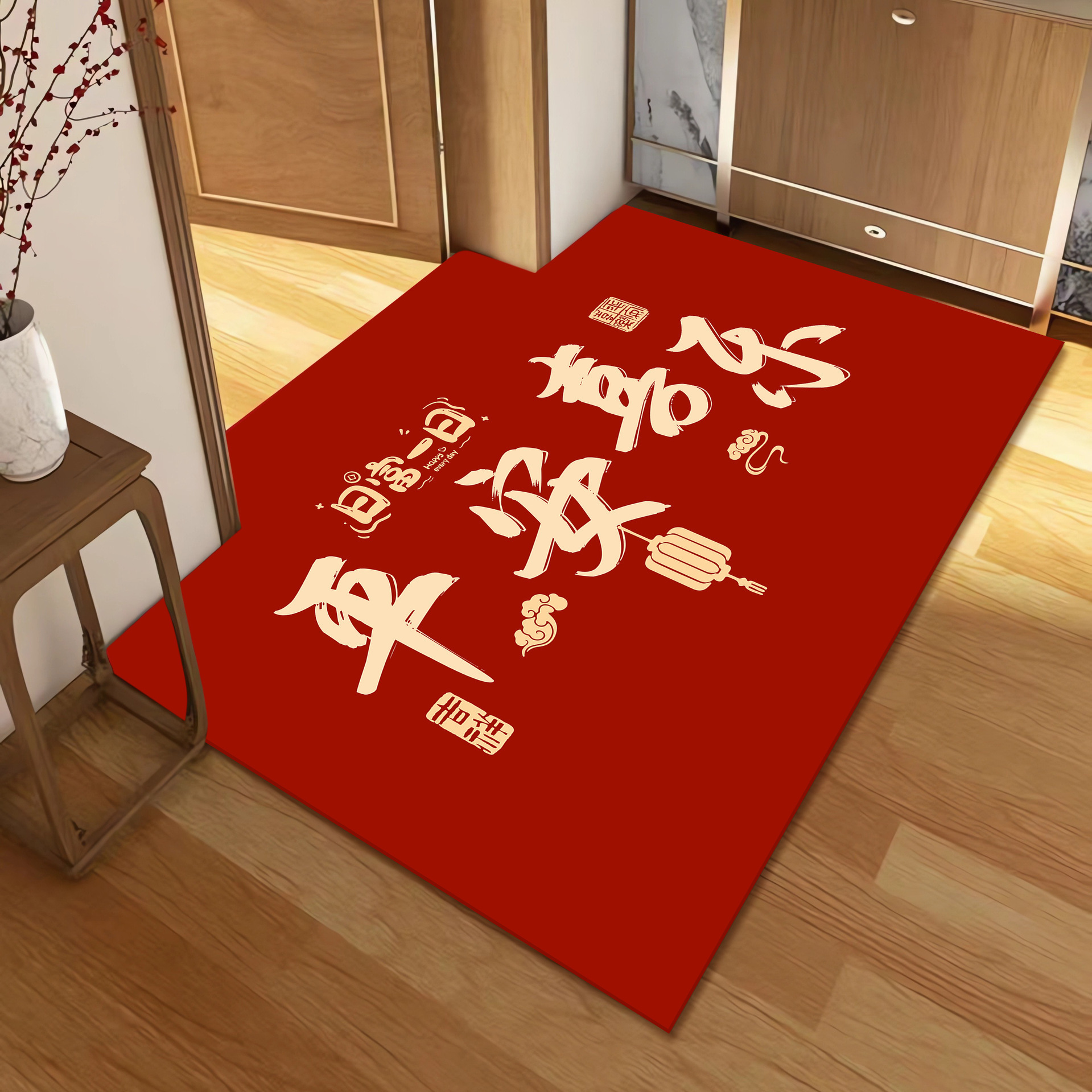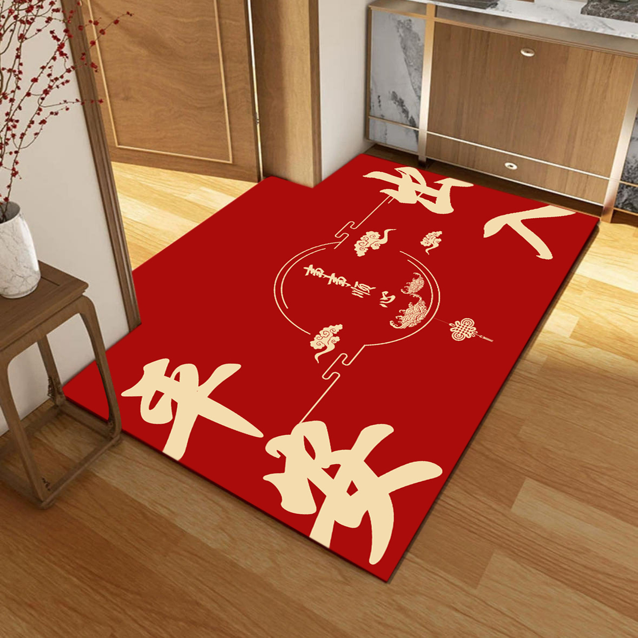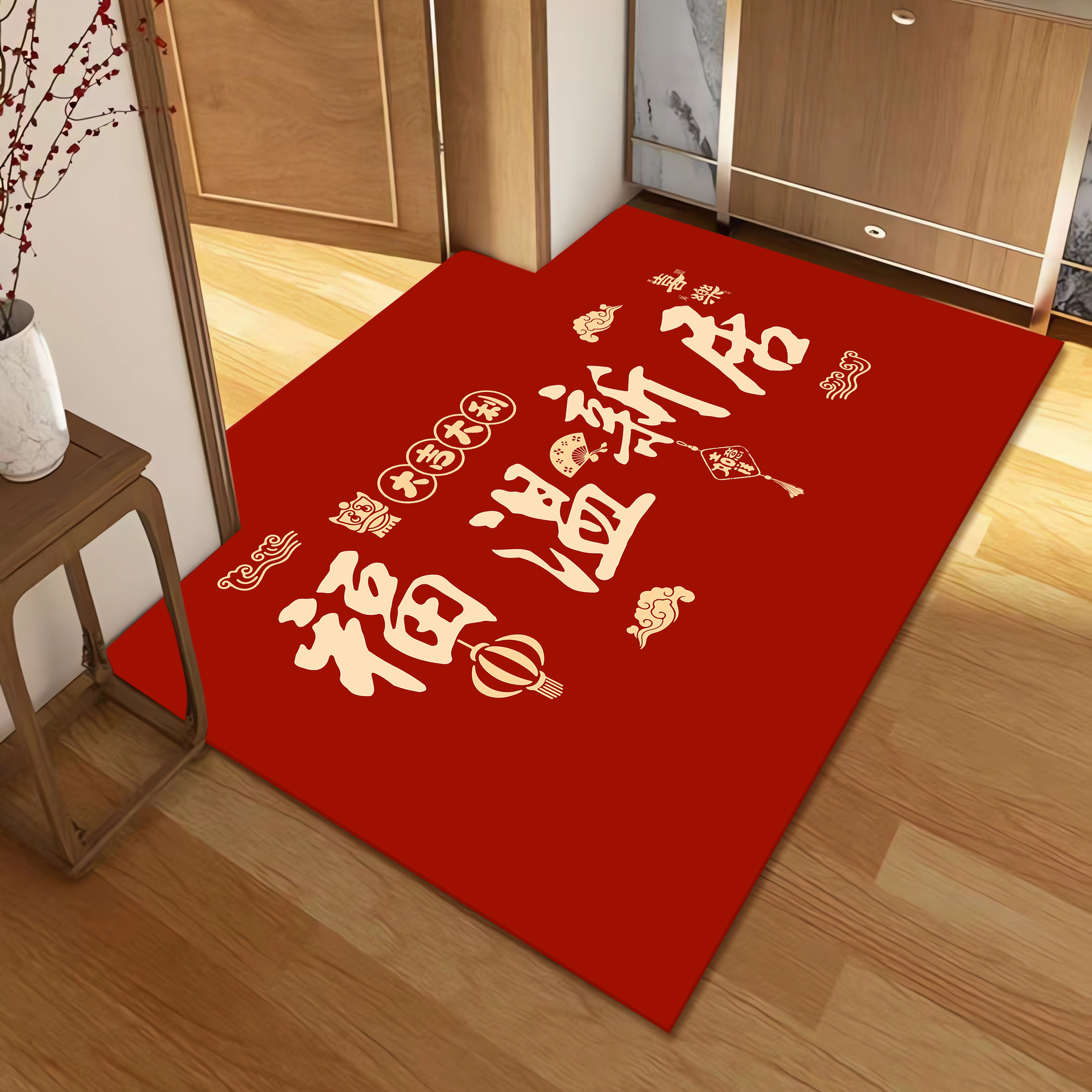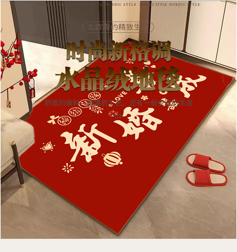 새로운 중국 스타일 입구 문 매트 높은 수준의 입구 발 매트 붉은 먼지 제거 먼지 방지 매트 쉽게 크리스탈 벨벳 매트 관리