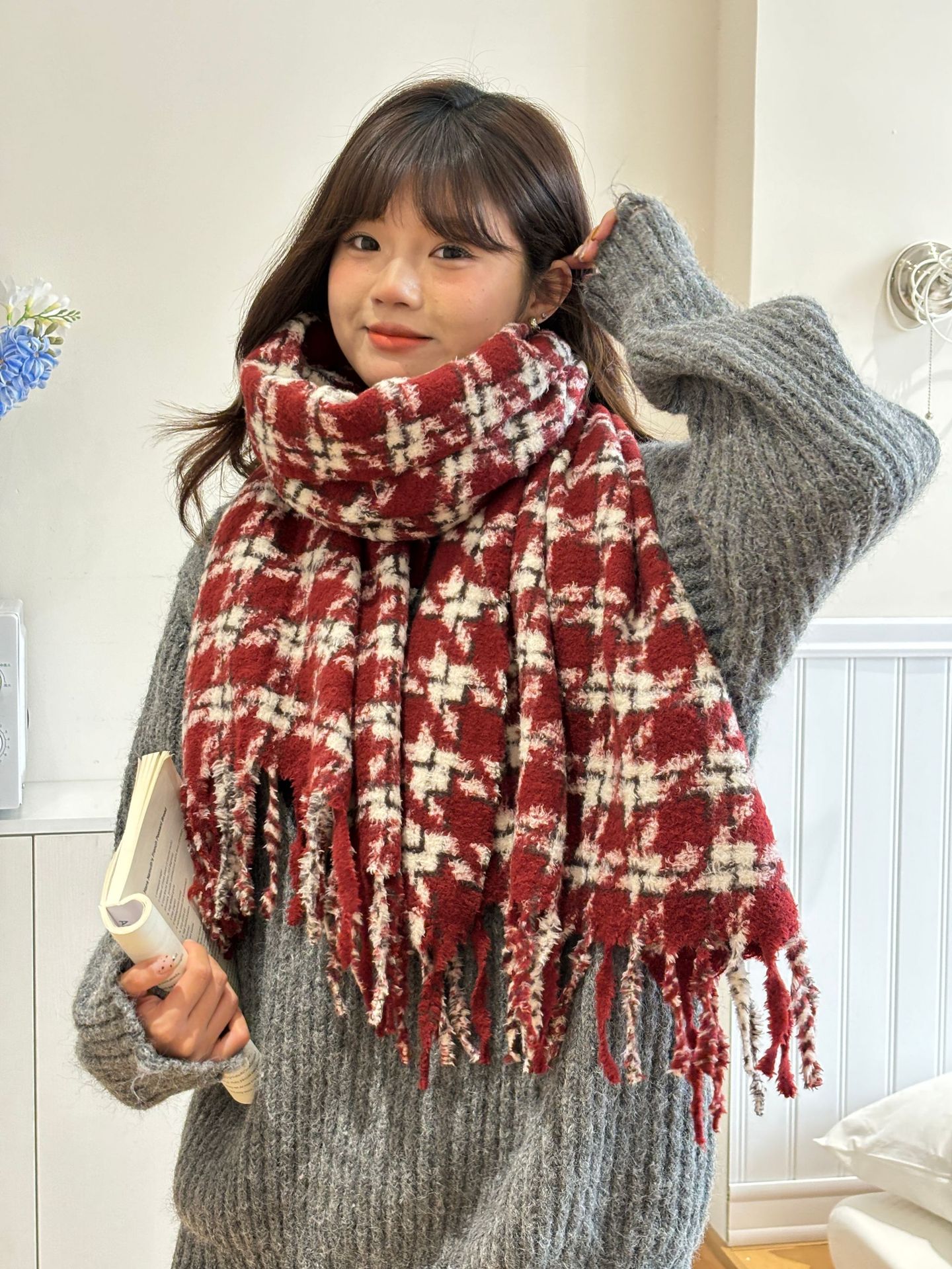 우유 벨벳 두꺼운 따뜻한 학생 모방 캐시미어 하운스투스 스카프 여성의 긴 가을과 겨울 한국 새 스타일스토어 가기