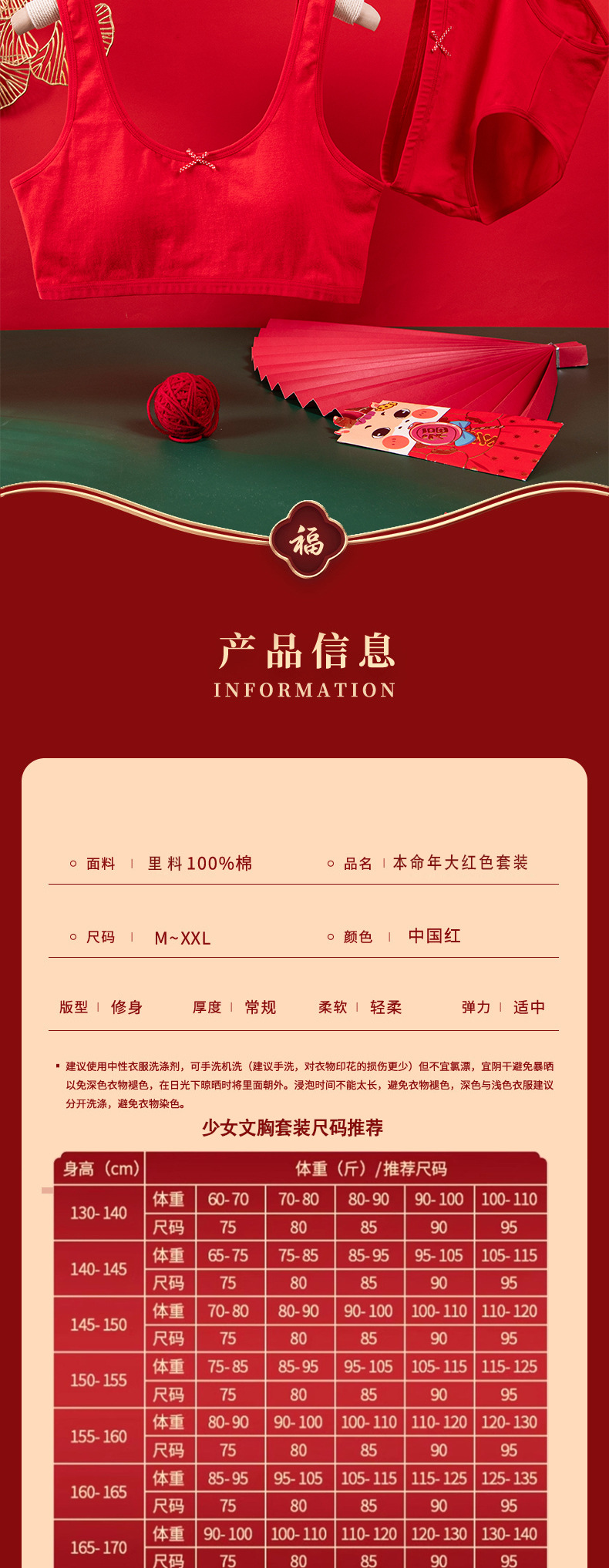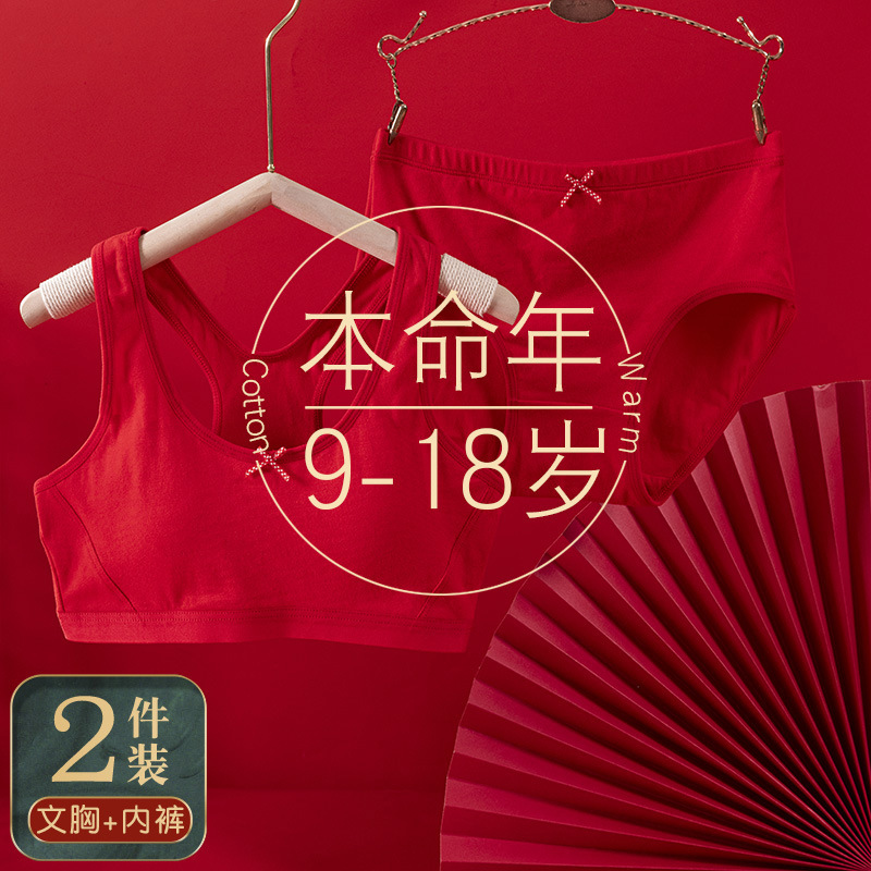빅 레드 2025 년 스네이크 걸 레드 벤밍니 안티 범프 편안한 코튼 조끼 학생 브라 반바지 조합
