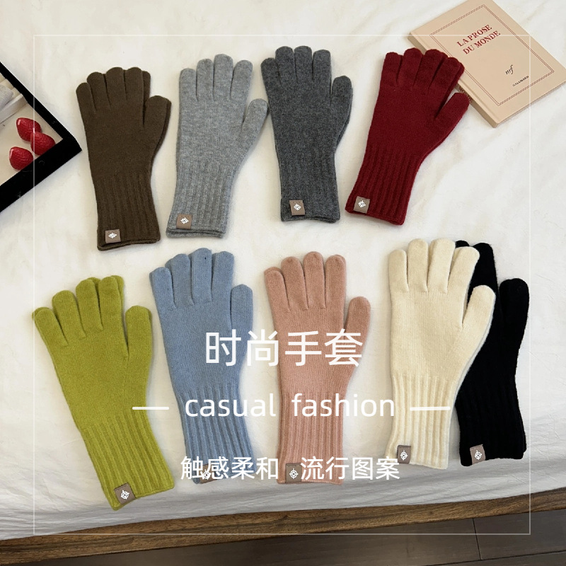 한국 동대문 양모 개복 여성 겨울 따뜻한 솔리드 컬러 올매치 터치스크린 다섯 손가락 장갑