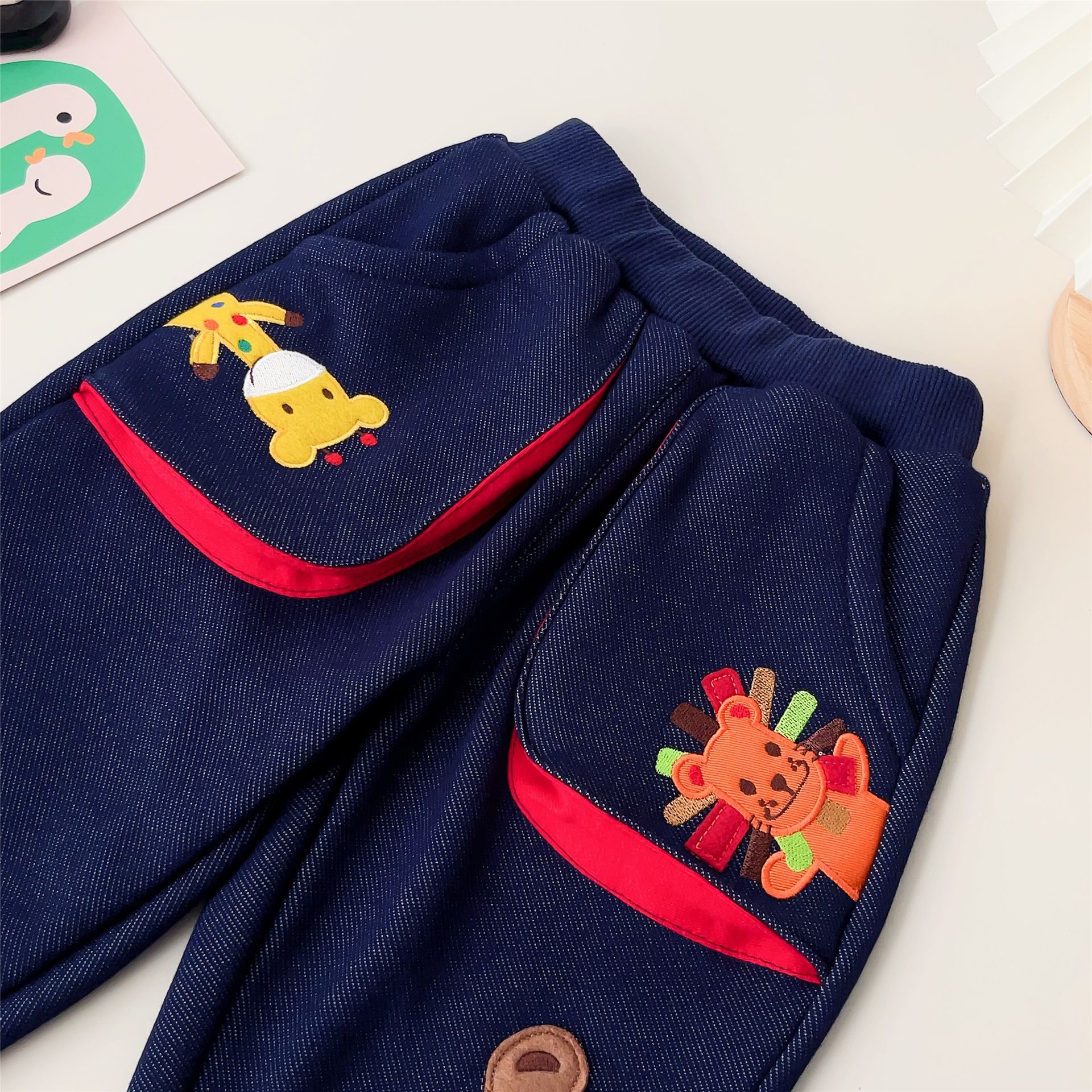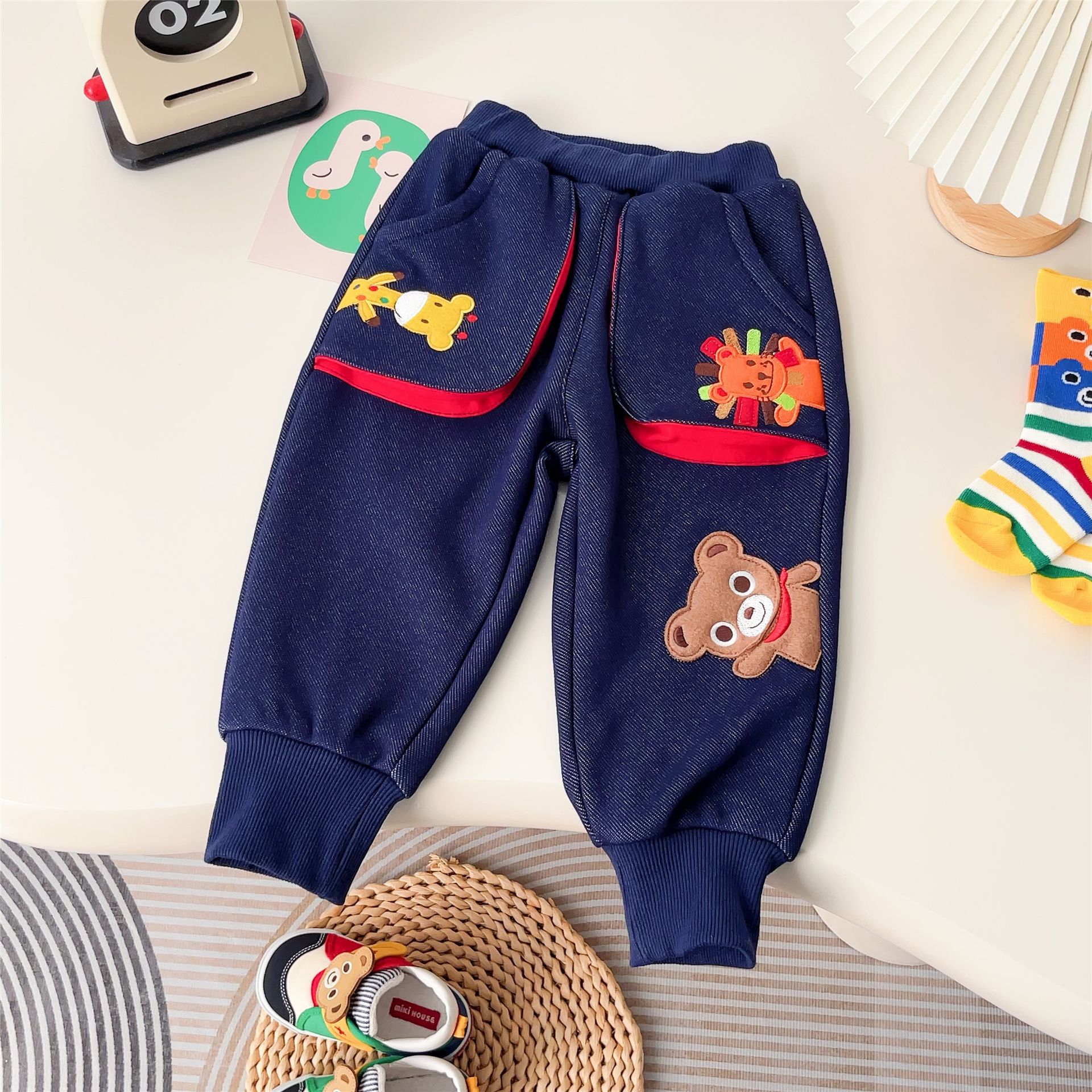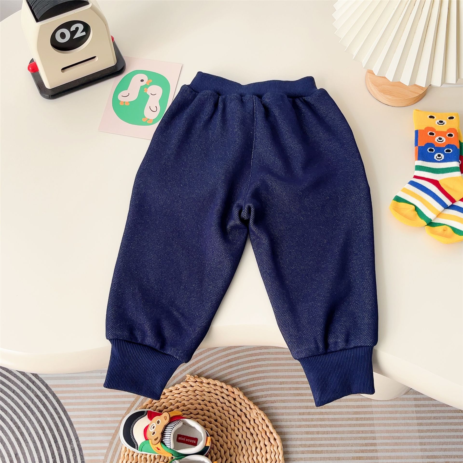 일본 어린이 모조 데님 캐시미어 바지 24 겨울 새 소년 소녀 3 차원 포켓 부드러운 데님 따뜻한 바지 6070스토어 가기