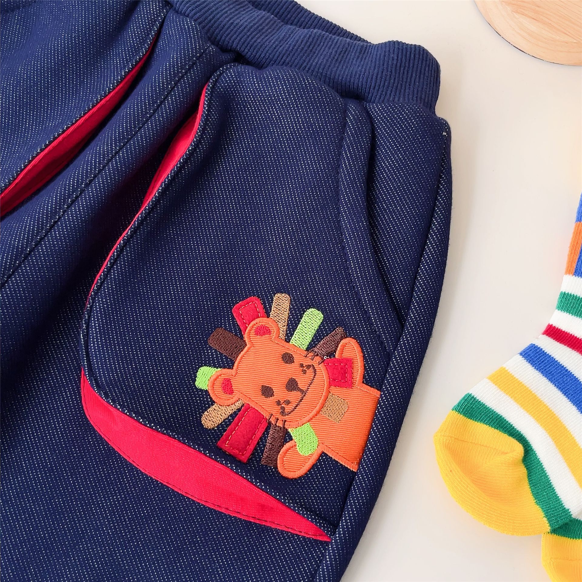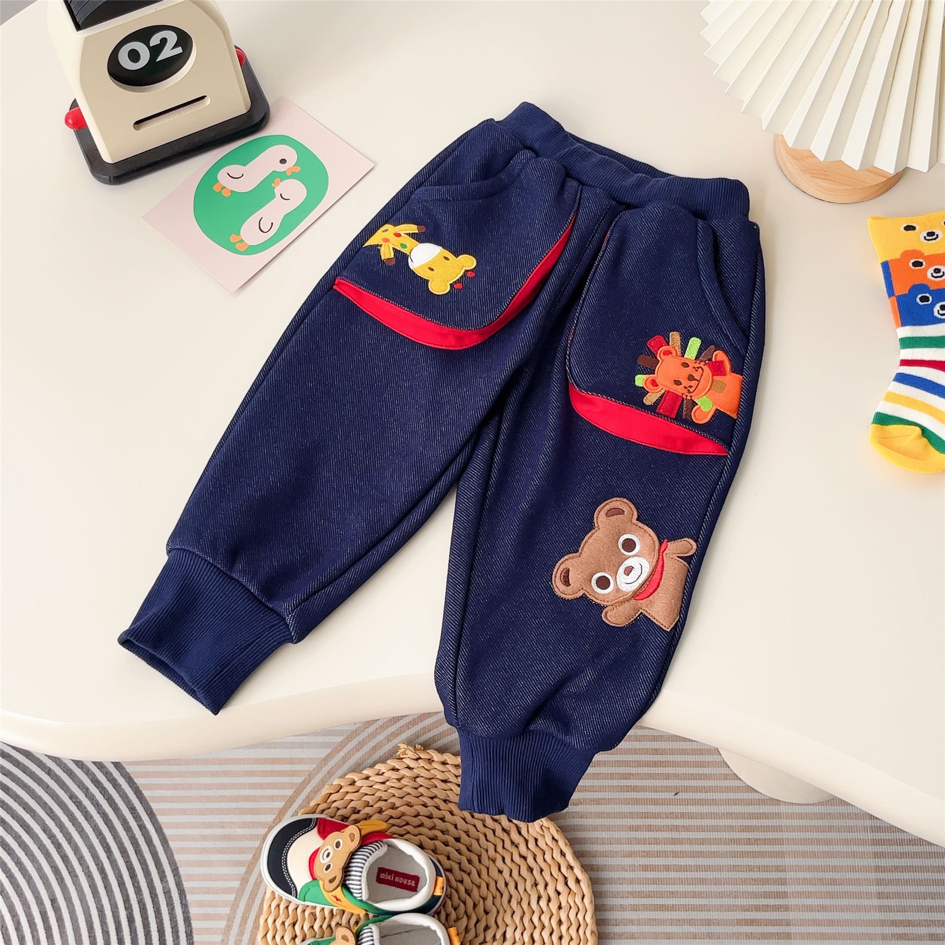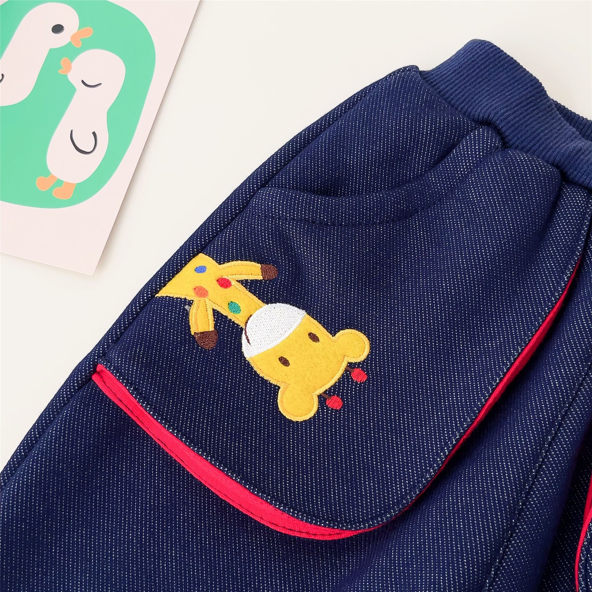 일본 어린이 모조 데님 캐시미어 바지 24 겨울 새 소년 소녀 3 차원 포켓 부드러운 데님 따뜻한 바지 6070스토어 가기