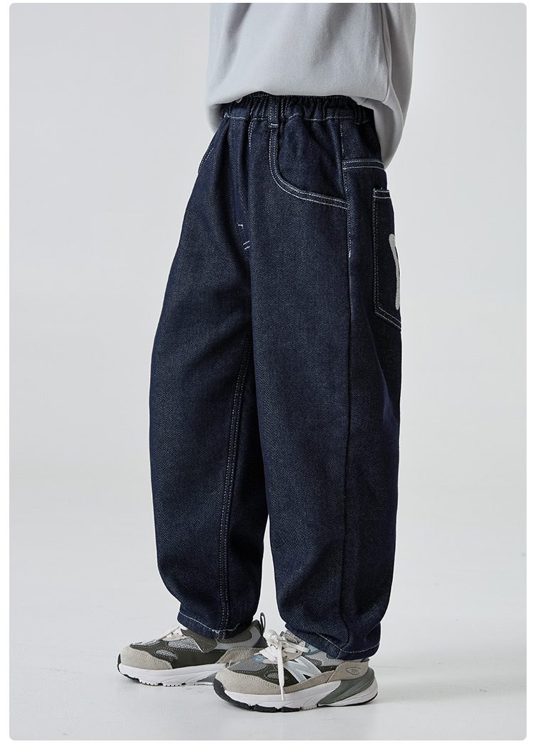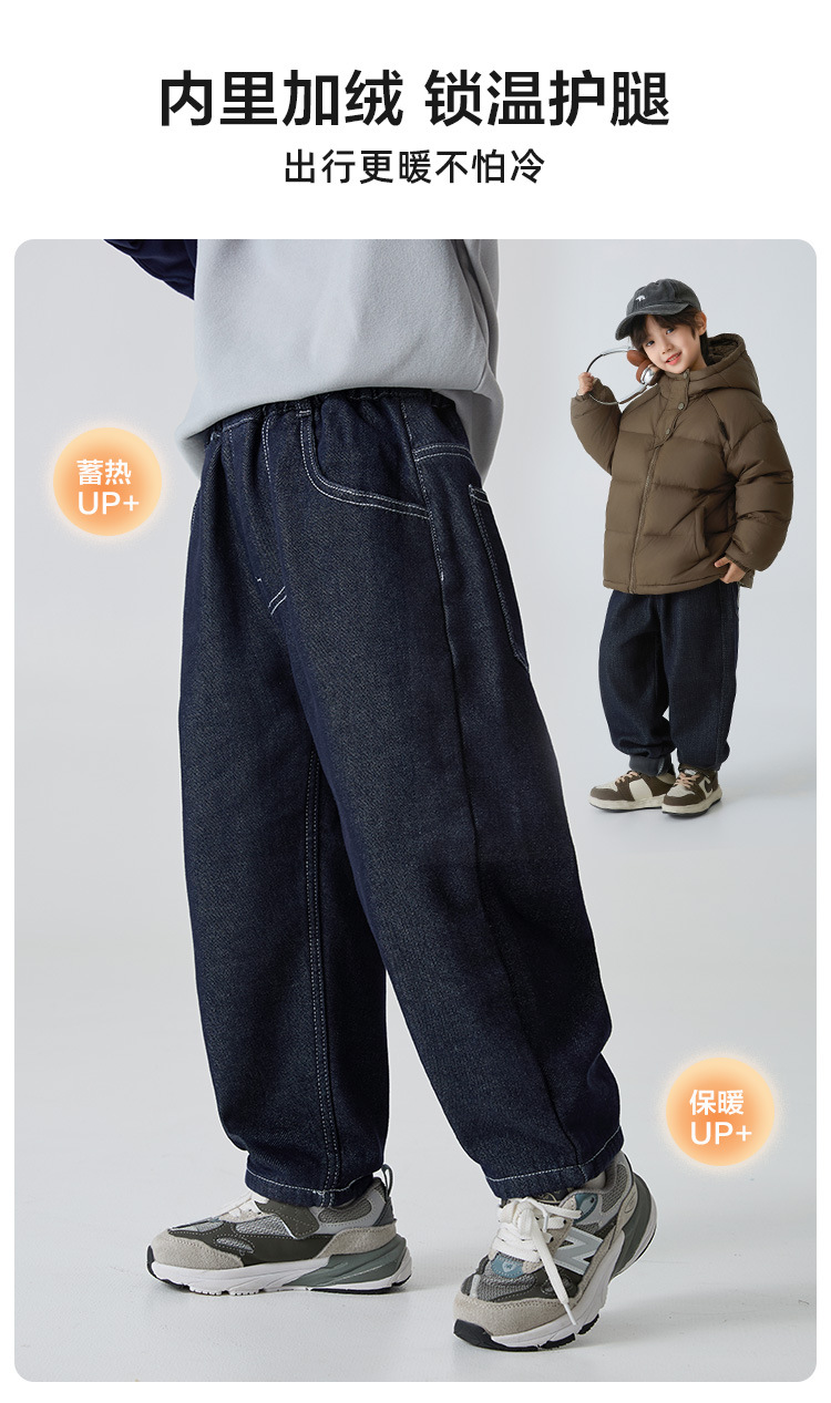 해마가족 아동복 2025 겨울 신상 남아 트렌디 브랜드 기모 데님 팬츠 스타일리쉬 겨울옷 두꺼운 바지 루즈핏