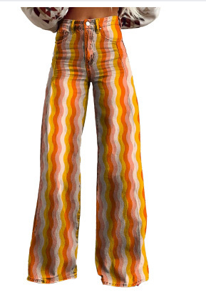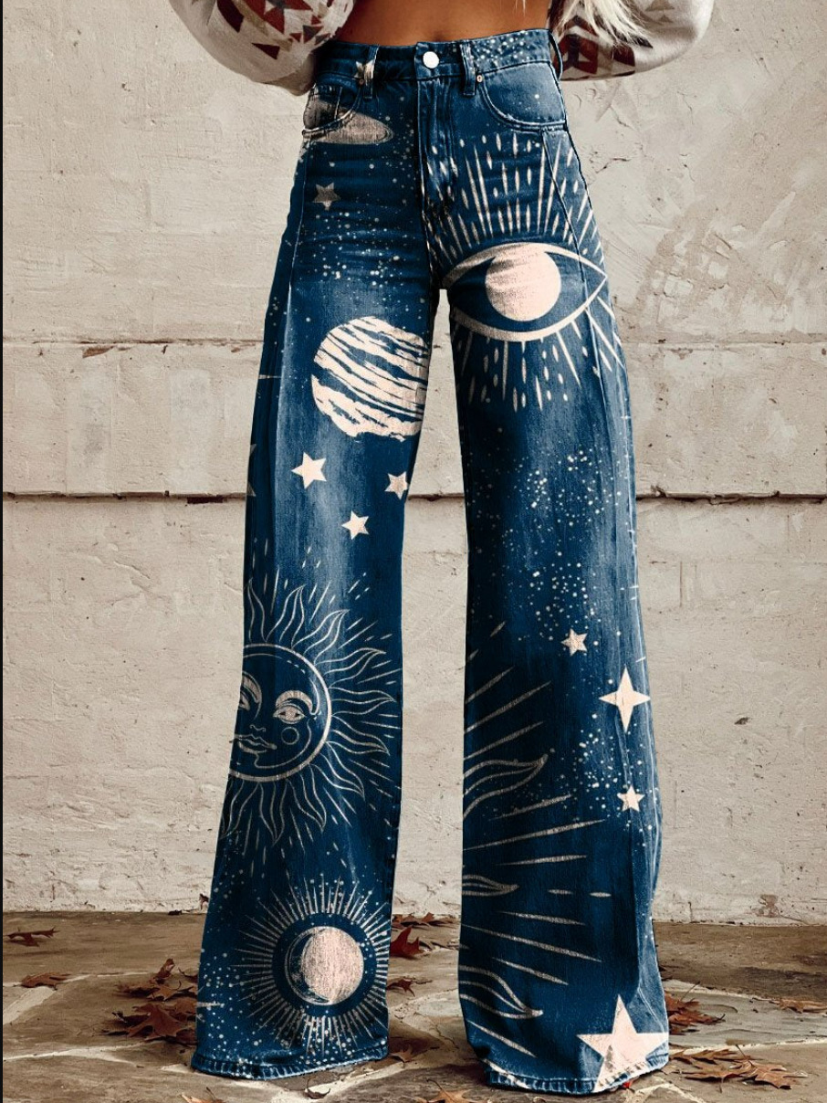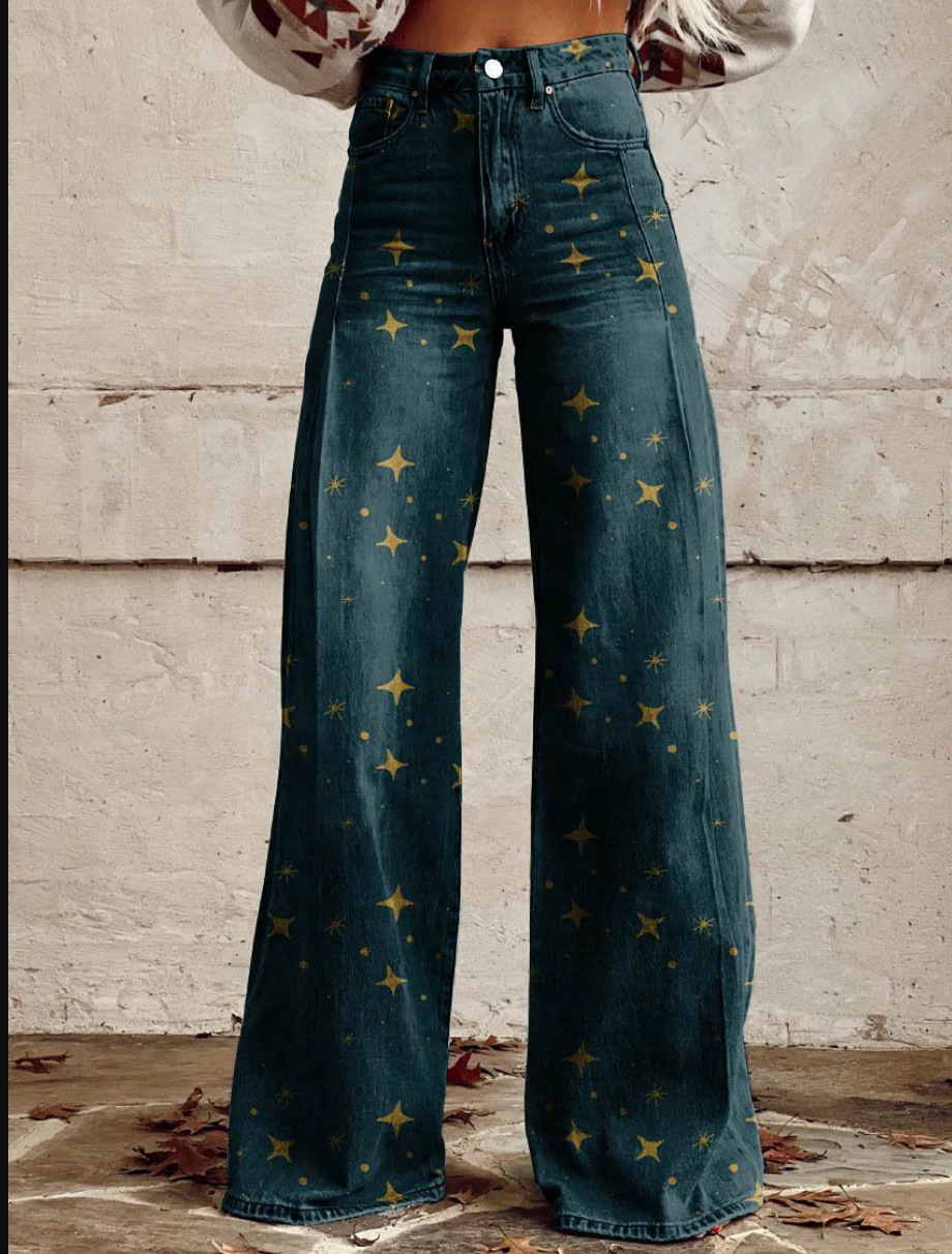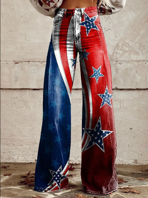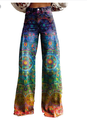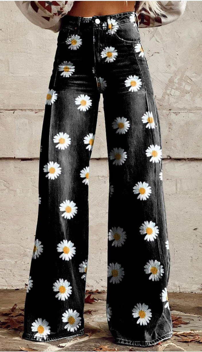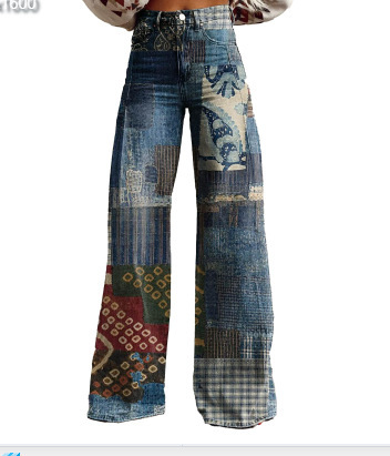 대외 무역 플러스 사이즈 여성 넓은 다리 바지 새로운 3D 열 전송 벨 바지 시뮬레이션 데님 바지 여름 얇은스토어 가기