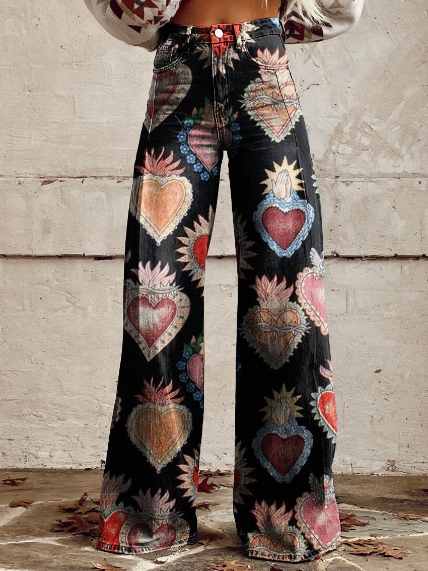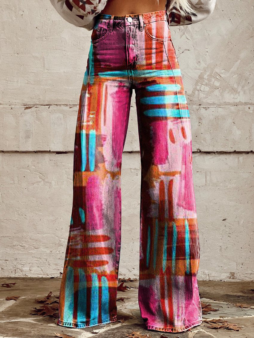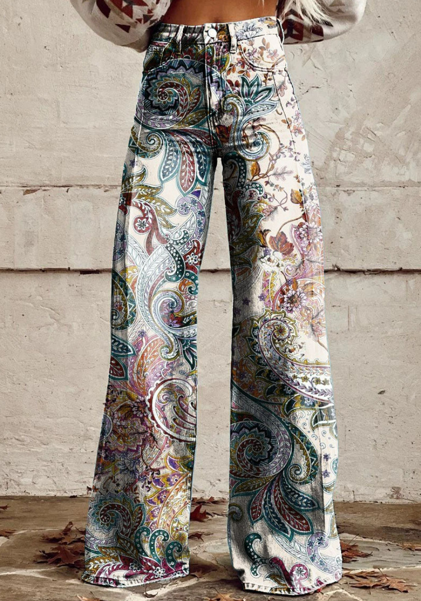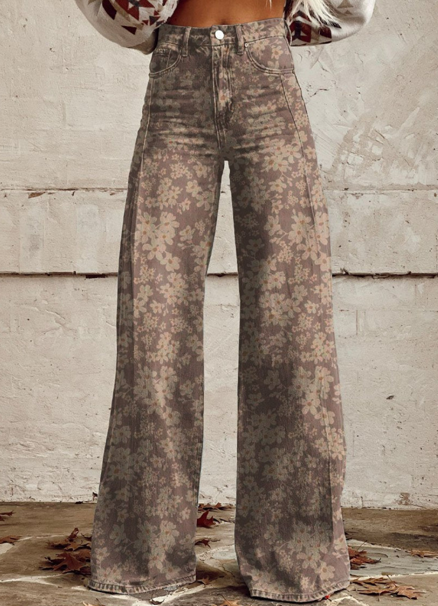 대외 무역 플러스 사이즈 여성 넓은 다리 바지 새로운 3D 열 전송 벨 바지 시뮬레이션 데님 바지 여름 얇은스토어 가기