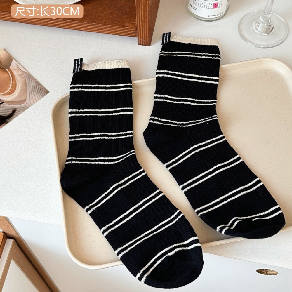 • 2#흰색 줄무늬 - 검정색 양말