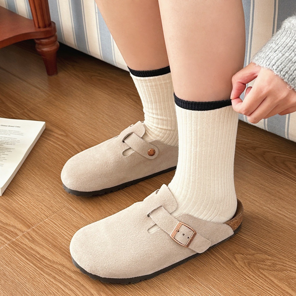 한국 조커 미드 튜브 코튼 양말 바람 귀여운 자수 단색 AB 웃는 얼굴 더미 양말 가을 스타킹 도매