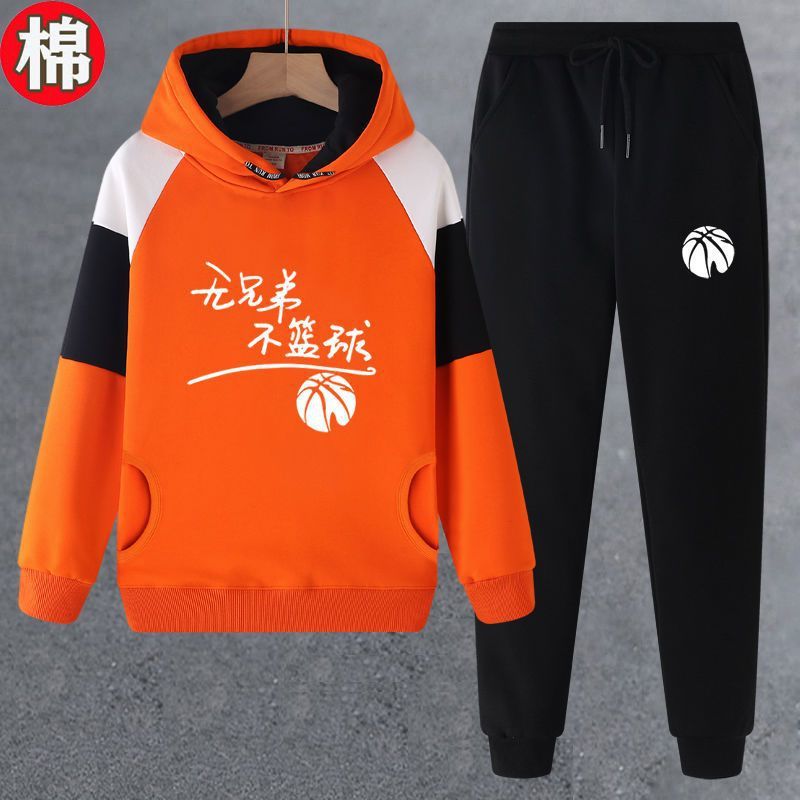 • 벨벳 없음, 주황색 재킷과 검은색 바지, 패치워크 스타일 농구 브라더스