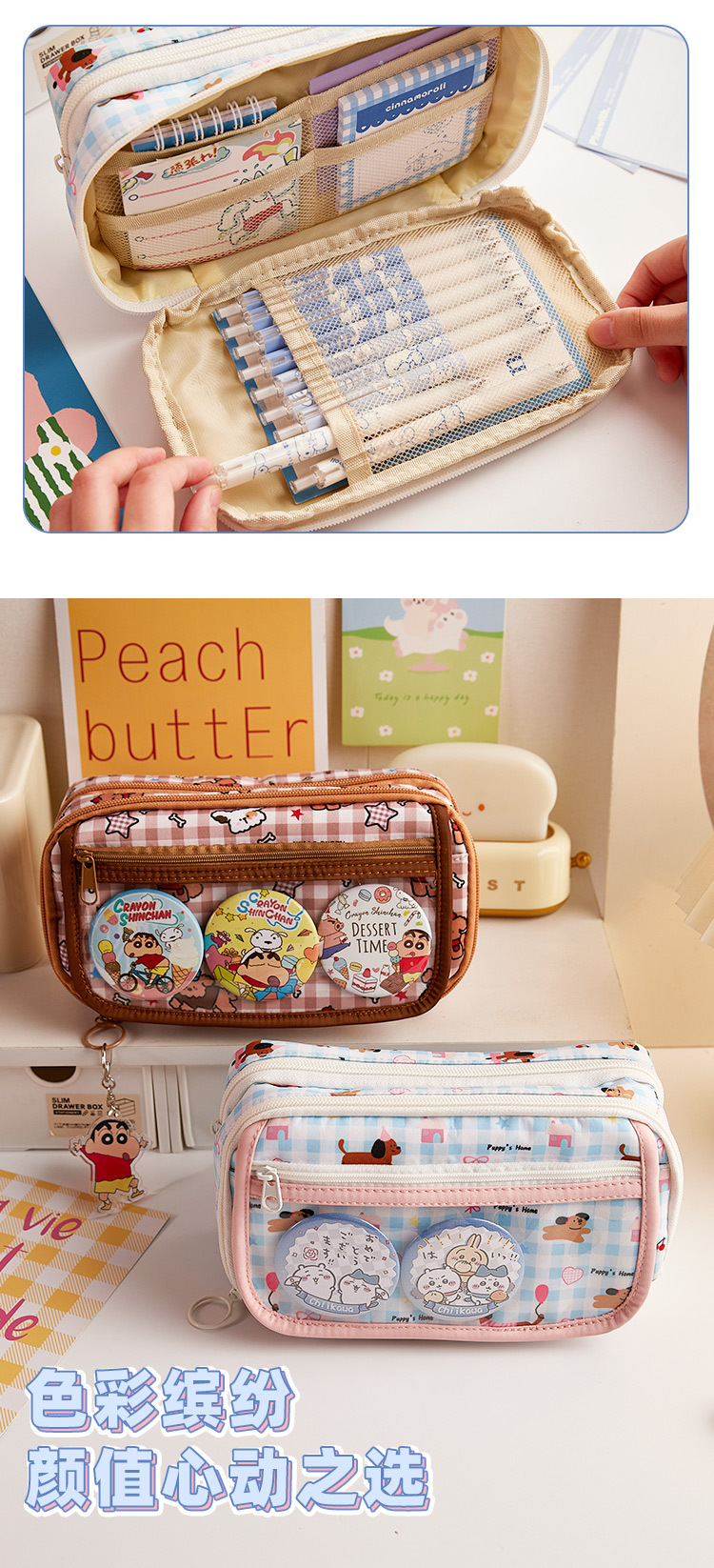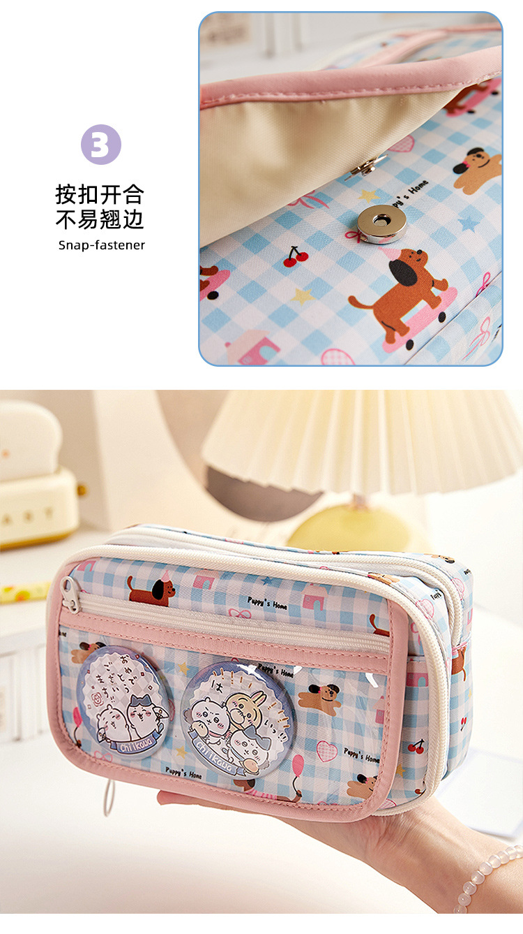 만화 귀여운 대용량 연필 가방 다층 멀티 그리드 디자인 연필 가방 초등학교 학생의 문구 보관 가방
