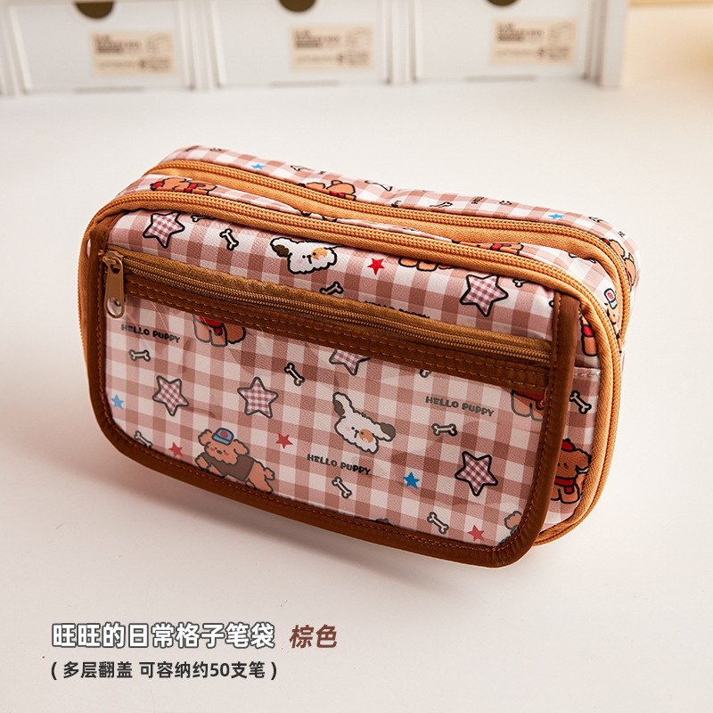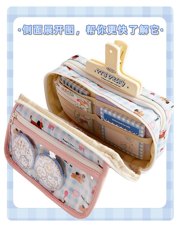 만화 귀여운 대용량 연필 가방 다층 멀티 그리드 디자인 연필 가방 초등학교 학생의 문구 보관 가방스토어 가기