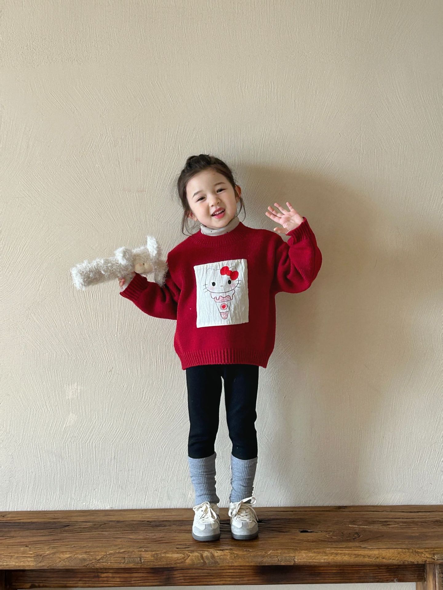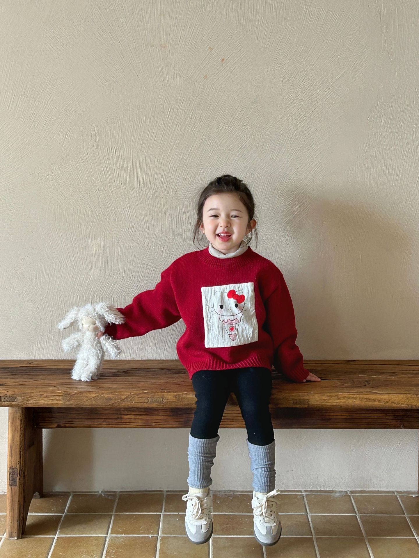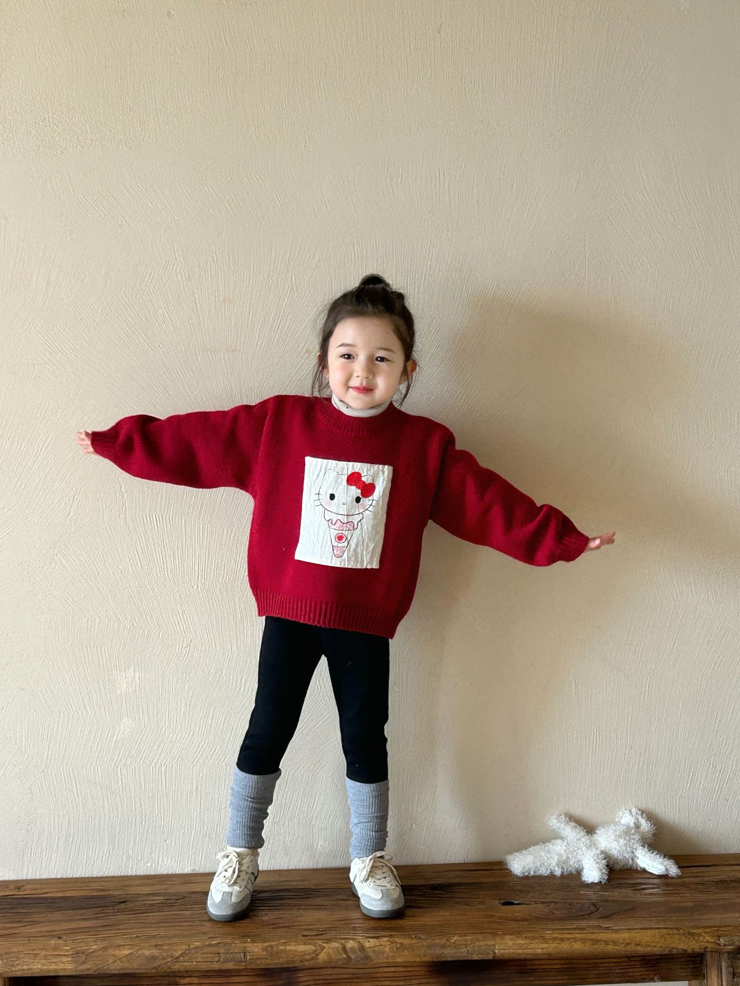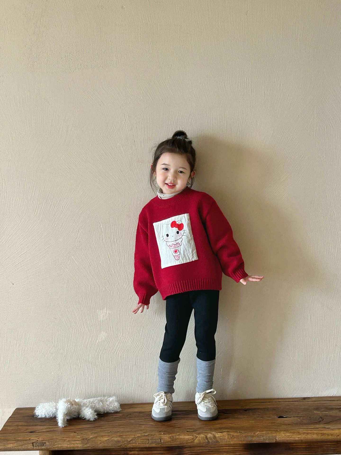 2024 겨울 새로운 한국 아동복 소녀 두꺼운 둥근 목 스웨터 아기 만화 패치 스웨터스토어 가기