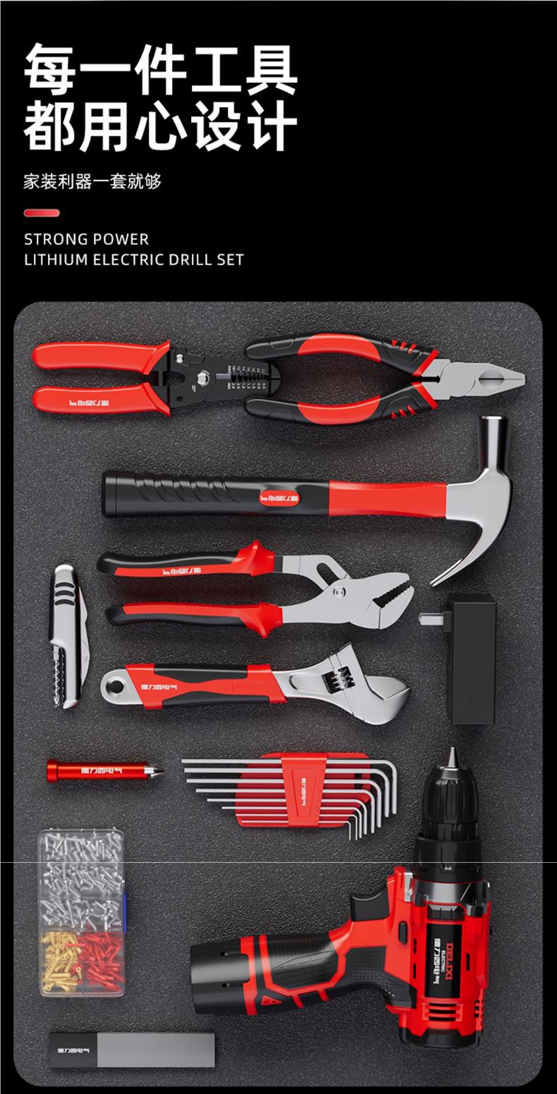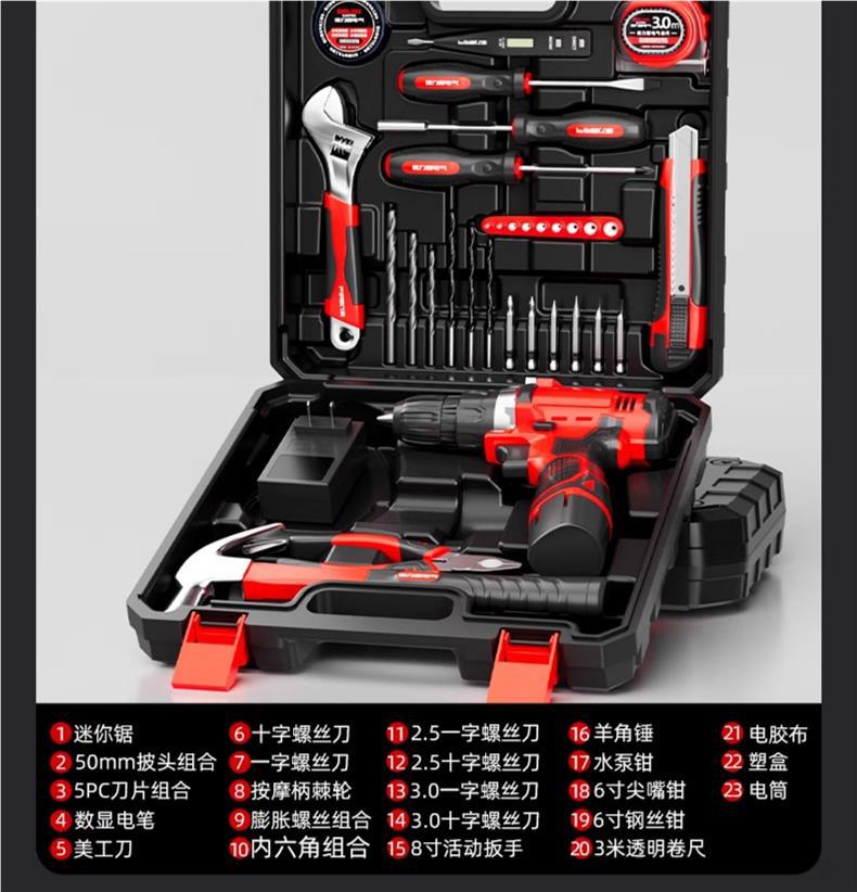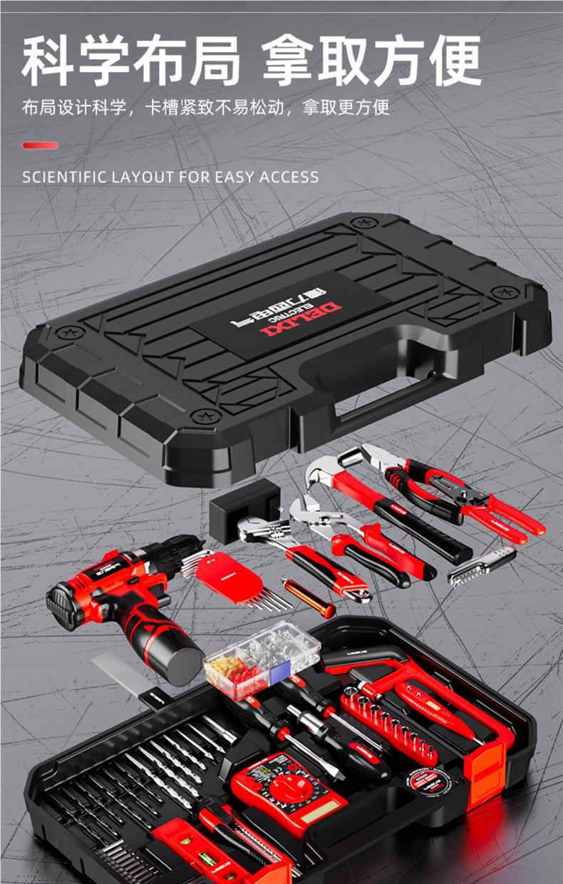• Delixi Electric-리튬 전기 드릴(듀얼 배터리) 홈 데코레이션 럭셔리 136개 세트