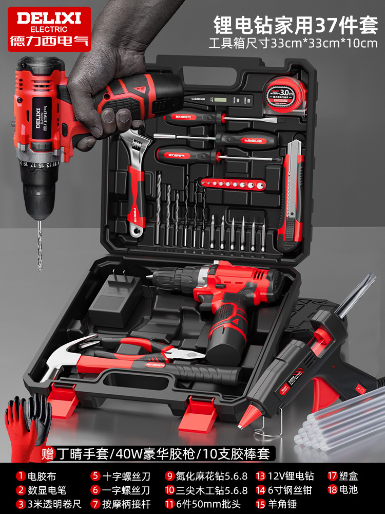 Delixi 전기 도구 세트 리튬 전기 드릴 도구 가정용 하드웨어 전기 목공 특수 유지 보수 키트 추스토어 가기