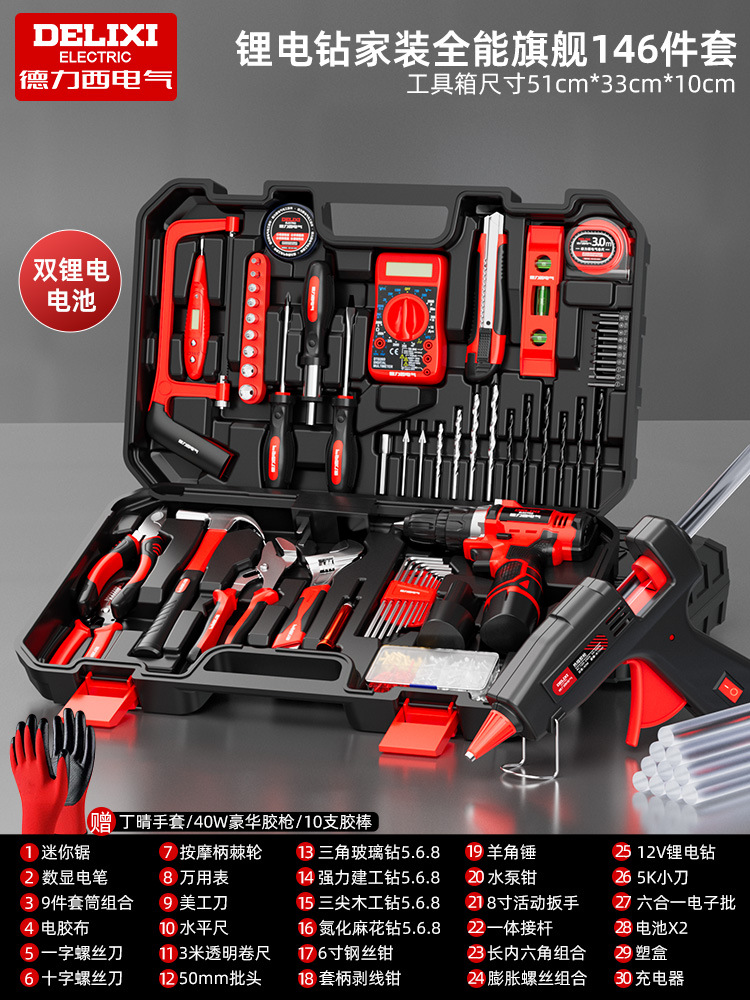 • Delixi Electric-리튬 전기 드릴 플래그십 만능 135개 세트