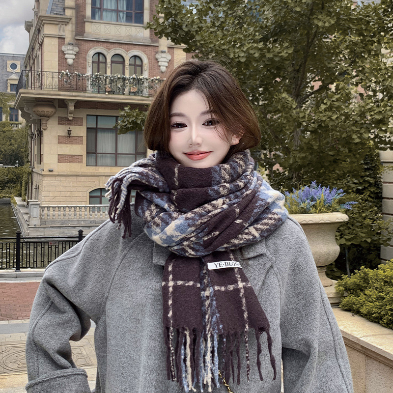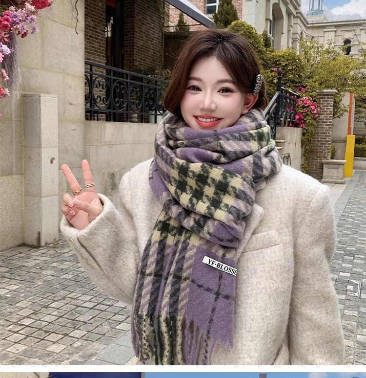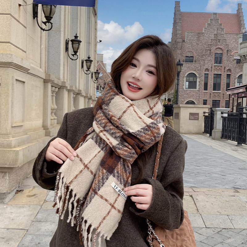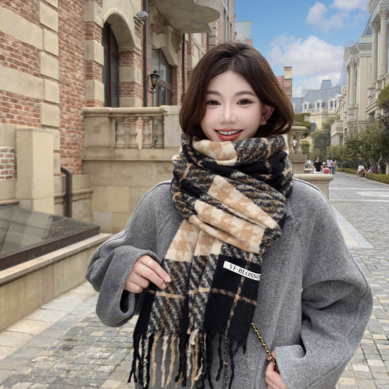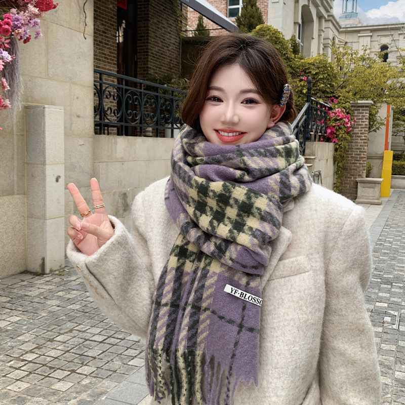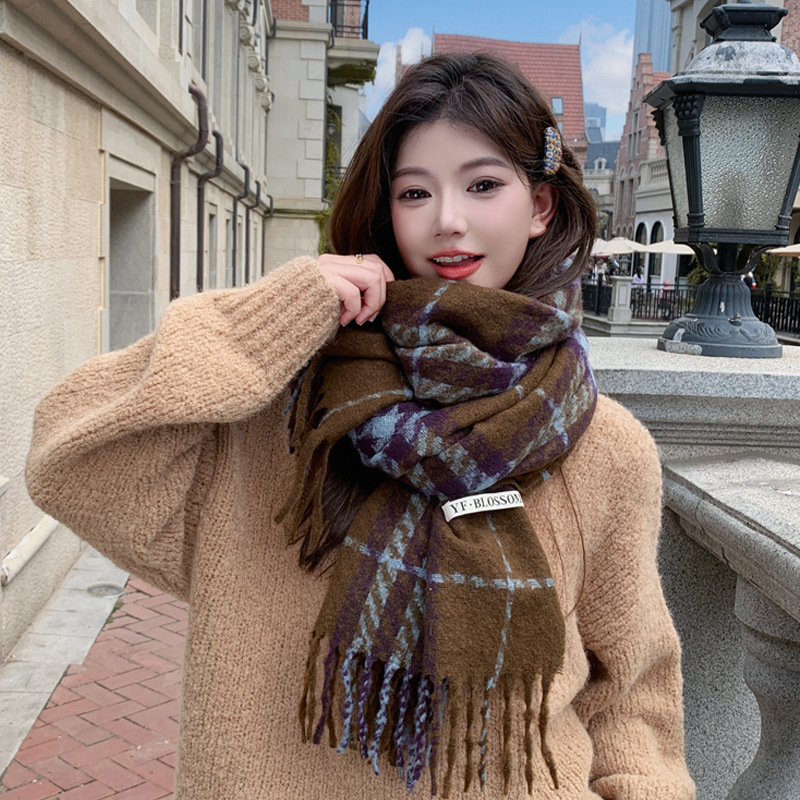 한국식 하이 엔드 레트로 롱 컬러 매칭 체크 무늬 스카프 여자 올 매치 커플의 스카프 학생들을위한 따뜻한 두꺼운 목도리