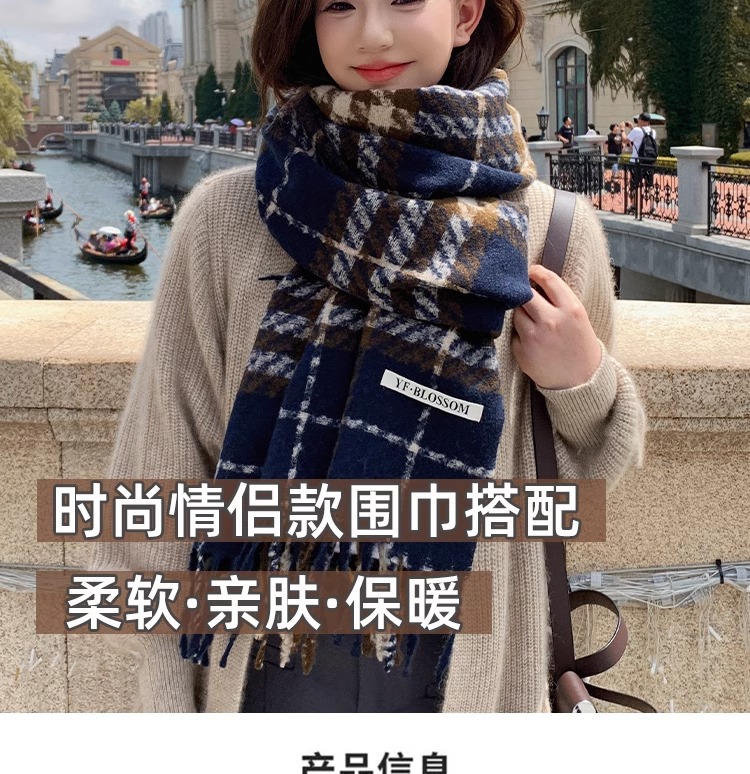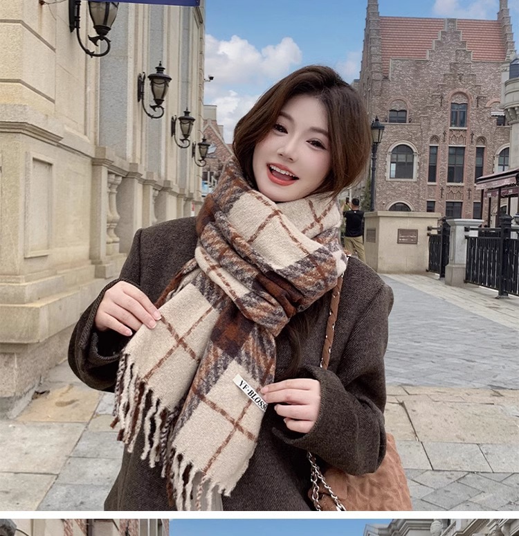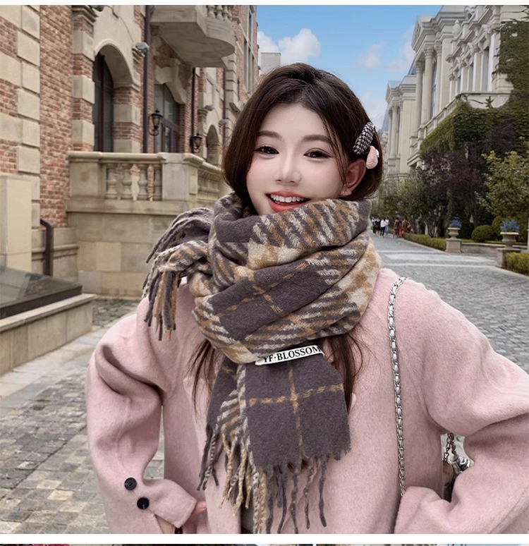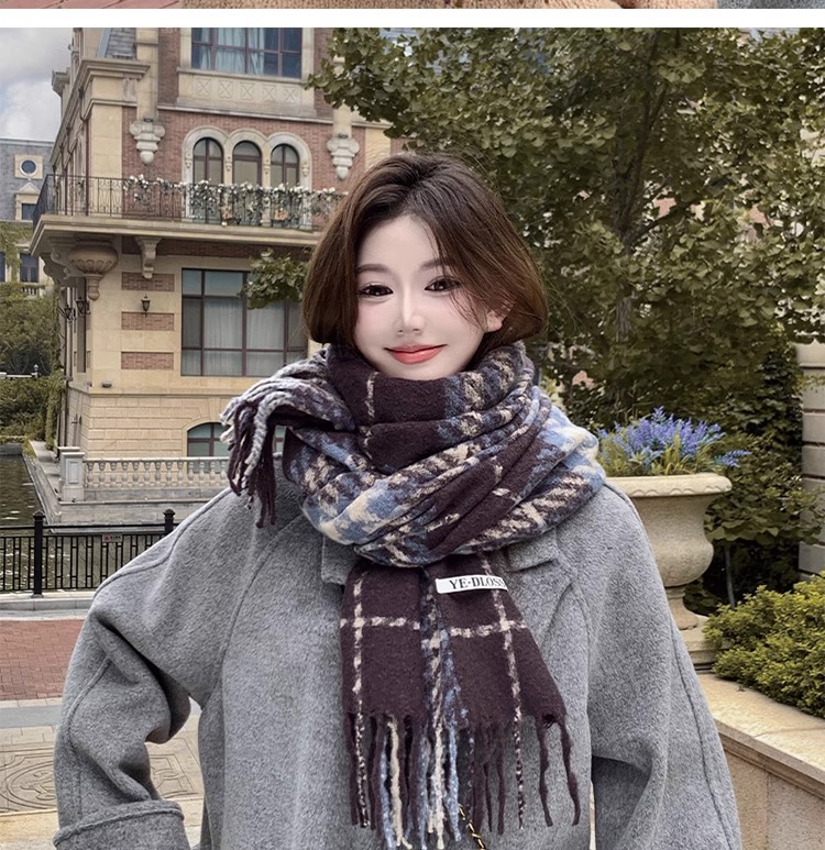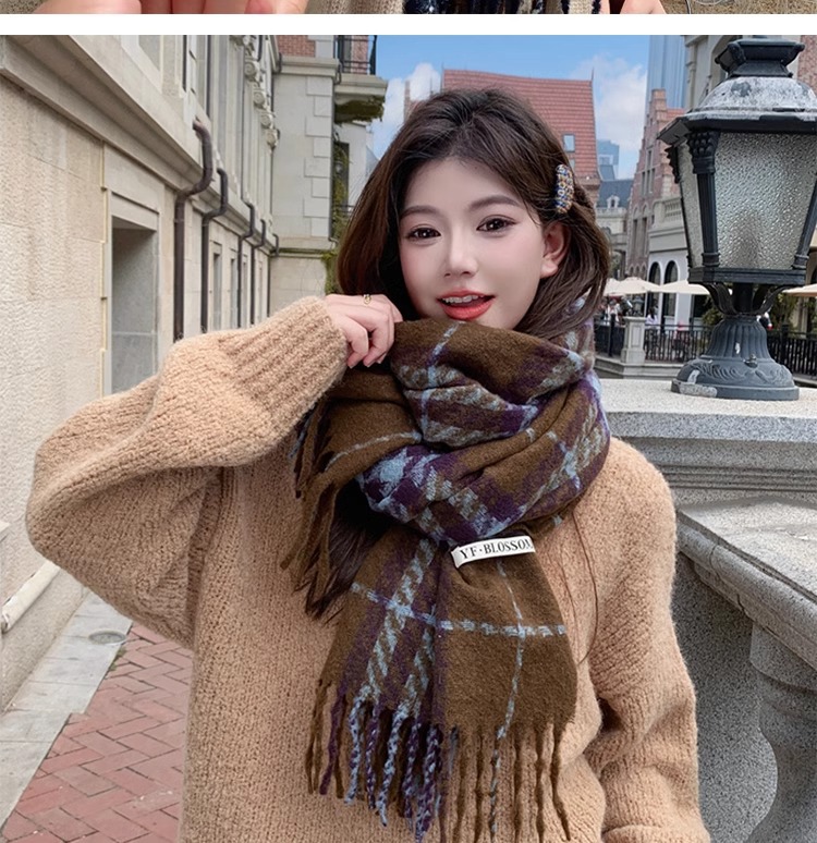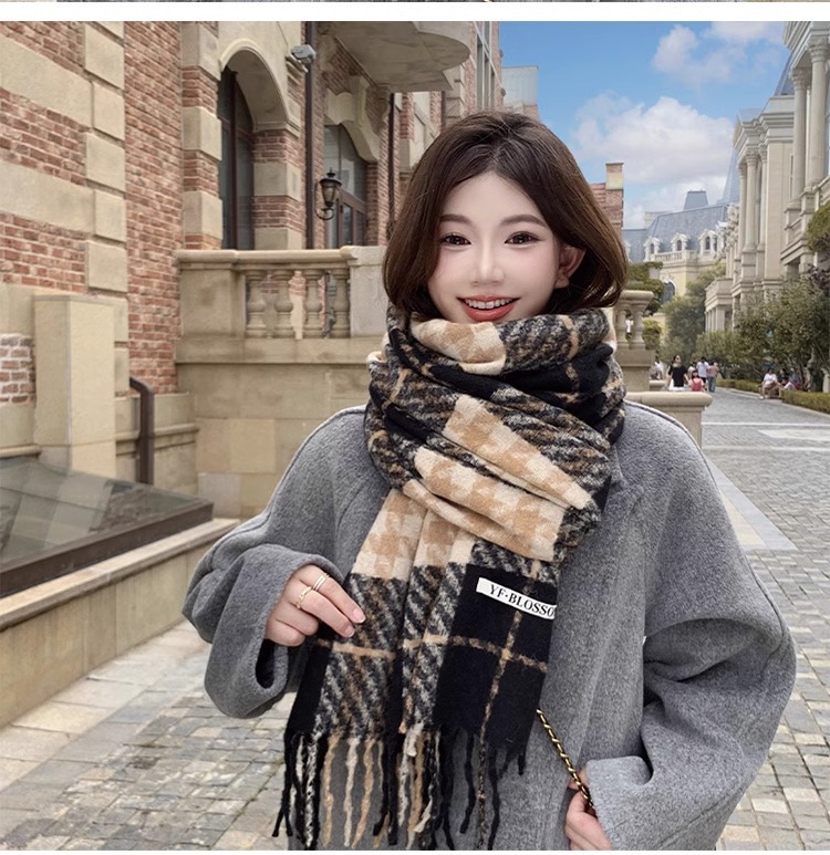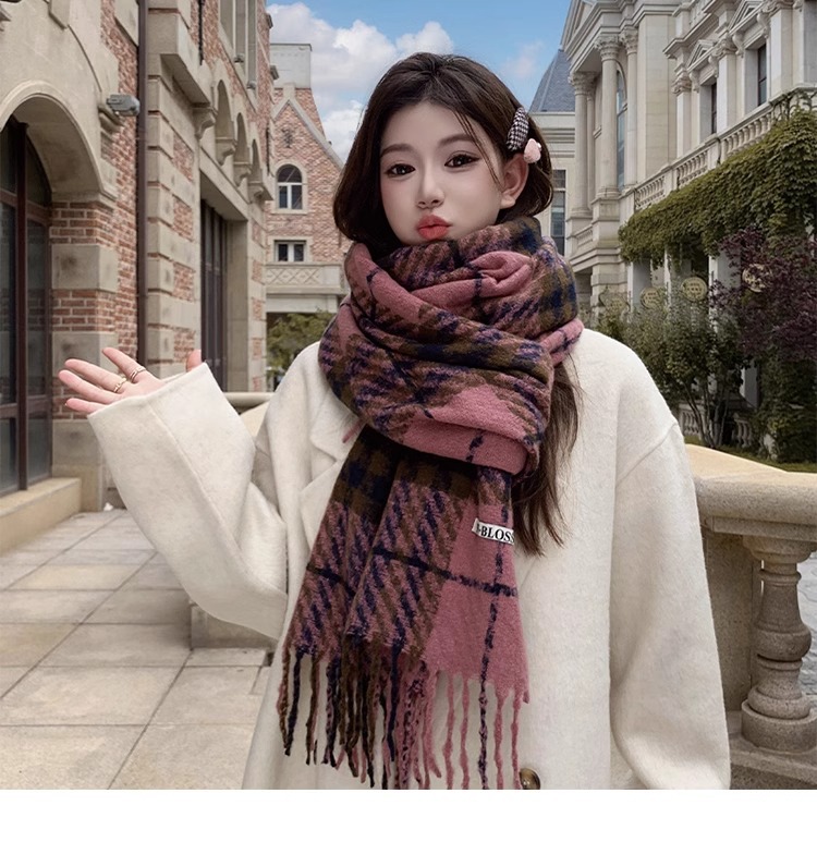 한국식 하이 엔드 레트로 롱 컬러 매칭 체크 무늬 스카프 여자 올 매치 커플의 스카프 학생들을위한 따뜻한 두꺼운 목도리