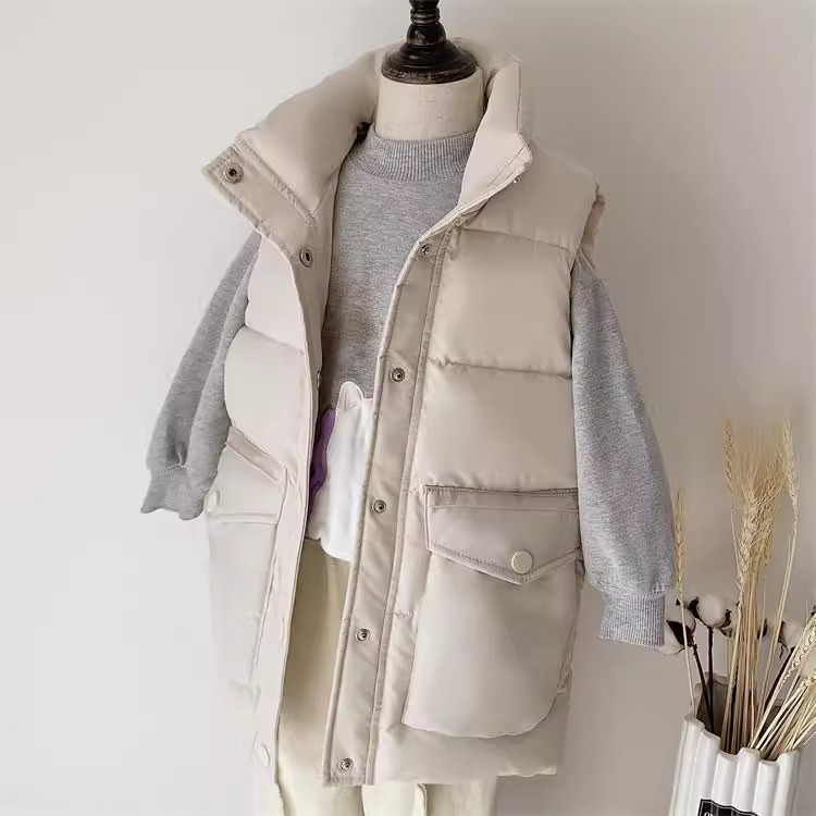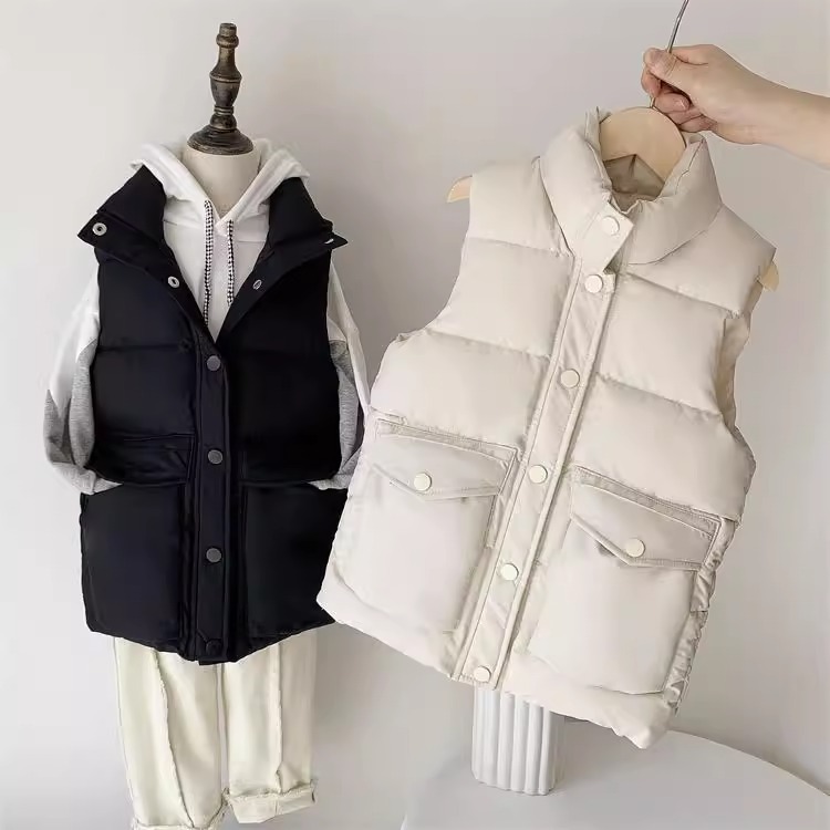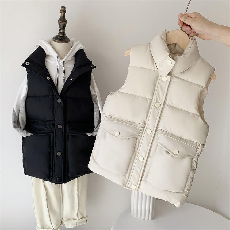 다운 코튼 조끼 짧은 칼라 캐주얼 남성 및 여성 아동복 면화 패딩 코트 트렌디 아우터 웨어
