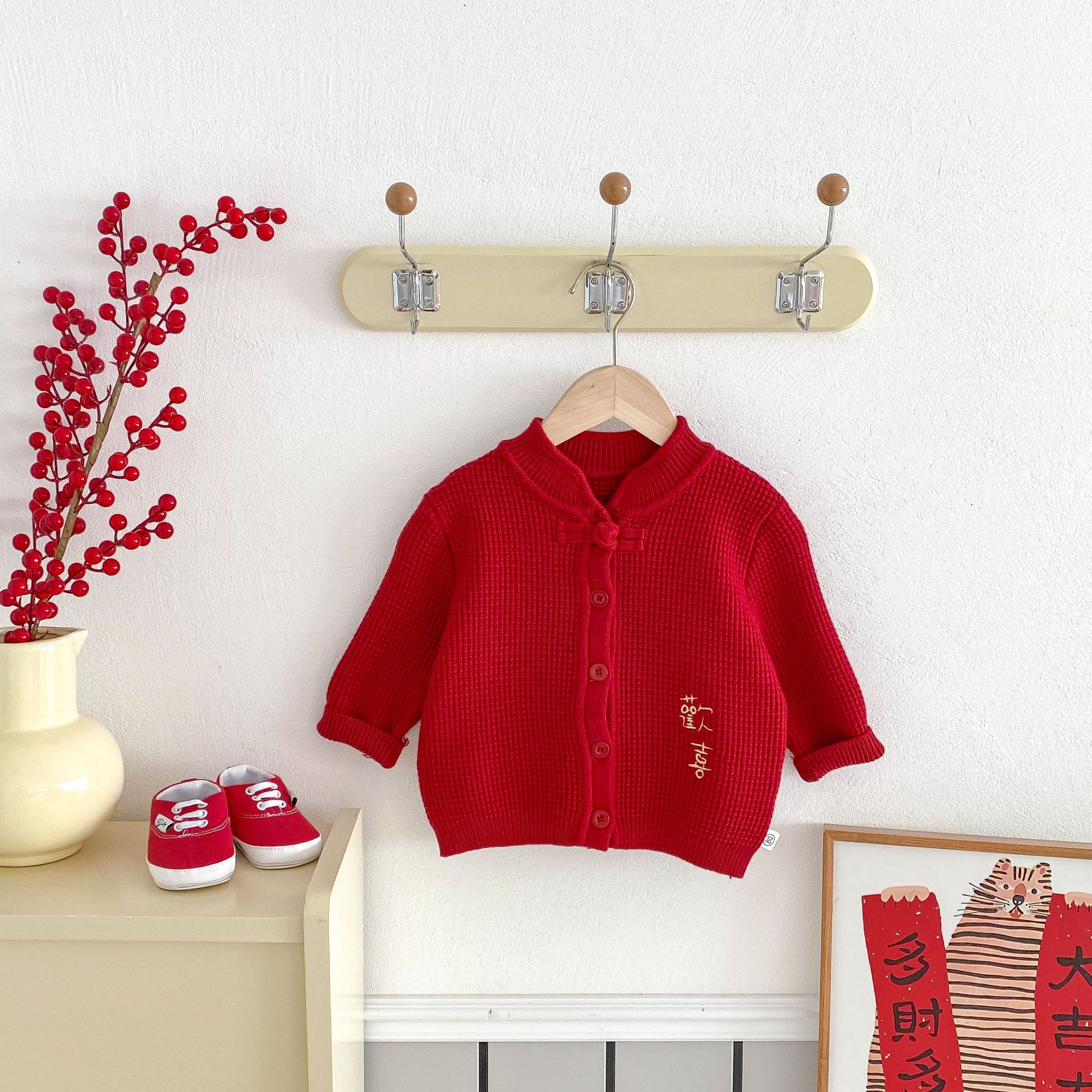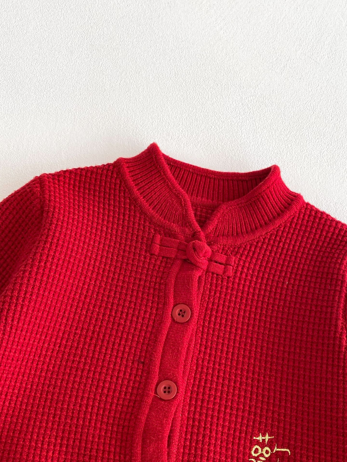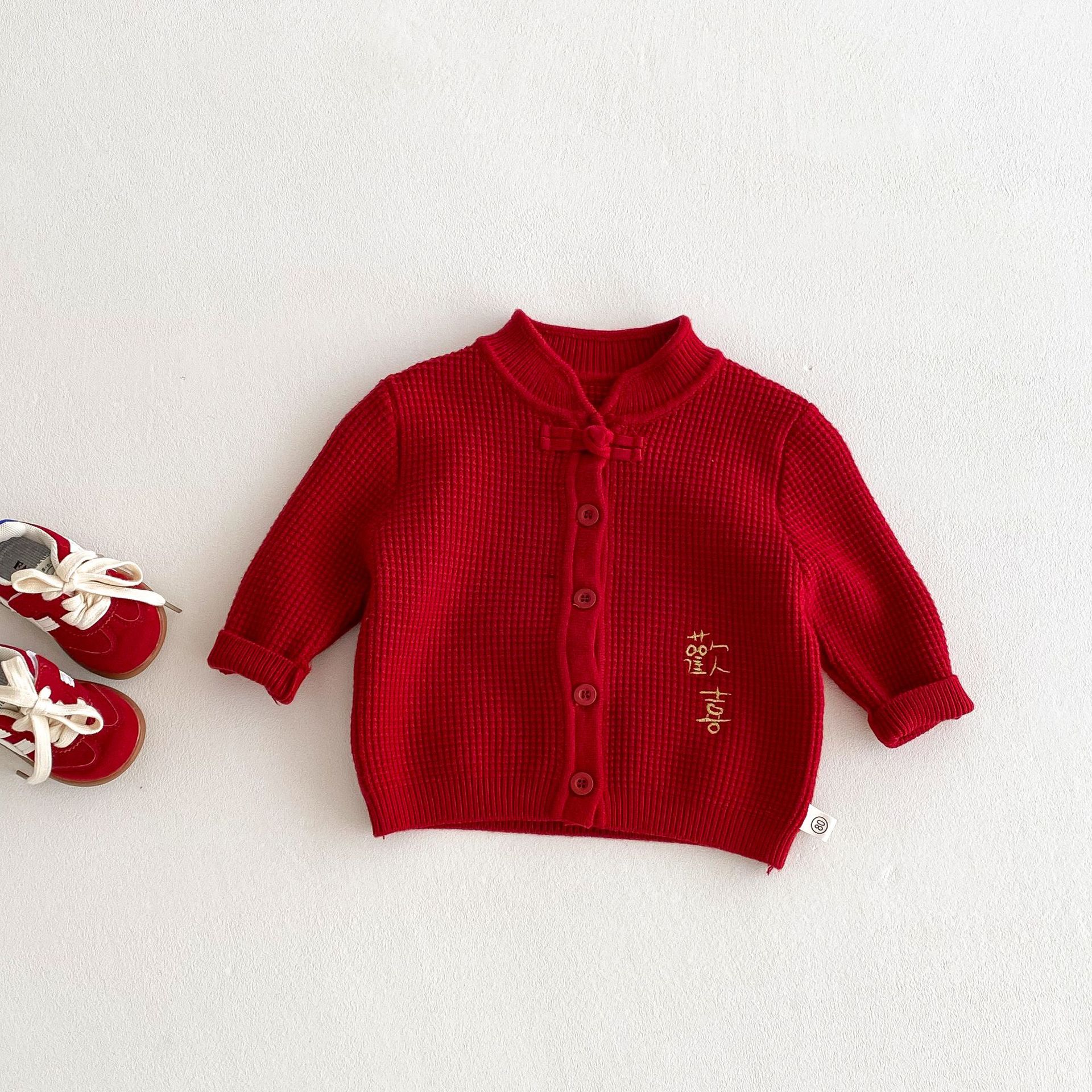 아기 신년 의류 빨간 두꺼운 니트 스웨터 카디건 재킷 유니섹스 아기 신년 의류 올매치 탑 해피 의류스토어 가기