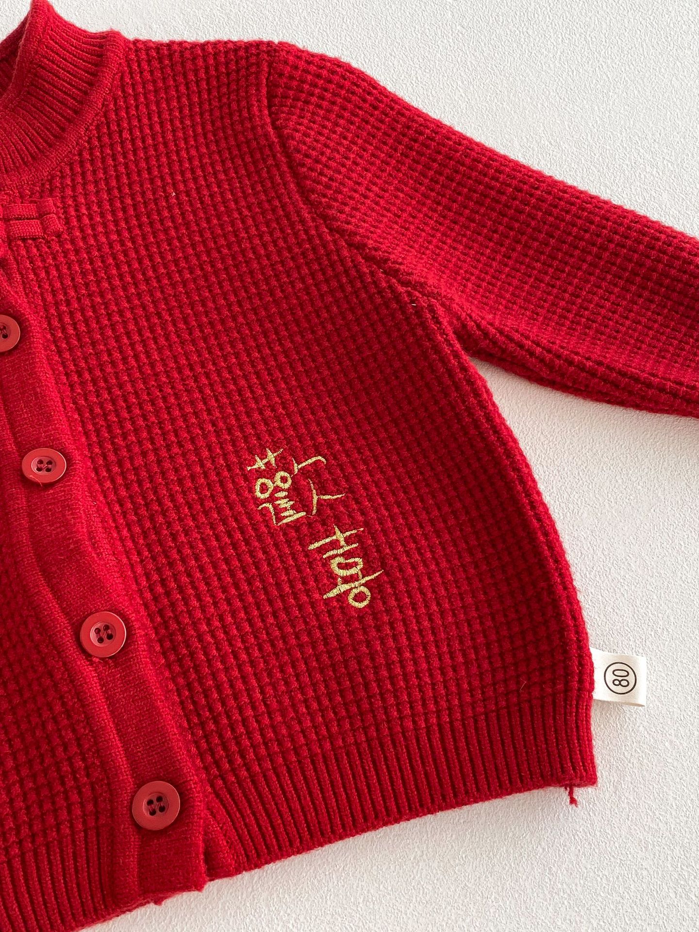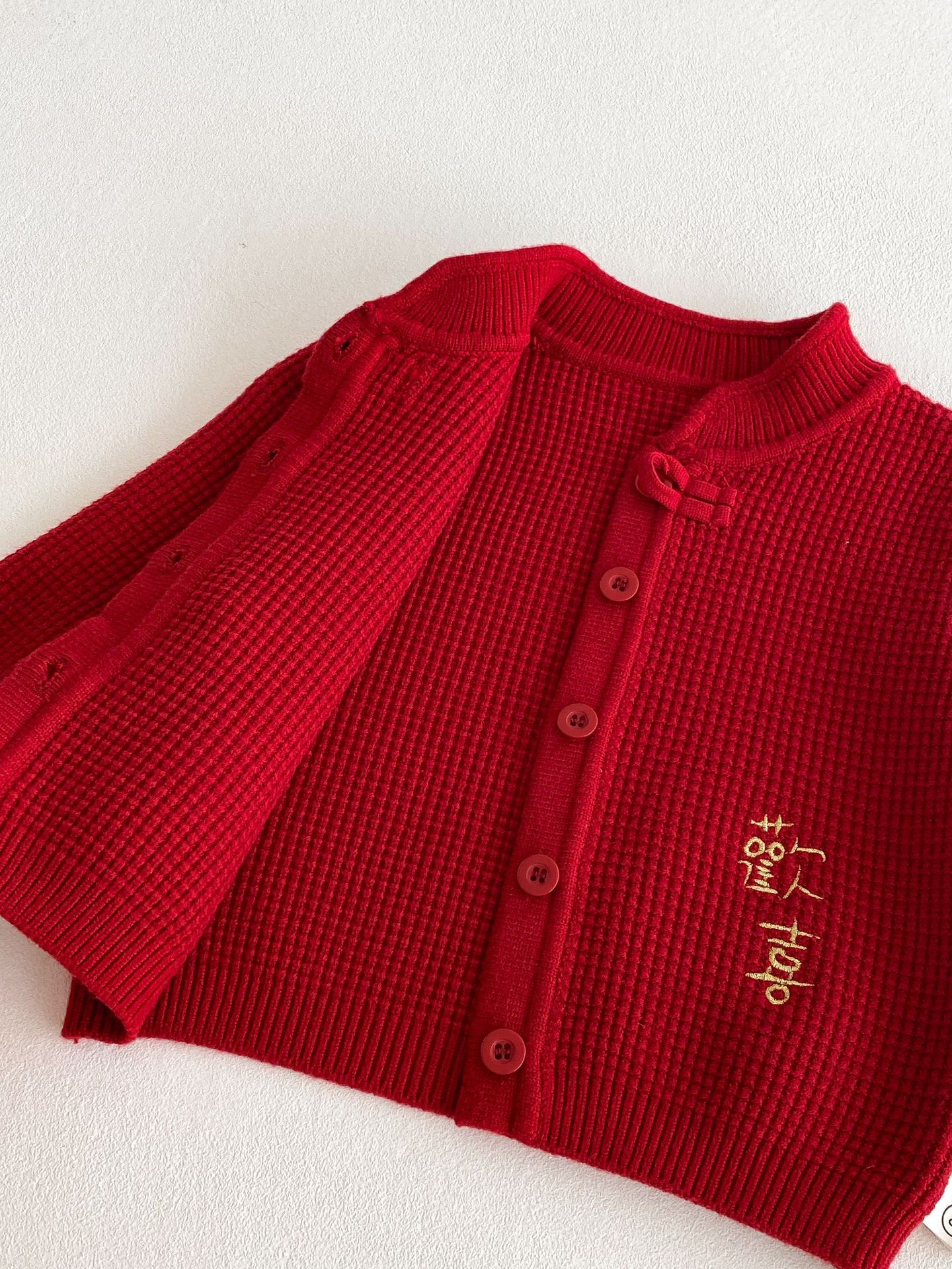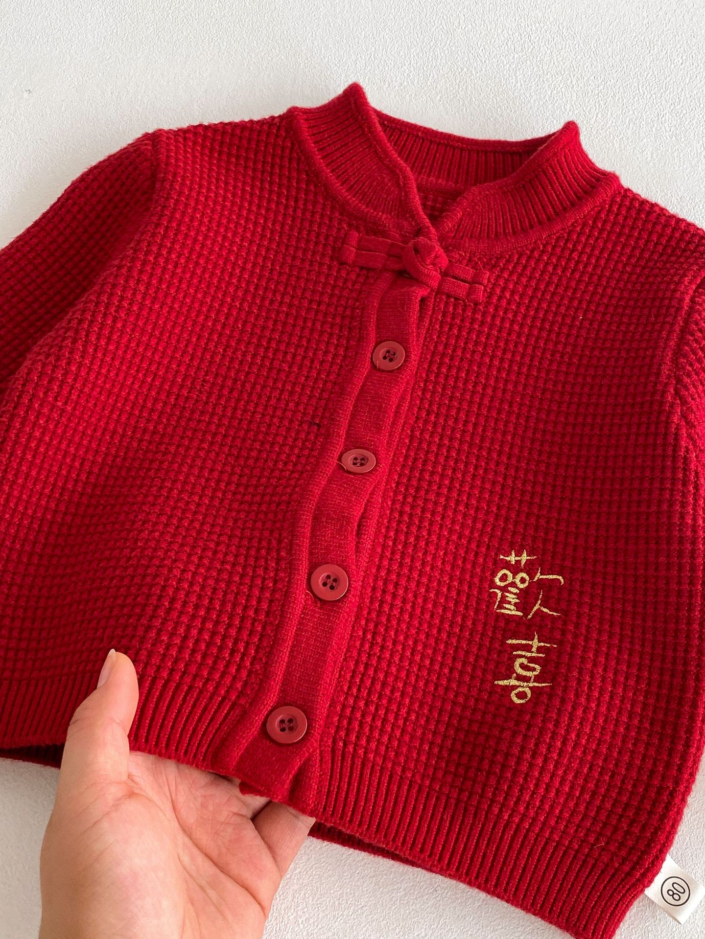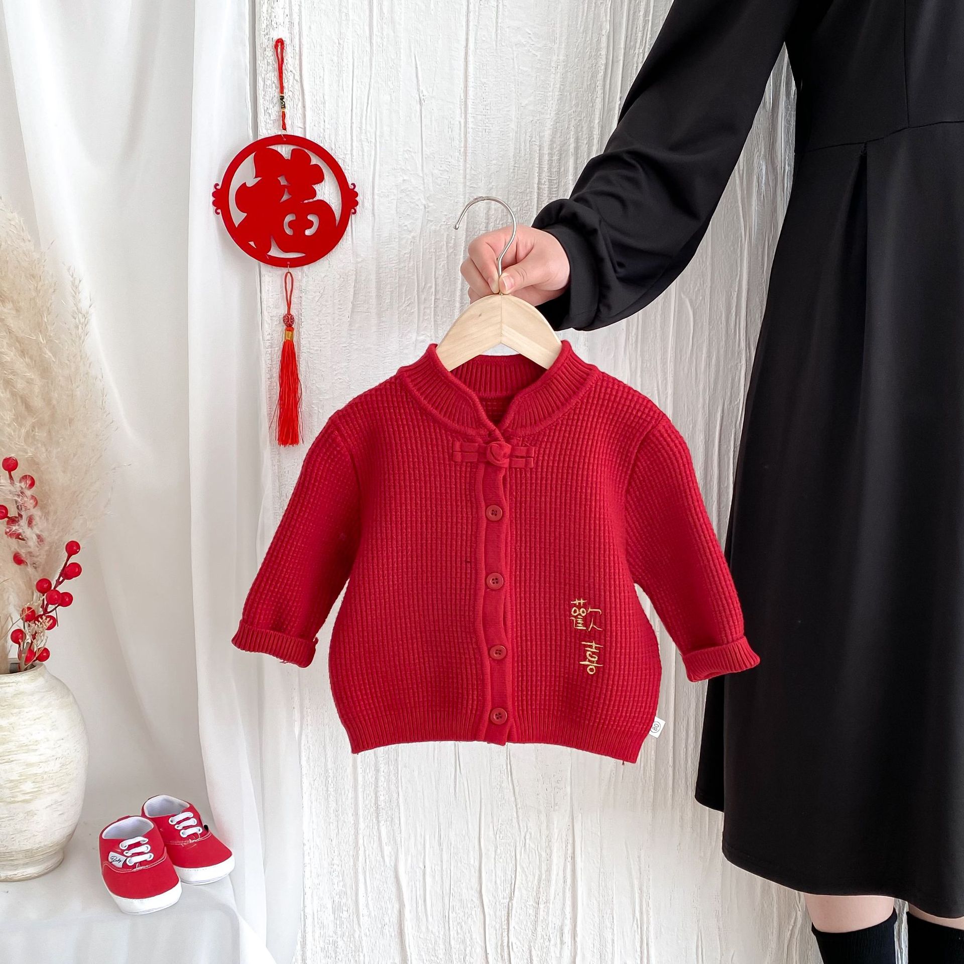 아기 신년 의류 빨간 두꺼운 니트 스웨터 카디건 재킷 유니섹스 아기 신년 의류 올매치 탑 해피 의류스토어 가기