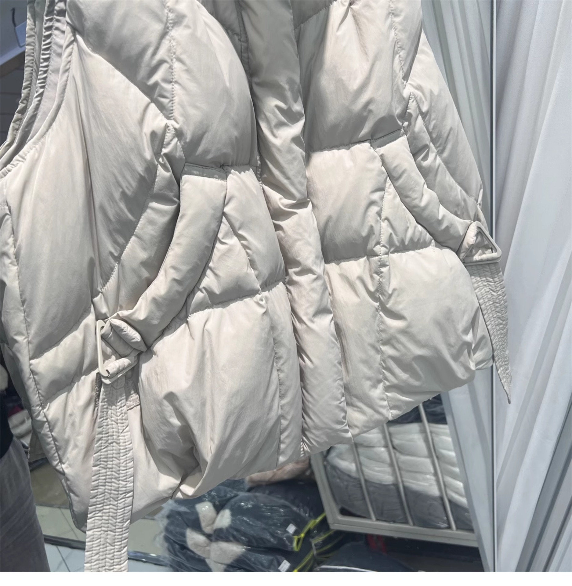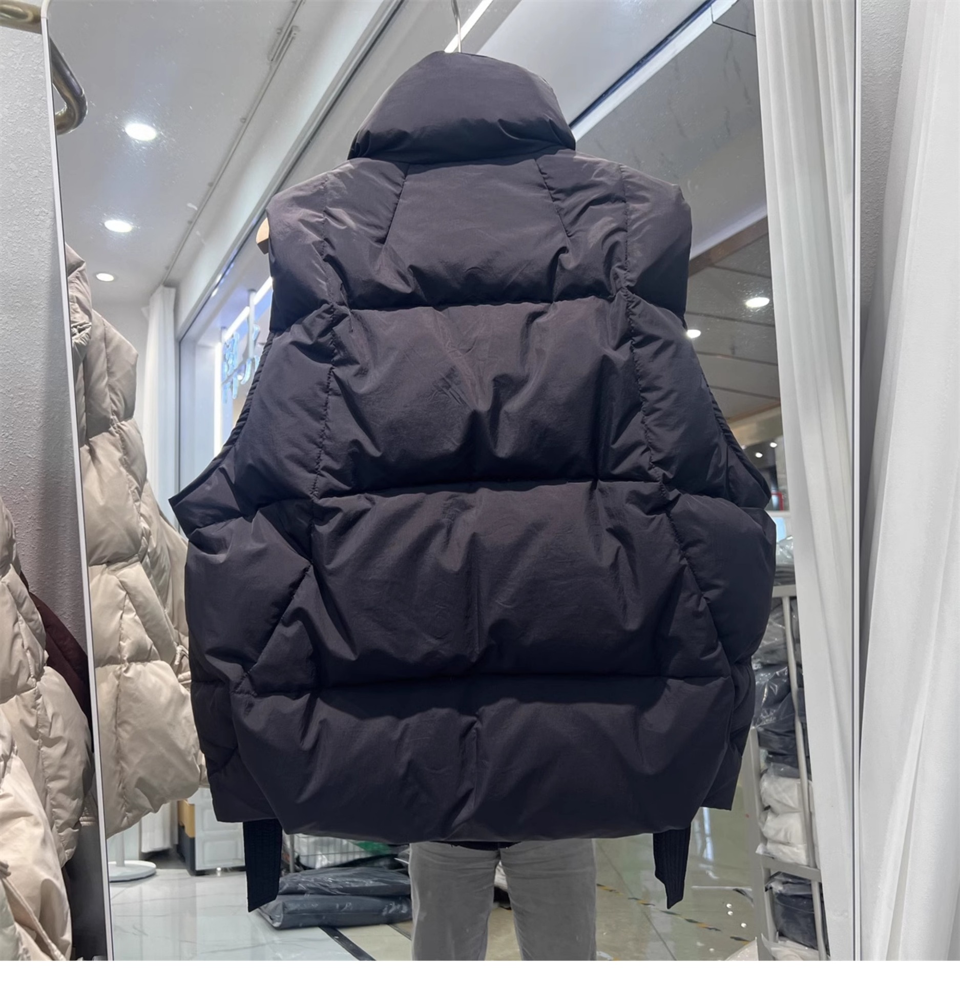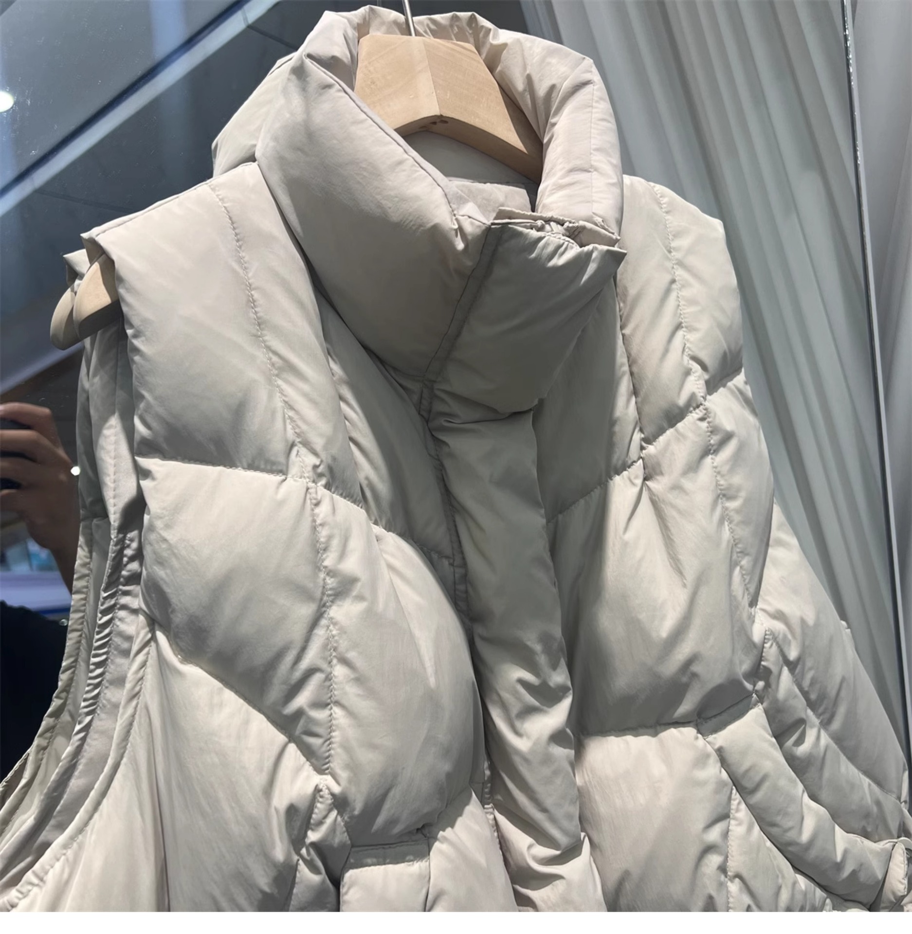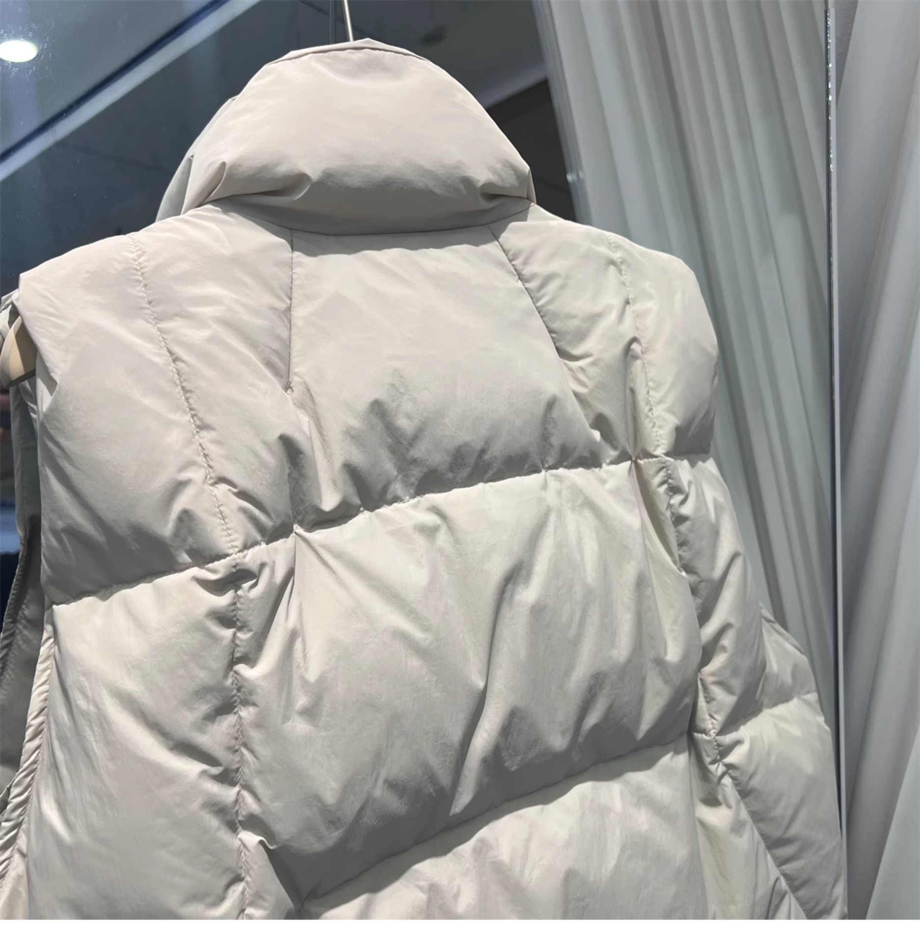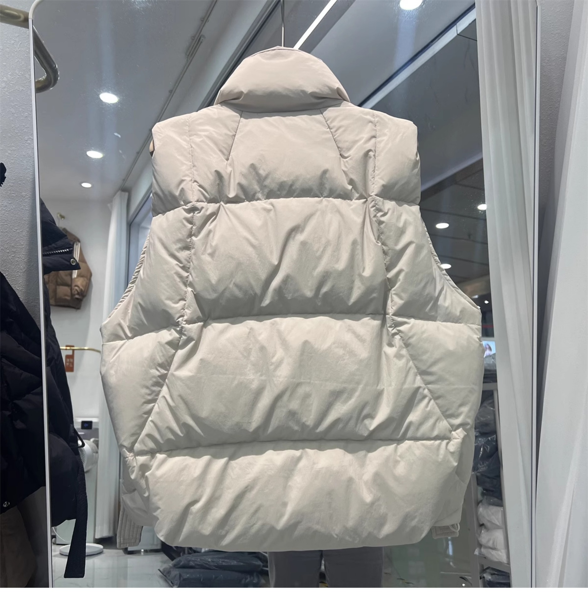 2024 겨울 새로운 짧은 재킷 조끼 여성용 수직 칼라 두꺼운 느슨한 삼각형 버클 화이트 덕 다운 조끼 재킷스토어 가기