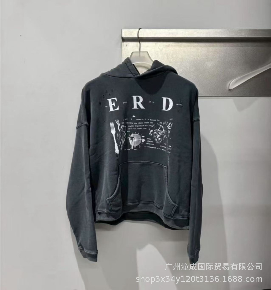ERD 부유한 두세대 신부 인물 프린트 레터링 긴팔 남녀공용 루즈핏 후드티 스웨트셔츠 하이 스트리트 캐주얼스토어 가기