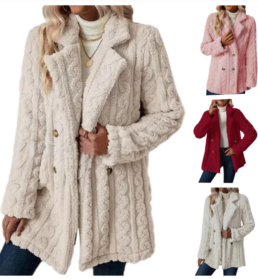 아마존 유럽과 미국의 폭발 여성 봉제 코트 편안한 캐주얼 따뜻한 유지 롱 코트, 더블 브레스트 칼라