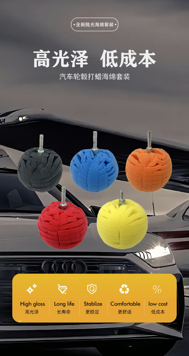 둥근 구형 원추형 스폰지 볼 연마 디스크 자동차 미용 디테일 처리 왁싱 디스크 중간 그물 휠 연마 스폰지