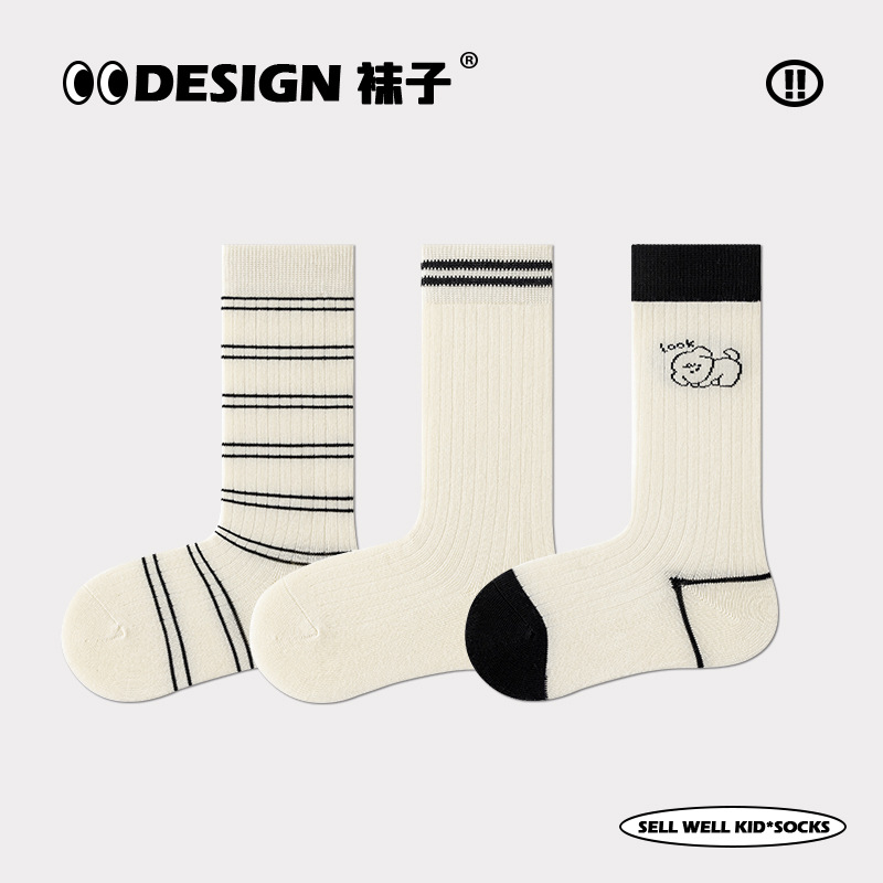 가을과 겨울 새로운 한국 스타일 트렌디 한 어린이 양말 소녀 귀여운 만화 양말 소년 모든 경기 간단한 겨울 중간 튜브 양말