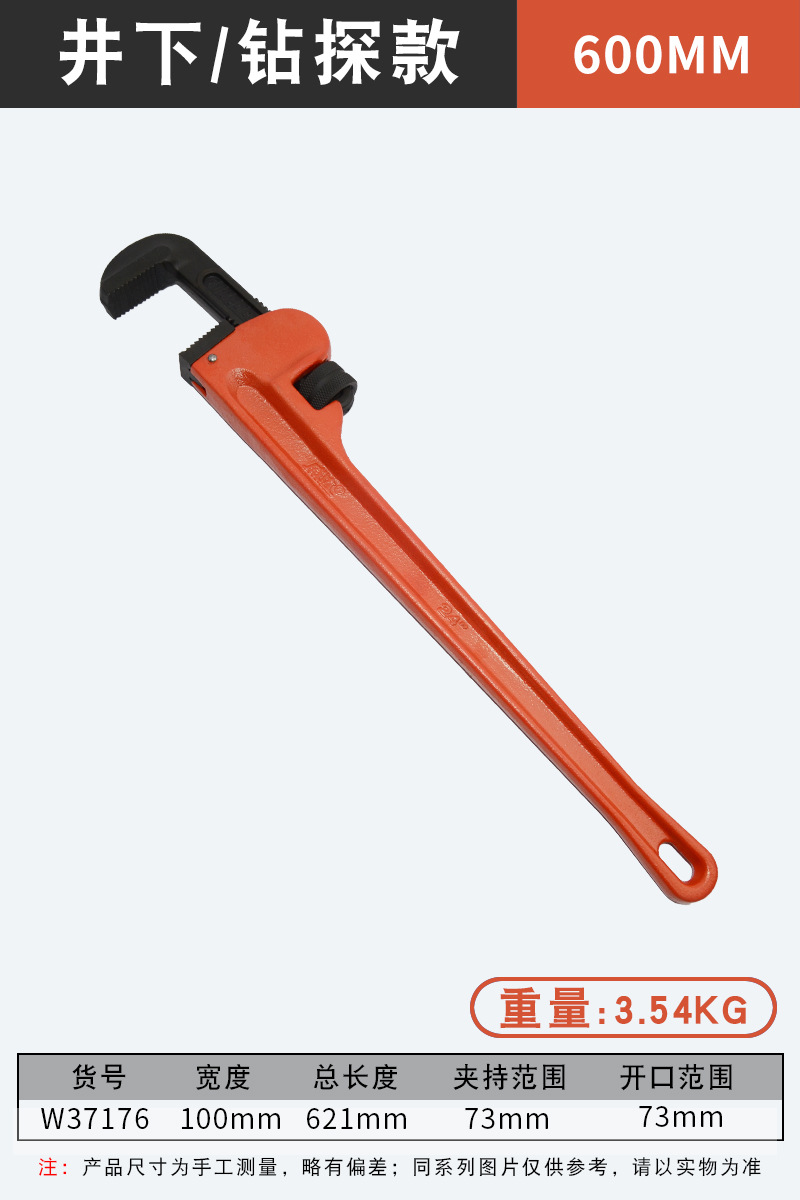 • 언더그레인/드릴 프로브 및 파워 파이프 렌치 26.0inch D 클램핑 파이프 직경 93mm [중공업에 적용 가능] W37373