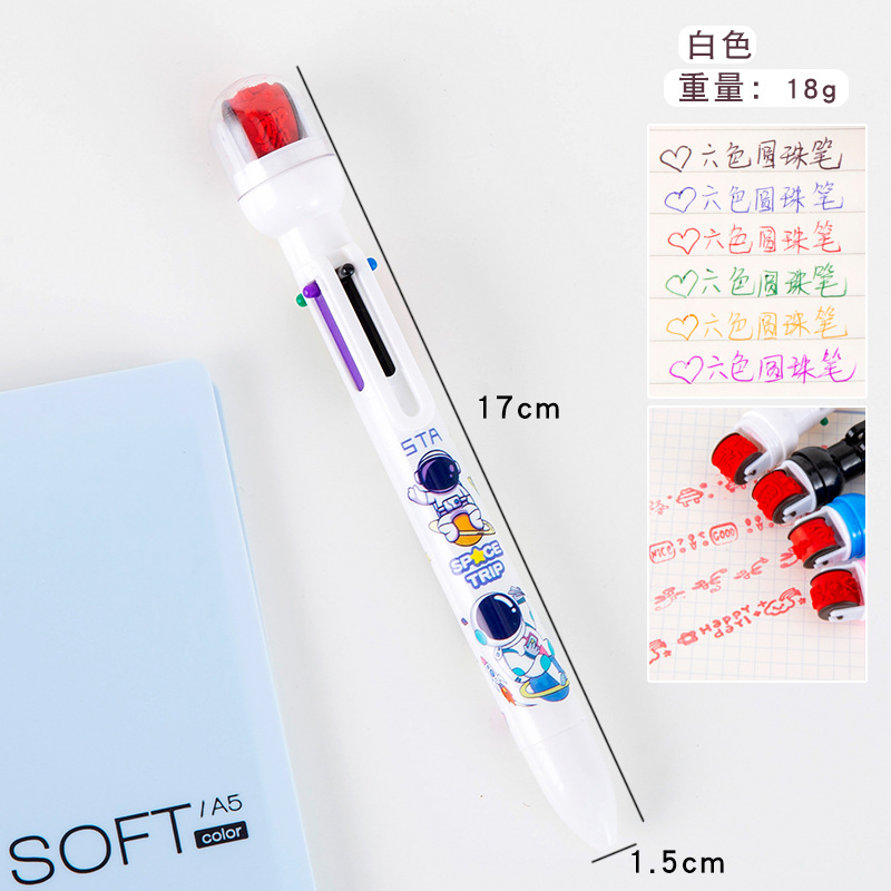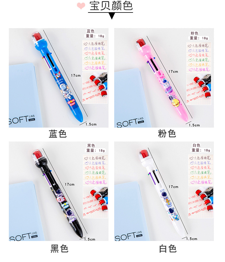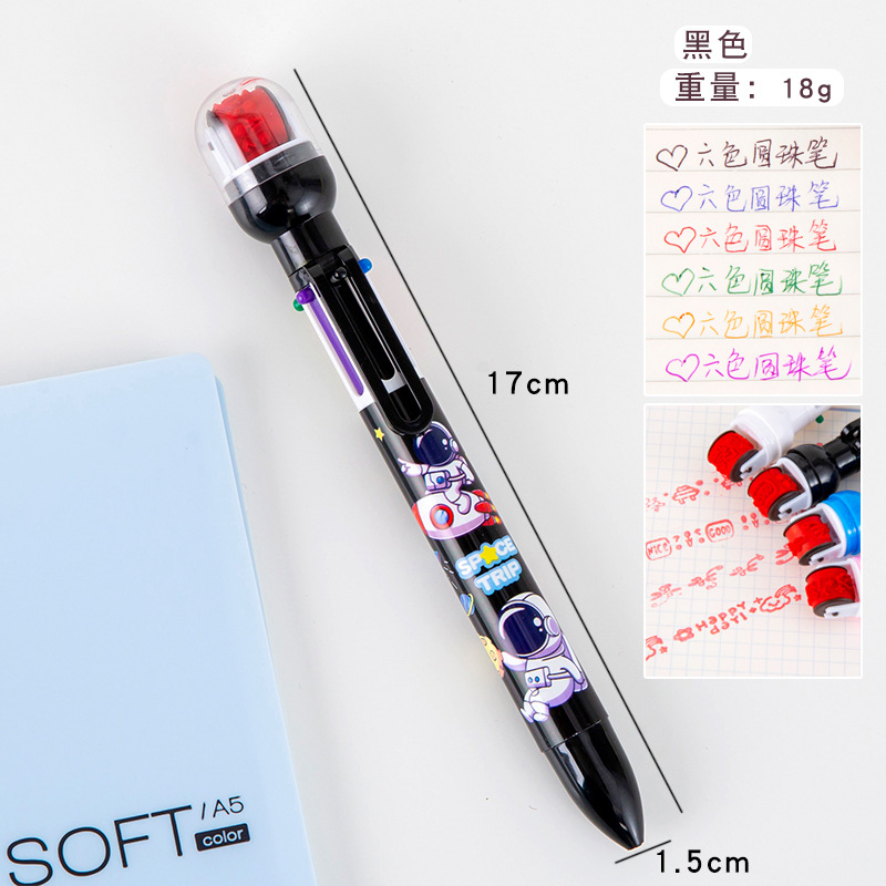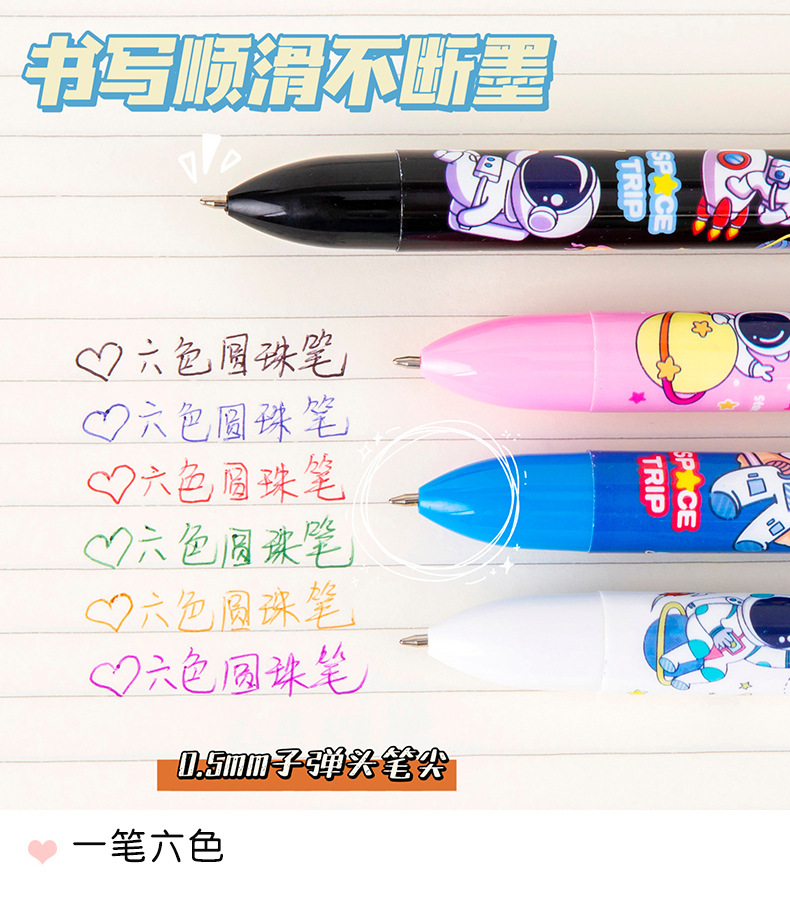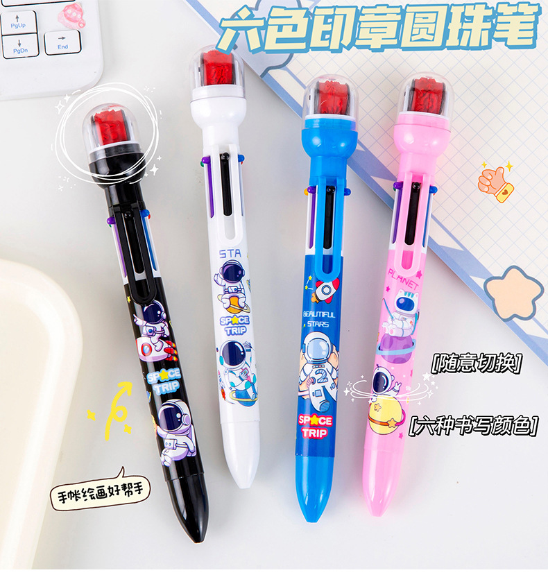 宇航员6色圆珠笔 手账笔 标记笔 记号笔 学生学习文具小礼品
