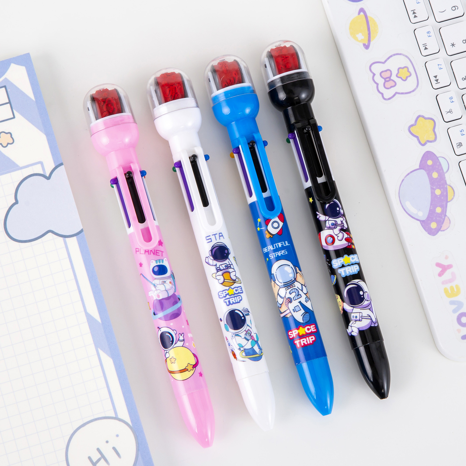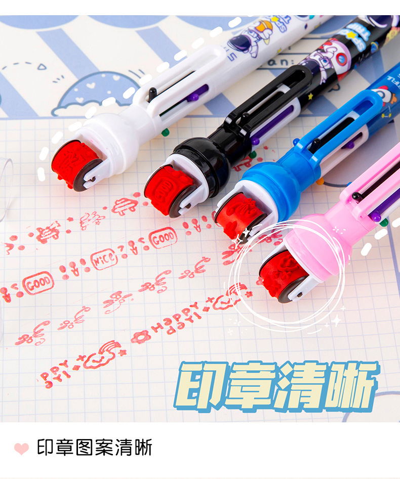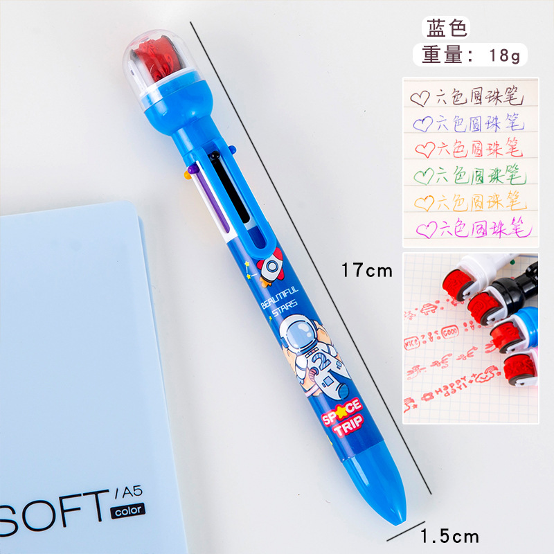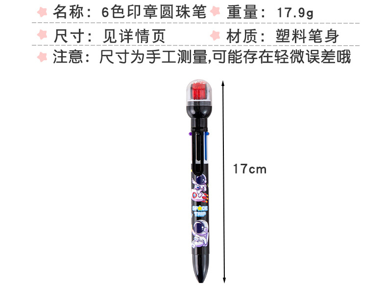 宇航员6色圆珠笔 手账笔 标记笔 记号笔 学生学习文具小礼品