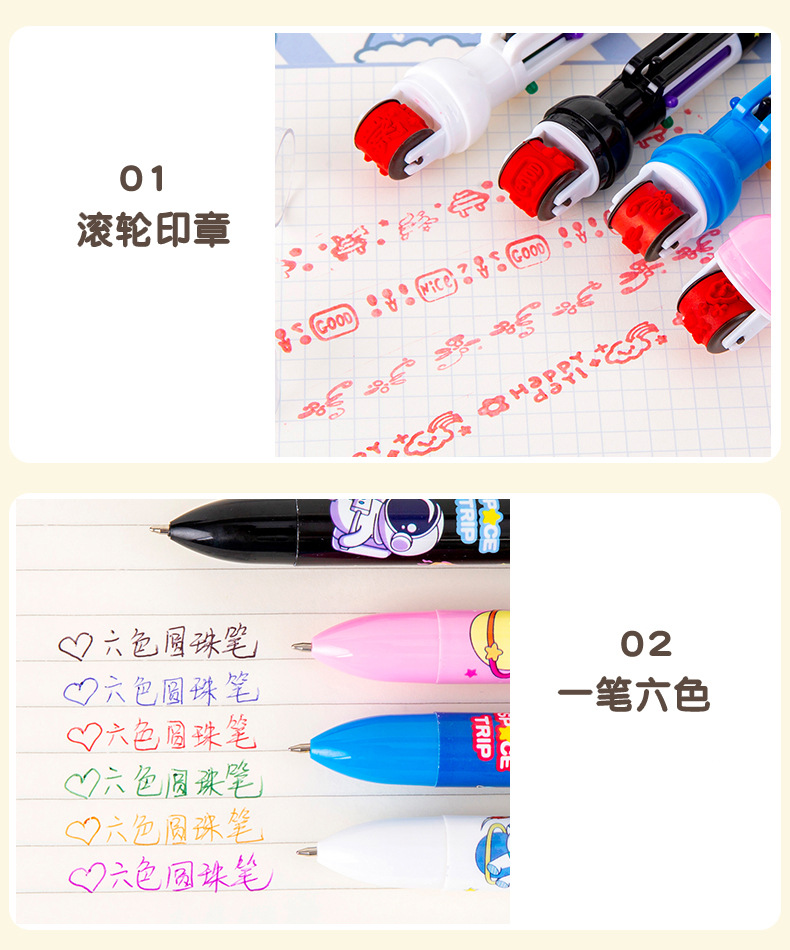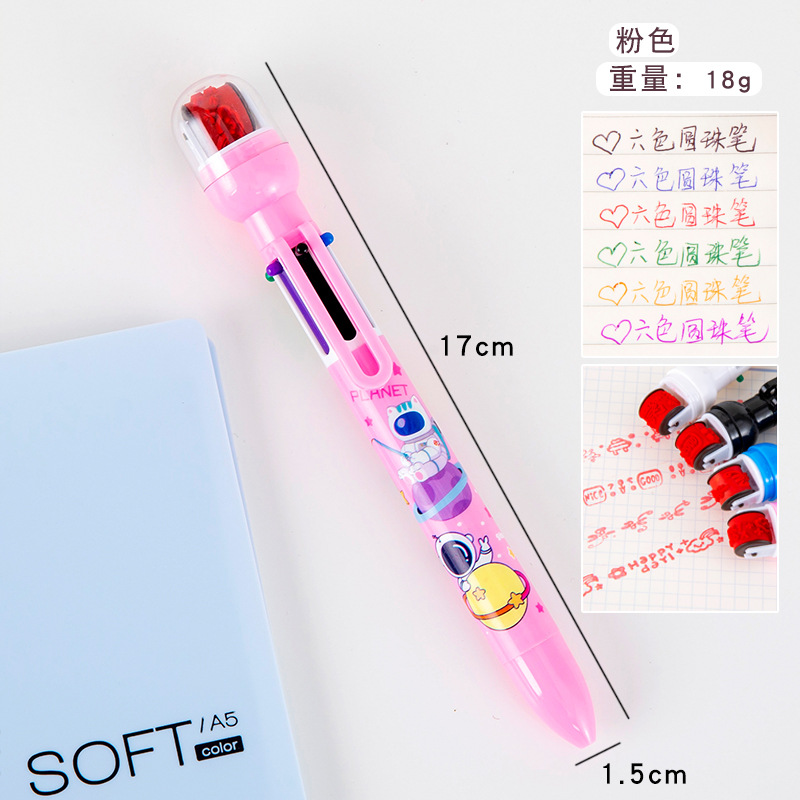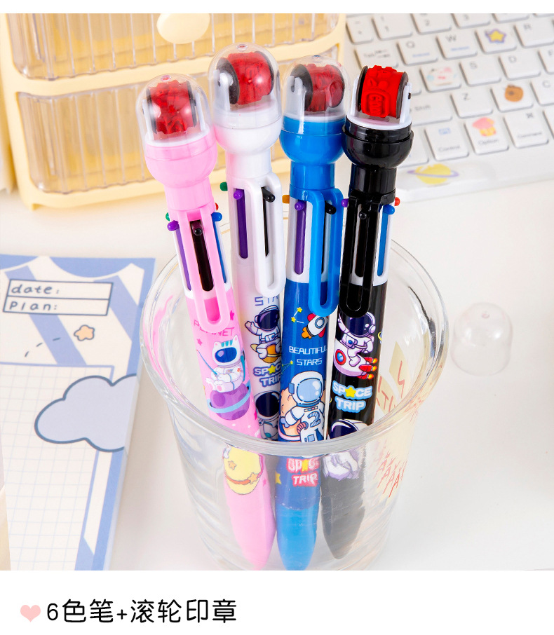 Ins 창조적 인 귀여운 만화 우주 비행사 6 색 볼펜 다기능 컬러 롤러 씰 펜 학생 마킹 펜