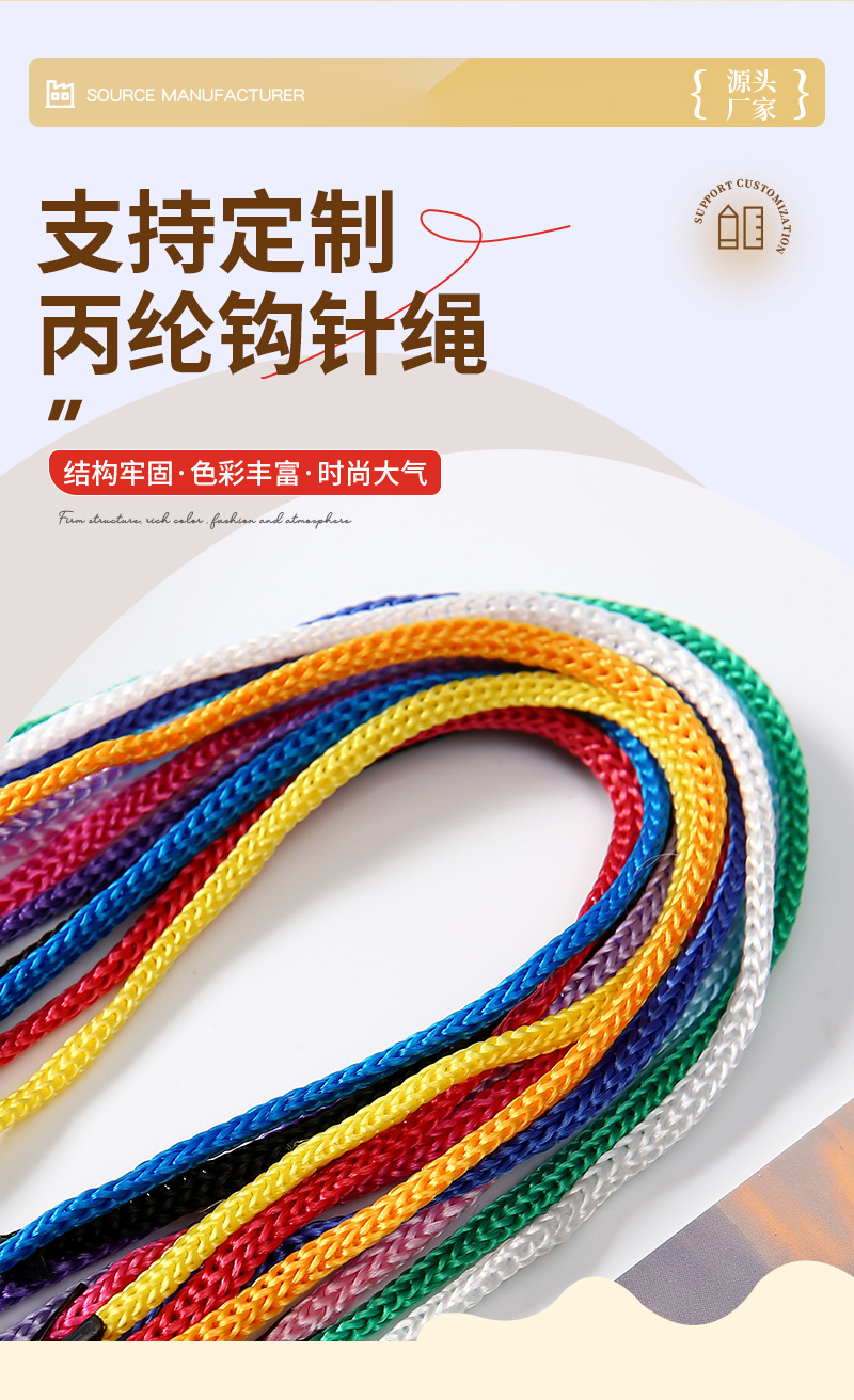 공장 직접 폴리 프로필렌 로프 크로 셰 뜨개질 로프 폴리 프로필렌 휴대용 로프 선물 상자 휴대용 로프 로프 로프 로프 도매