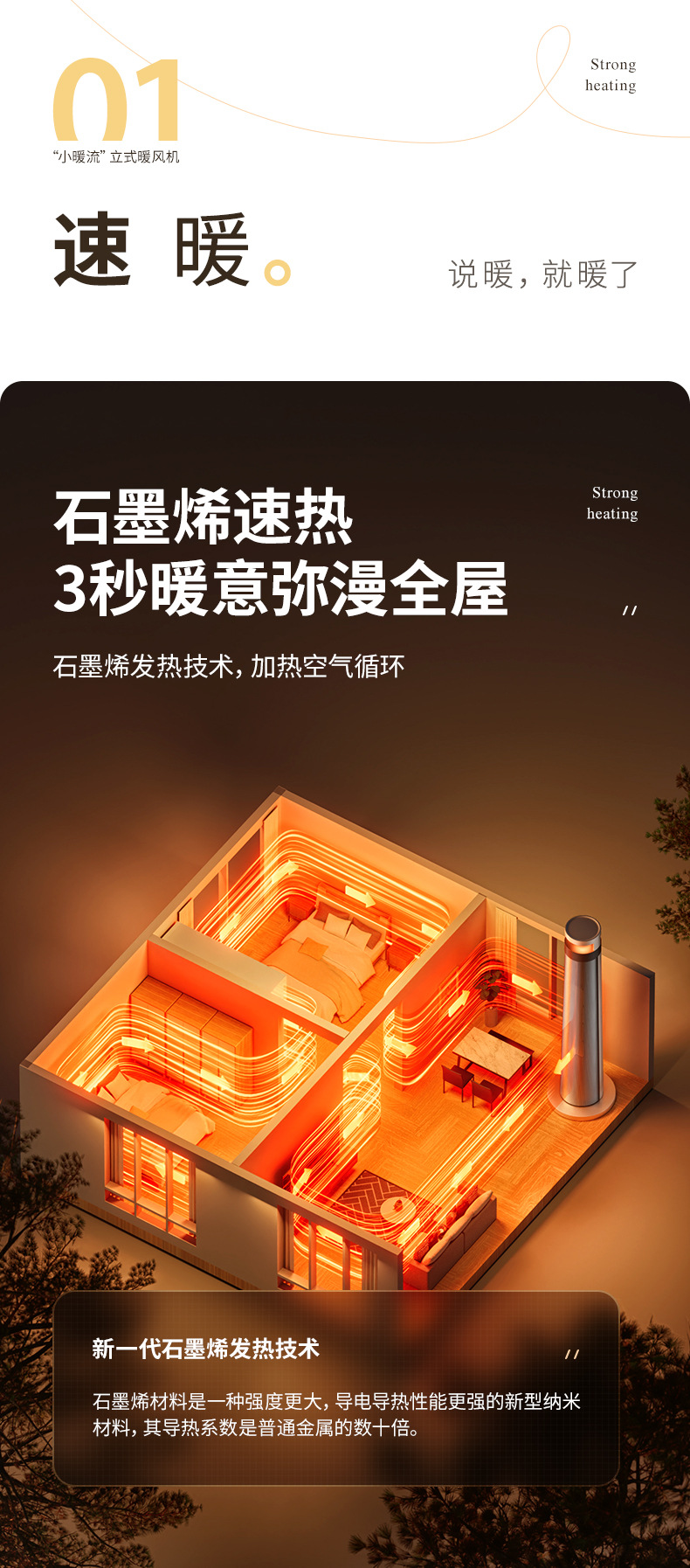 그래핀 히터 가정용 음성 작은 히터 가정용 목욕 풀 하우스 빠른 열 전력 절약 수직 야간 조명 전기 히터스토어 가기