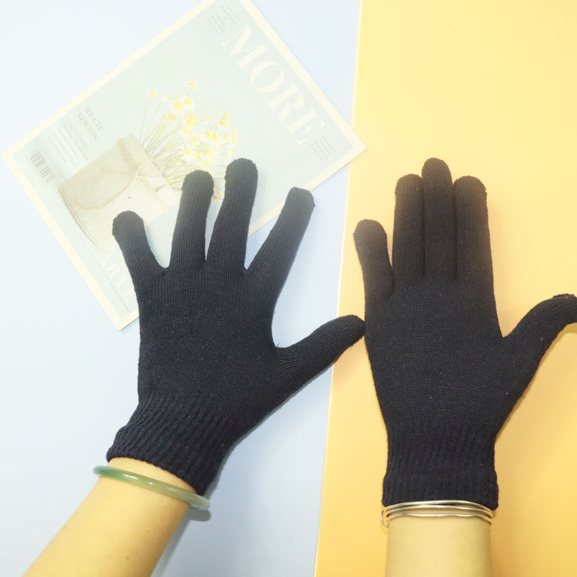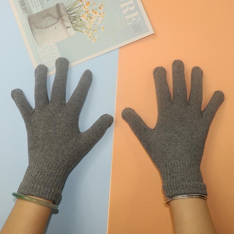 얇은 가을과 겨울 따뜻한 검은 유니섹스 5 손가락 한국 니트 매직 장갑 단색 느슨하고 편안한스토어 가기