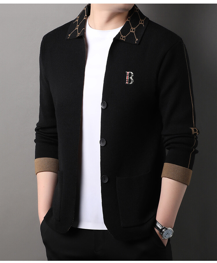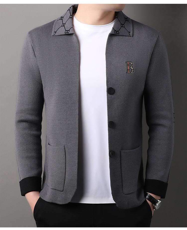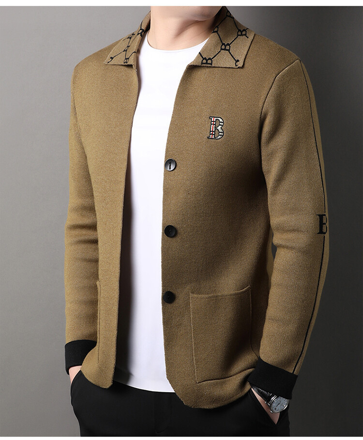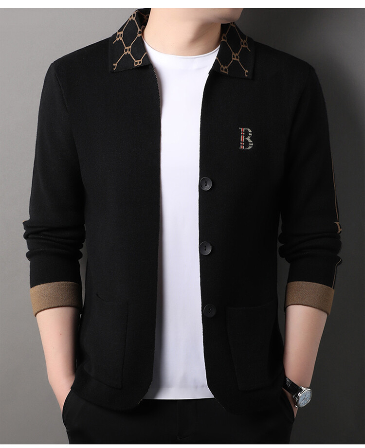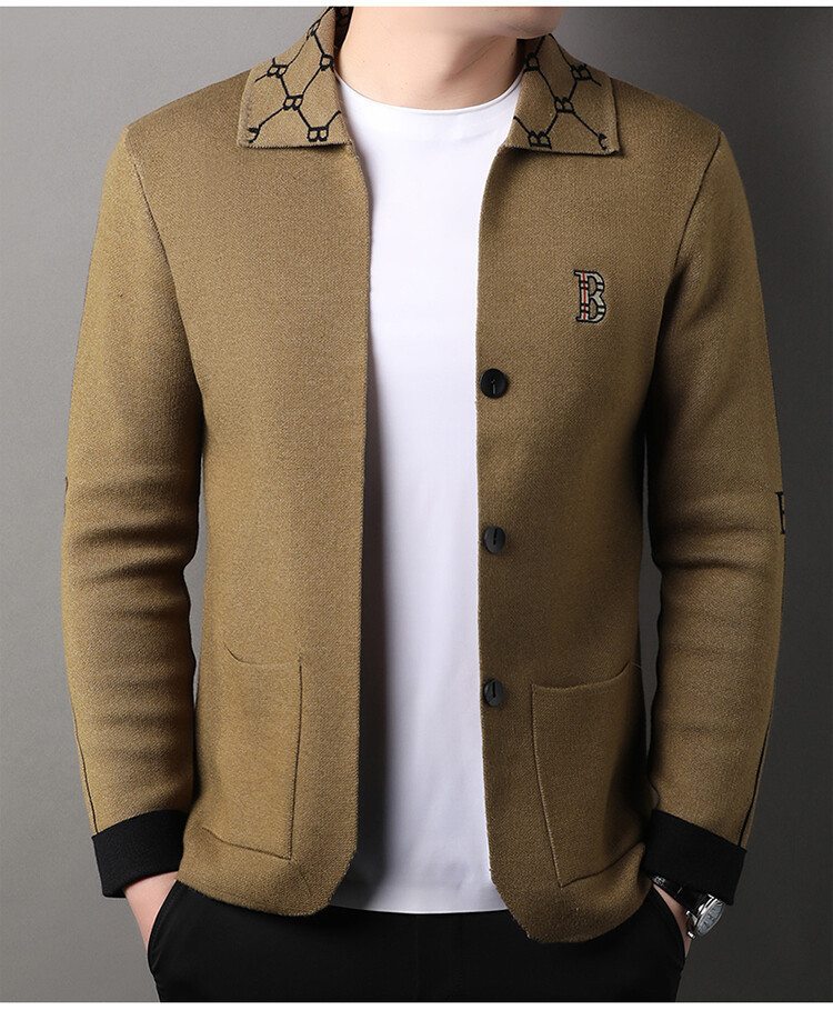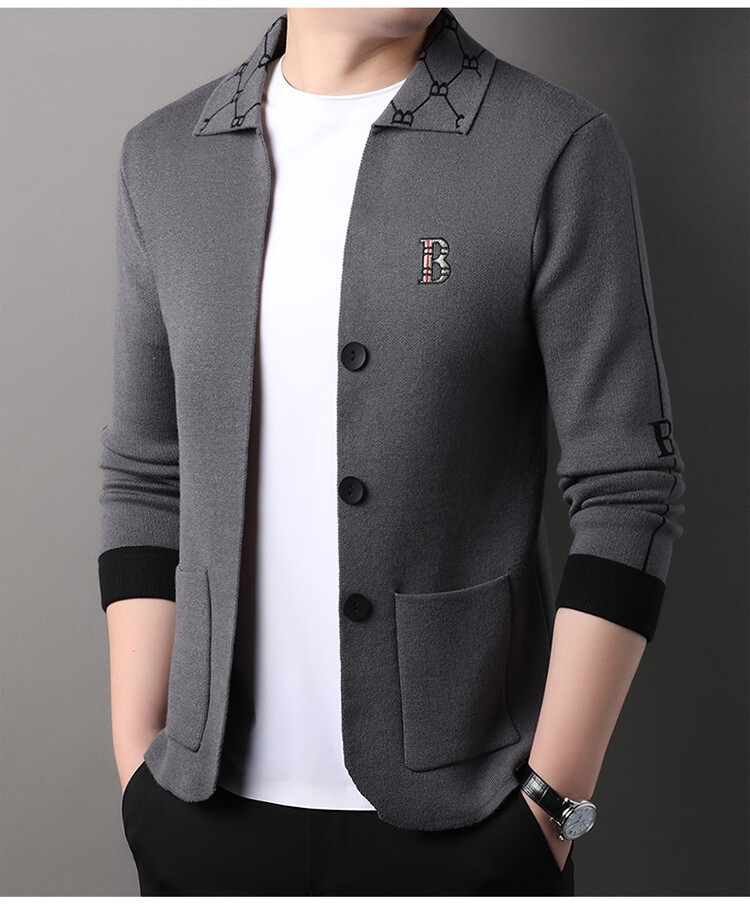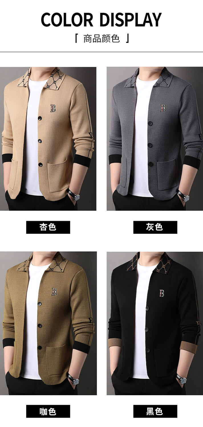 봄과 가을 남성 바둑판 니트 스웨터 카디건 코트 카운터 옷깃 자수 패션 재킷 스웨터