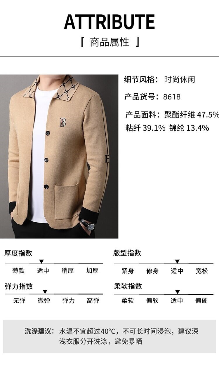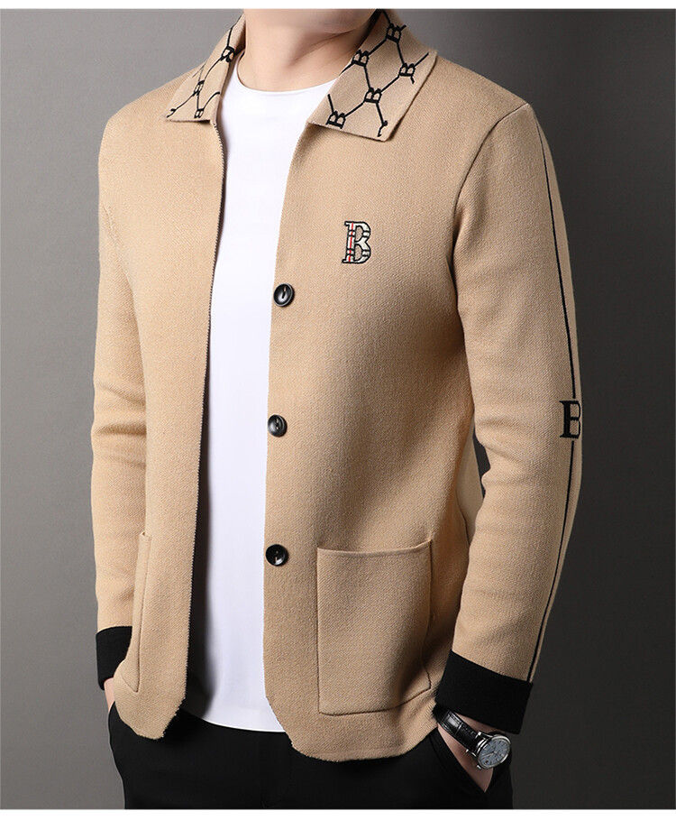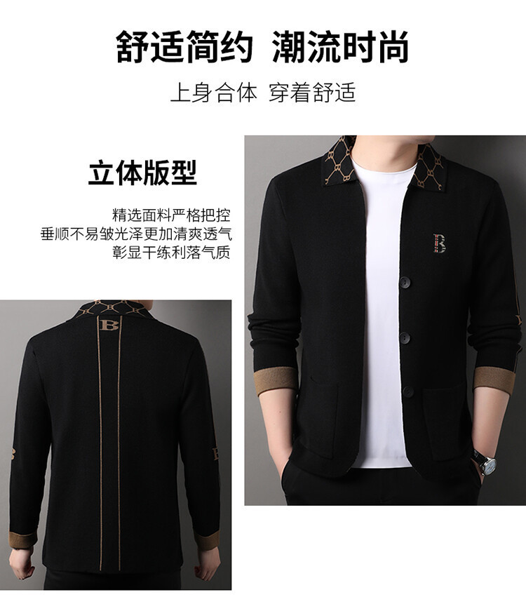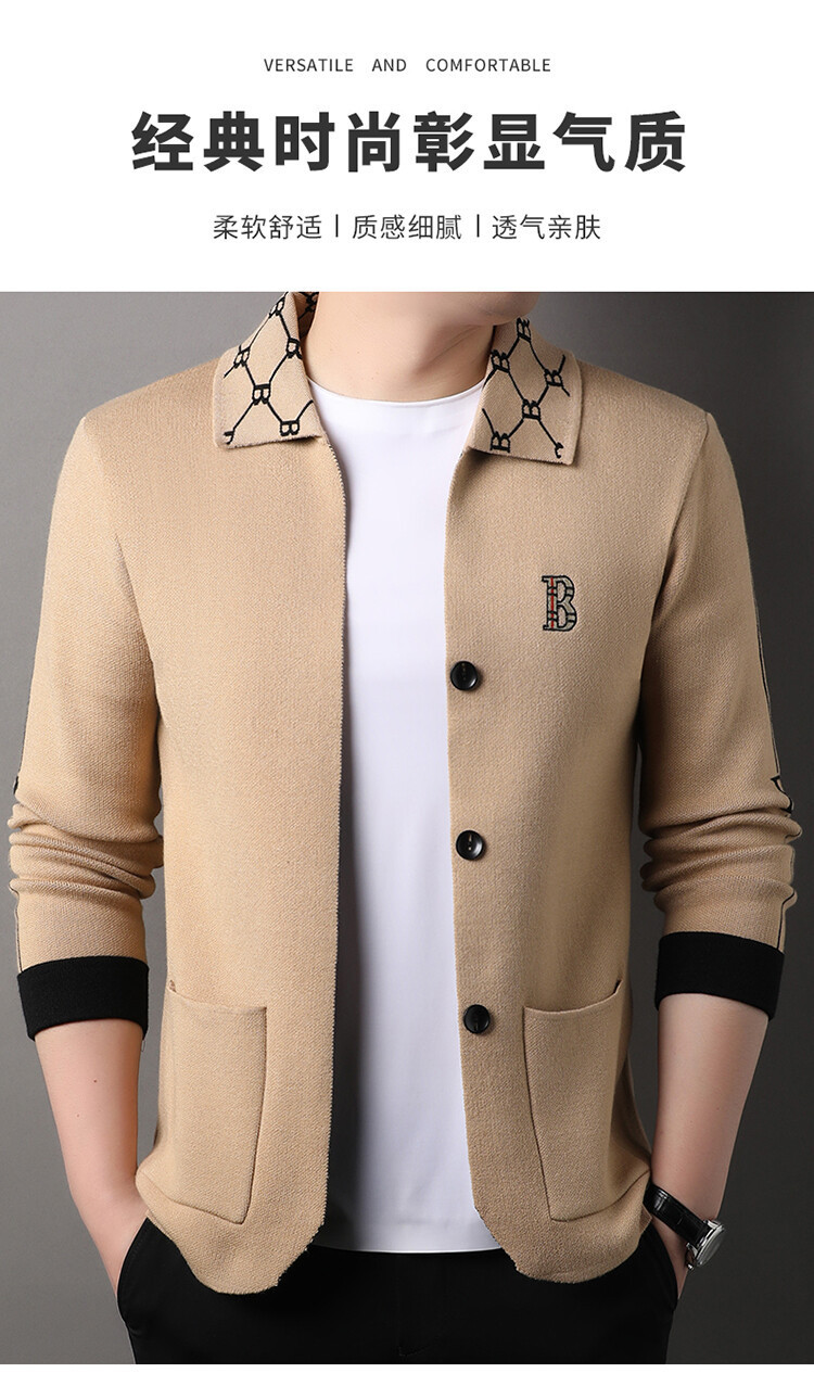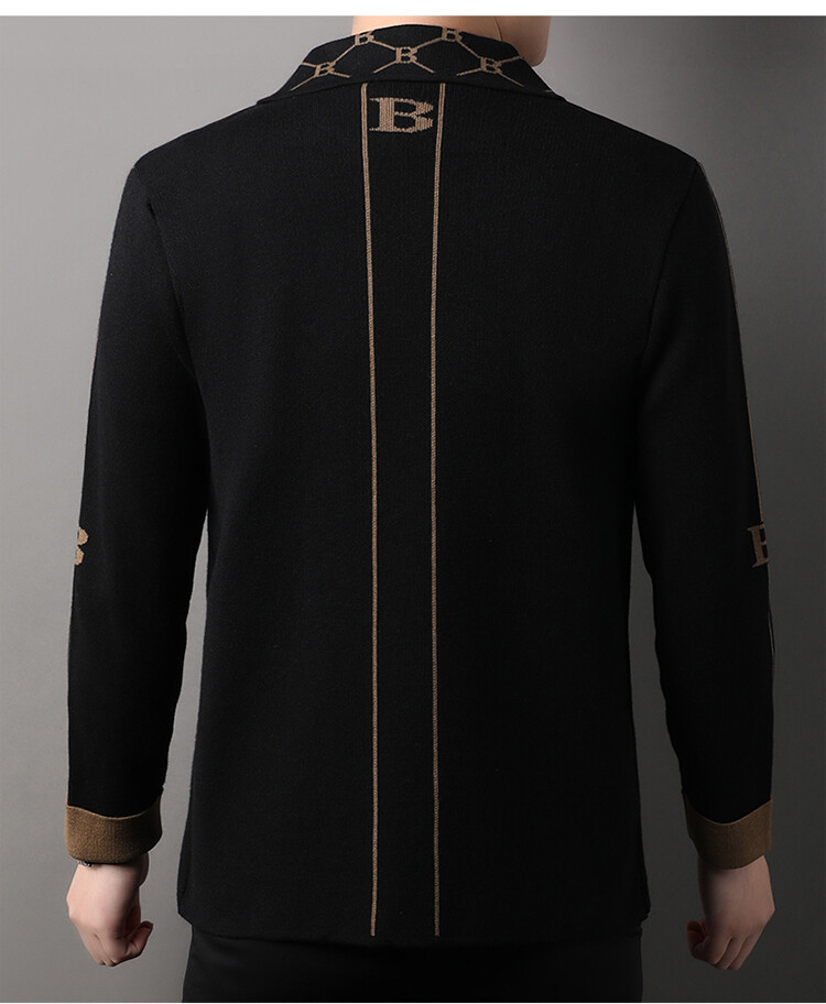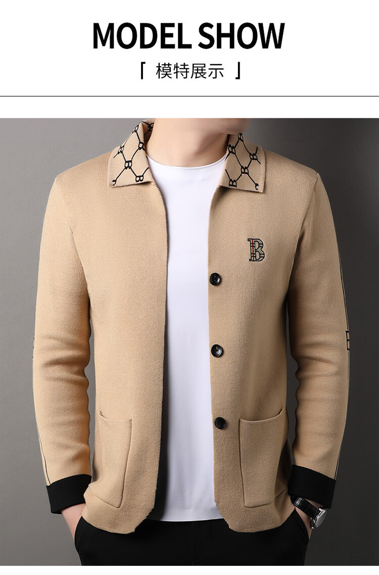 봄과 가을 남성 바둑판 니트 스웨터 카디건 코트 카운터 옷깃 자수 패션 재킷 스웨터